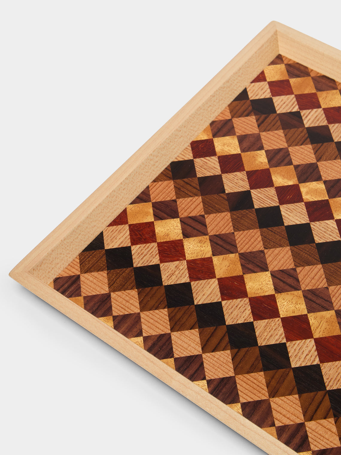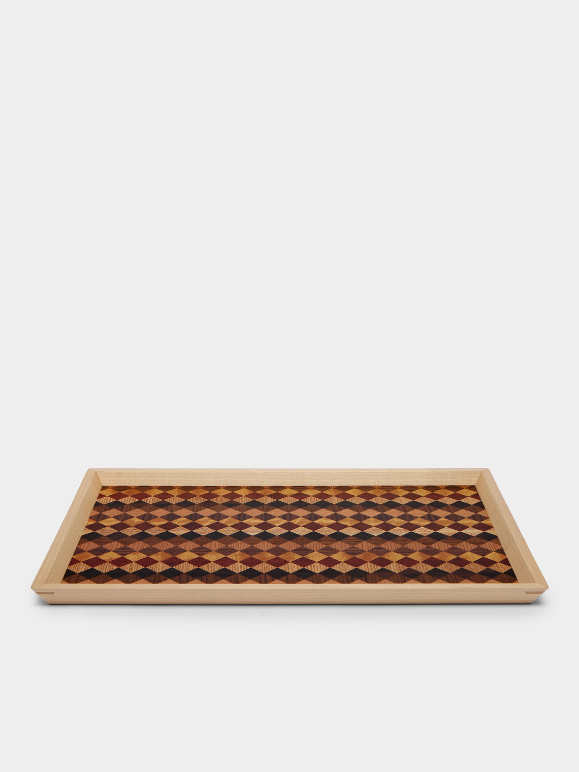 Since 1953, Tokushima-based Mori Kougei has been specialising in tsuki-ita, a highly complex technique in which paper-thin sheets of wood are sliced with sharp blades before being bonded together to form intricate surface patterns. This meticulous process has been refined and passed through the generations for more than 70 years. The result is a selection of functional trays highlighting the grain, colour and character of different wood species. Expect meticulously indigo-dyed pieces – a treasured Tokushima art – and subtle, contemporary scenes inspired by art, geometry and nature.