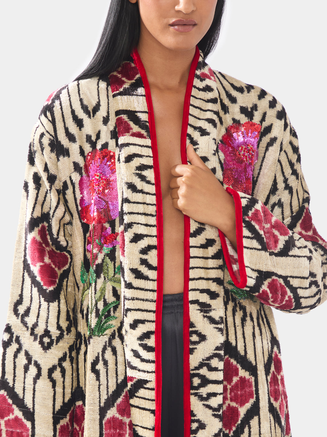 Nazzy Beglari Hand-Loomed Ikat Velvet Reversible Robe | One Size