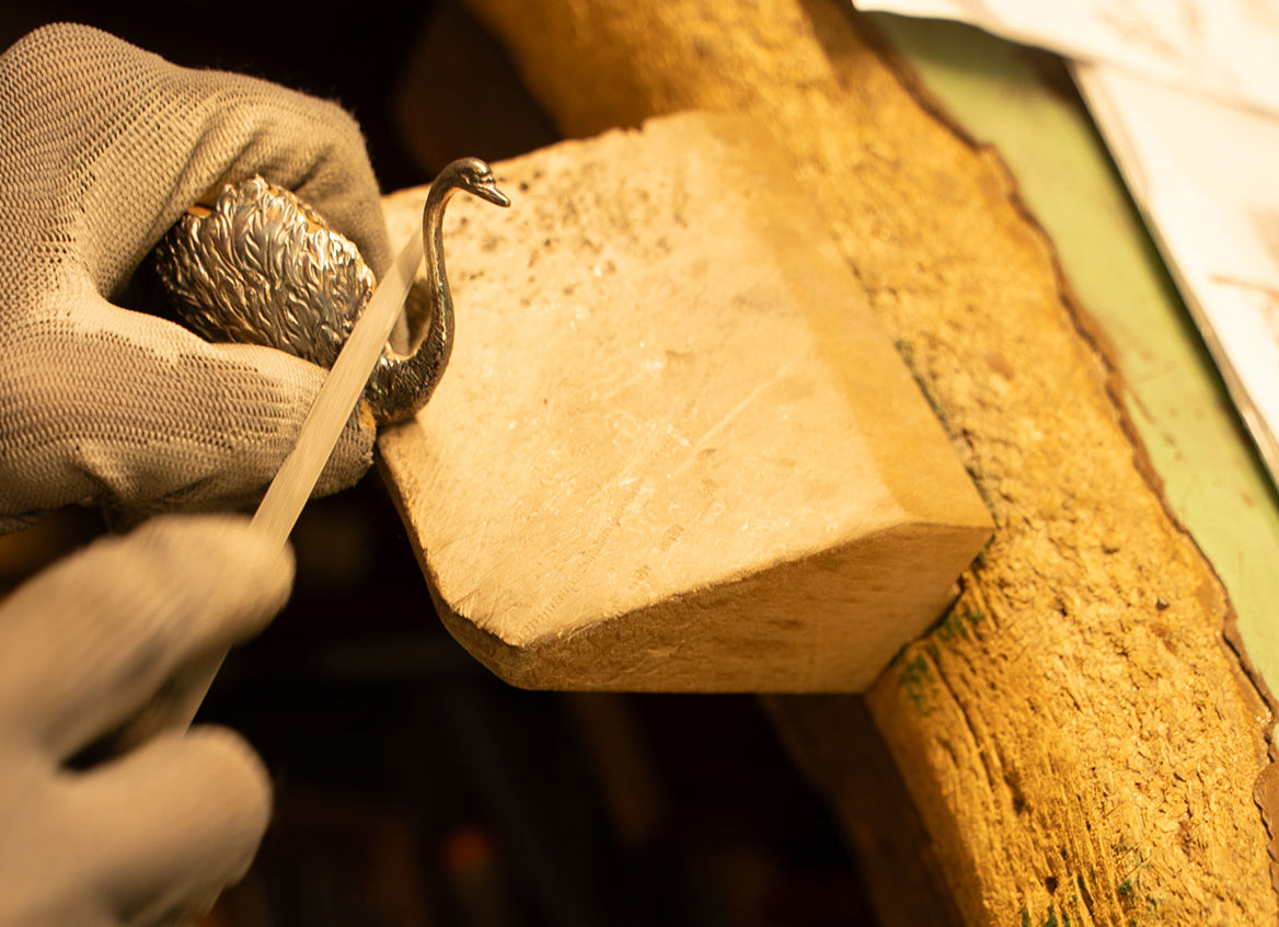Ermindo Pampaloni began as a goldsmith and silversmith in a small workshop tucked near Florence’s Ponte Vecchio. From those origins in 1902, the atelier steadily evolved, eventually passing to his grandson, Gianfranco, in 1981. Under his direction, Pampaloni helped shift silver from status symbol to object of delight. One of his earliest collections of silver-plated tableware drew inspiration from Giovanni Maggi’s 1604 Roman drawings, signaling a new, playful chapter in the craft.