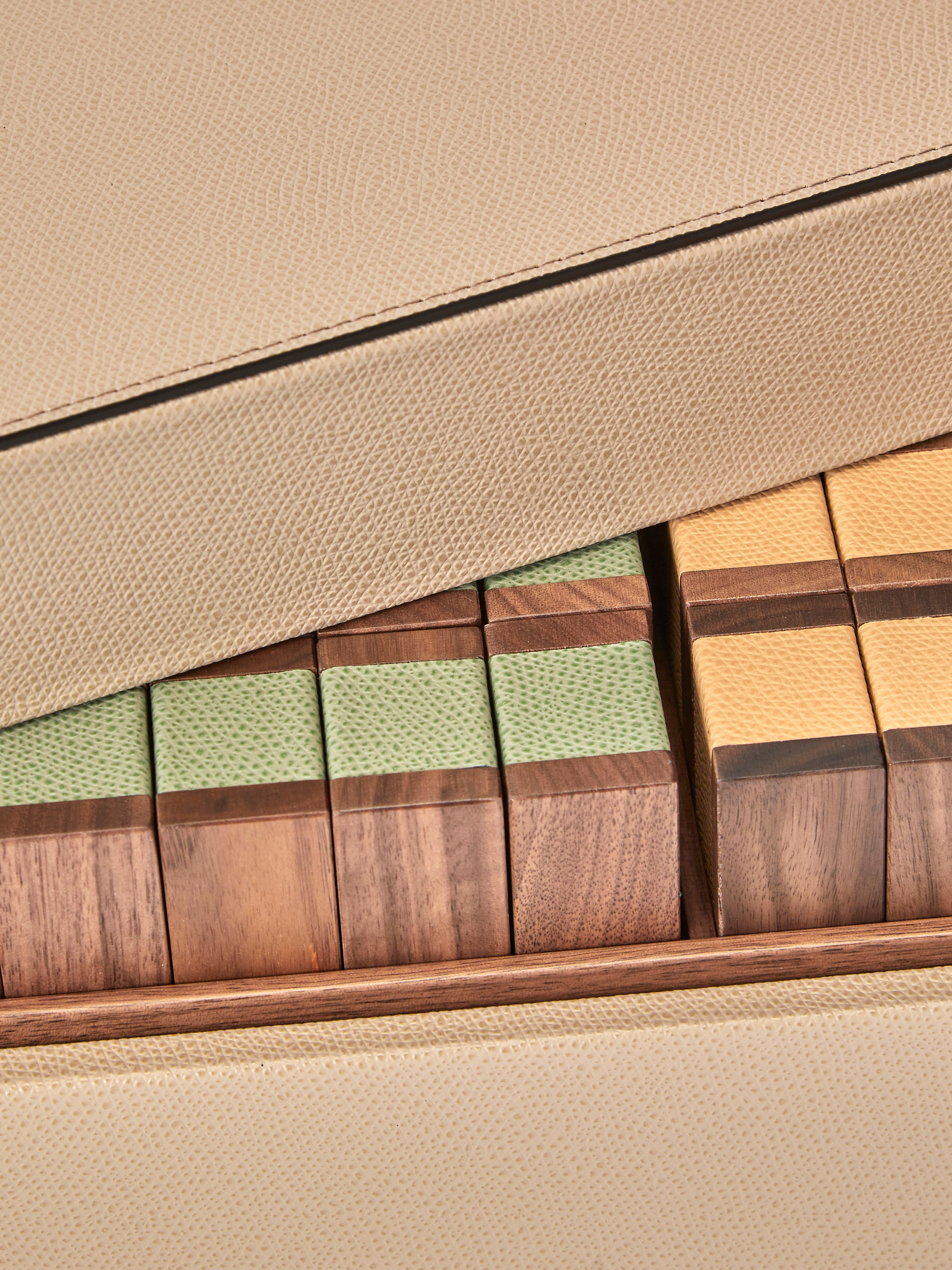 Pinetti’s craftsmanship begins with touch: the texture of full-grain leather, the weight of brass, the balance of hand-turned walnut. Every detail is considered, every material chosen not just for beauty, but for how it ages, wears and lives. From the workshop in Bagnatica, northern Italy, artisans transform raw materials into precise, architectural forms. Edges are cut and burnished by hand; compartments are lined with care; finishes are applied slowly, layer by layer. Each piece is the result of quiet mastery, where luxury lies in the making.
