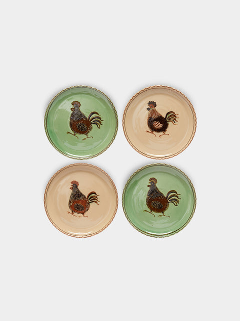 Poterie d’Évires Chickens Hand-Painted Ceramic Plates – 5.5in/14cm (Set of 4)
