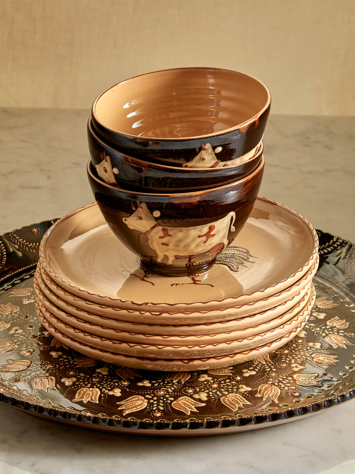 Poterie d’Évires Cows Hand-Painted Ceramic Bowls (Set of 3)