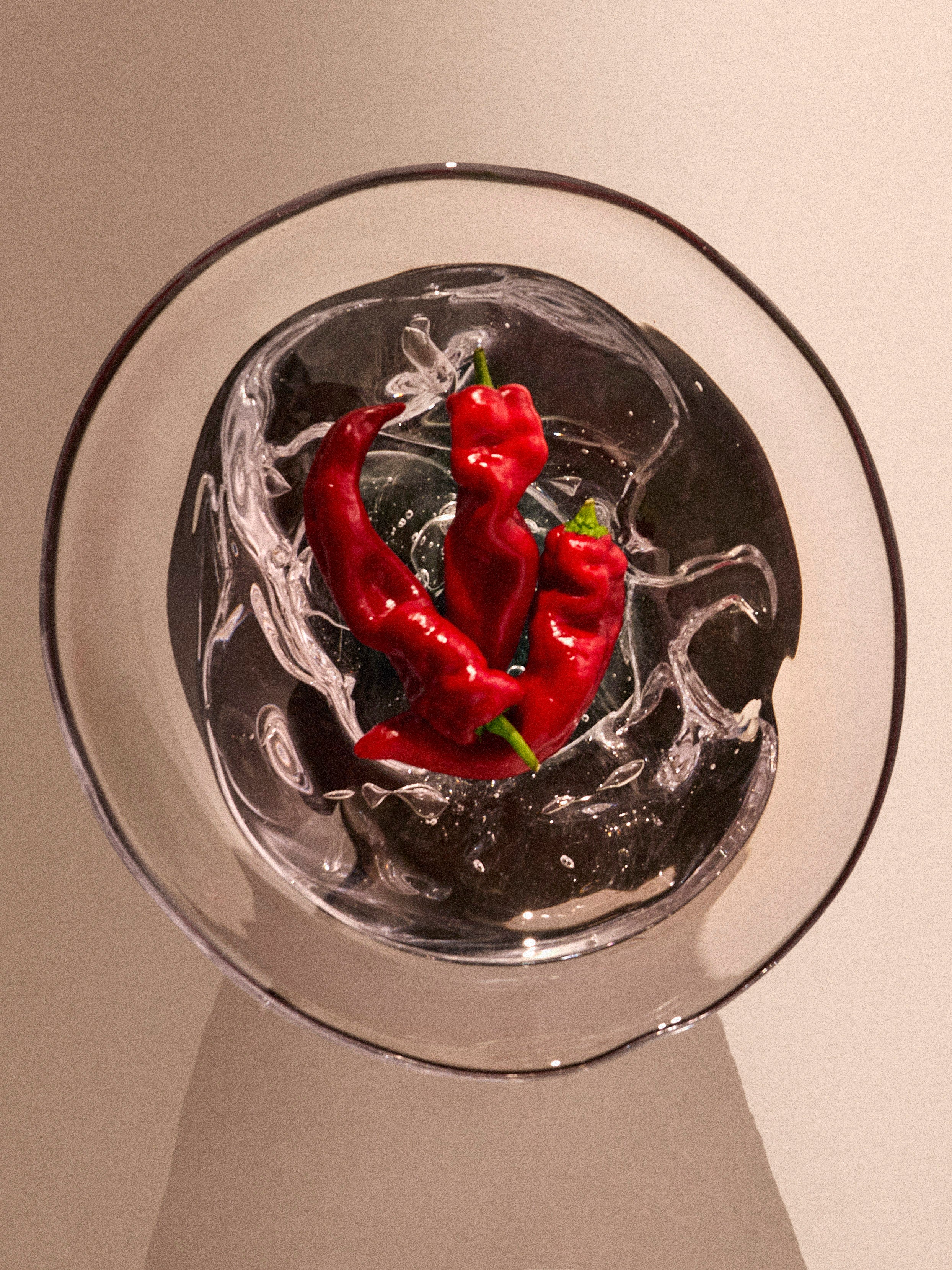 Siblings Aleksandra and Wojciech Zawistowski founded Szkło in 2022 to challenge the status quo of glassware. Guided by an organic approach, their conceptual sketches are shaped from bespoke moulds using natural materials such as stacked bricks, wood and stone – often, remains of these can be captured between the layers in the final results. Their work honours the journey from glass to sculpture through spontaneous forms that balance raw curves and edges reminiscent of melting magma with solid, brittle finishes.