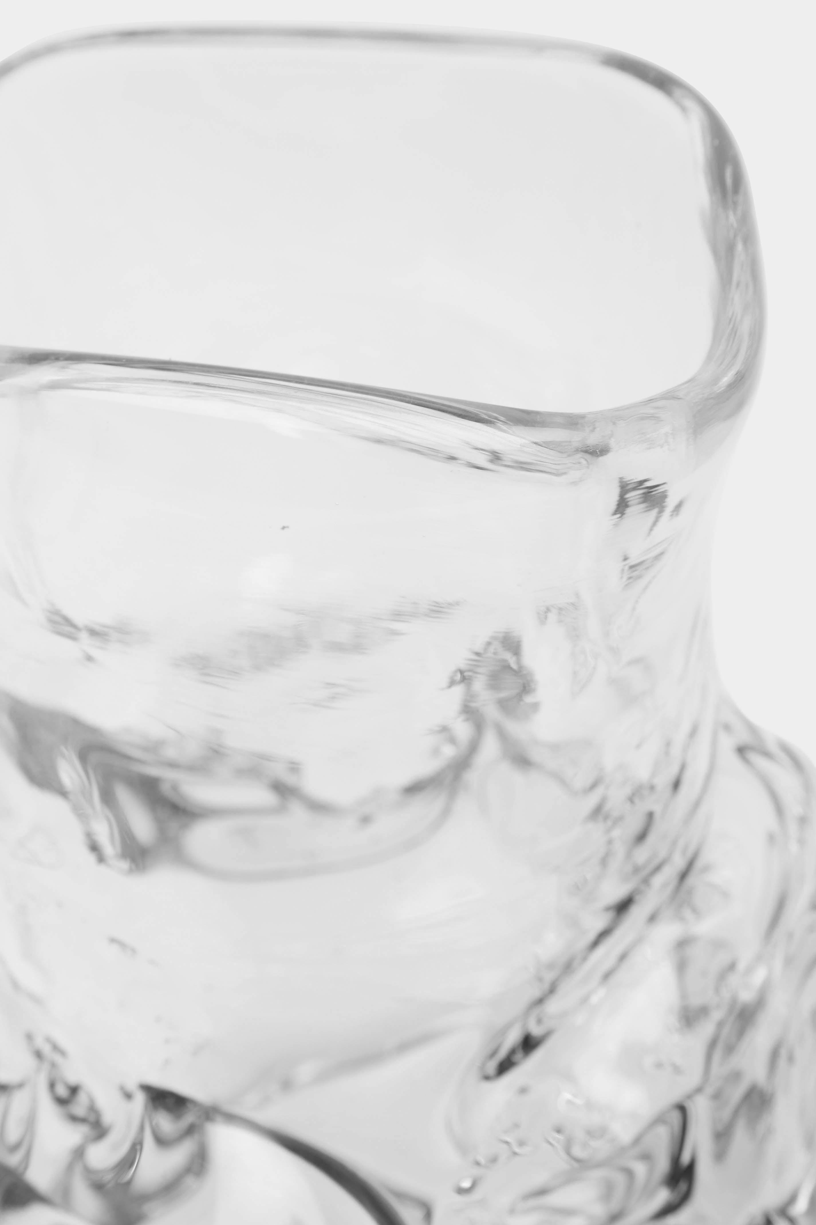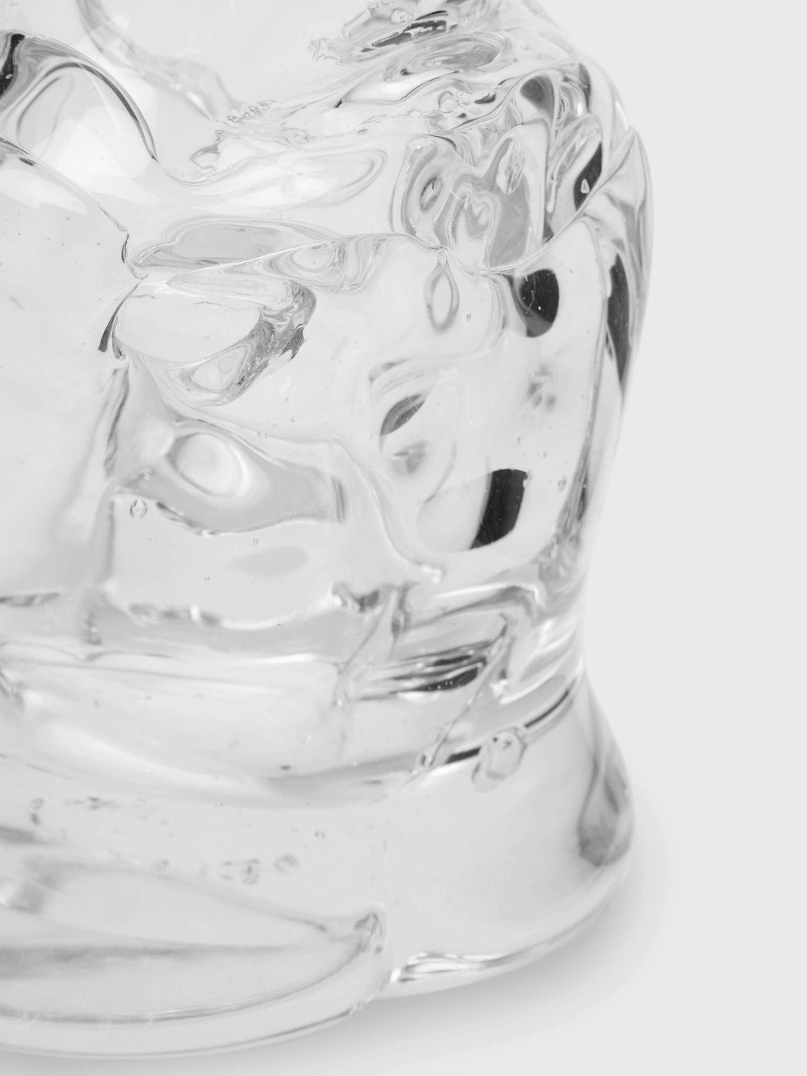 Siblings Aleksandra and Wojciech Zawistowski founded Szkło in 2022 to challenge the status quo of glassware. Guided by an organic approach, their conceptual sketches are shaped from bespoke moulds using natural materials such as stacked bricks, wood and stone – often, remains of these can be captured between the layers in the final results. Their work honours the journey from glass to sculpture through spontaneous forms that balance raw curves and edges reminiscent of melting magma with solid, brittle finishes.