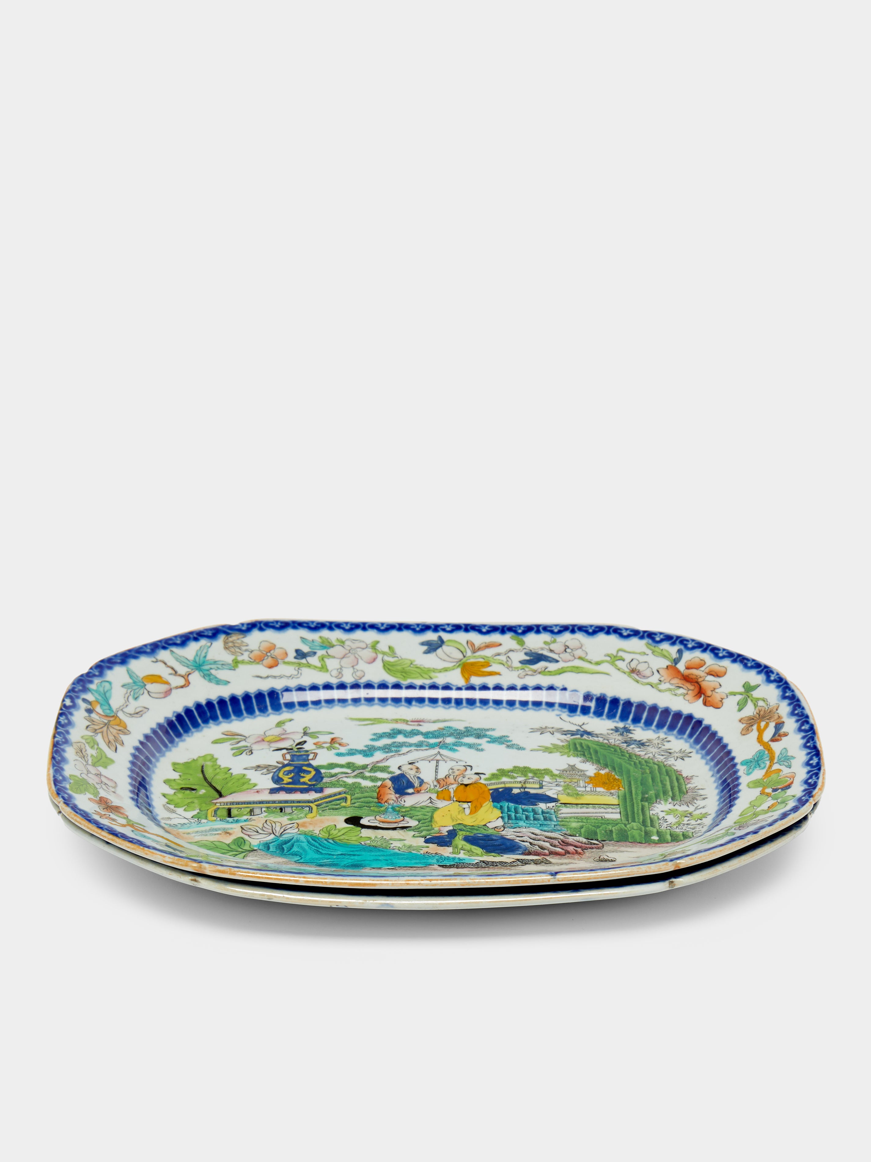 Antique and Vintage 1820s Mogul Masons Ironstone Platters (Set of 2)