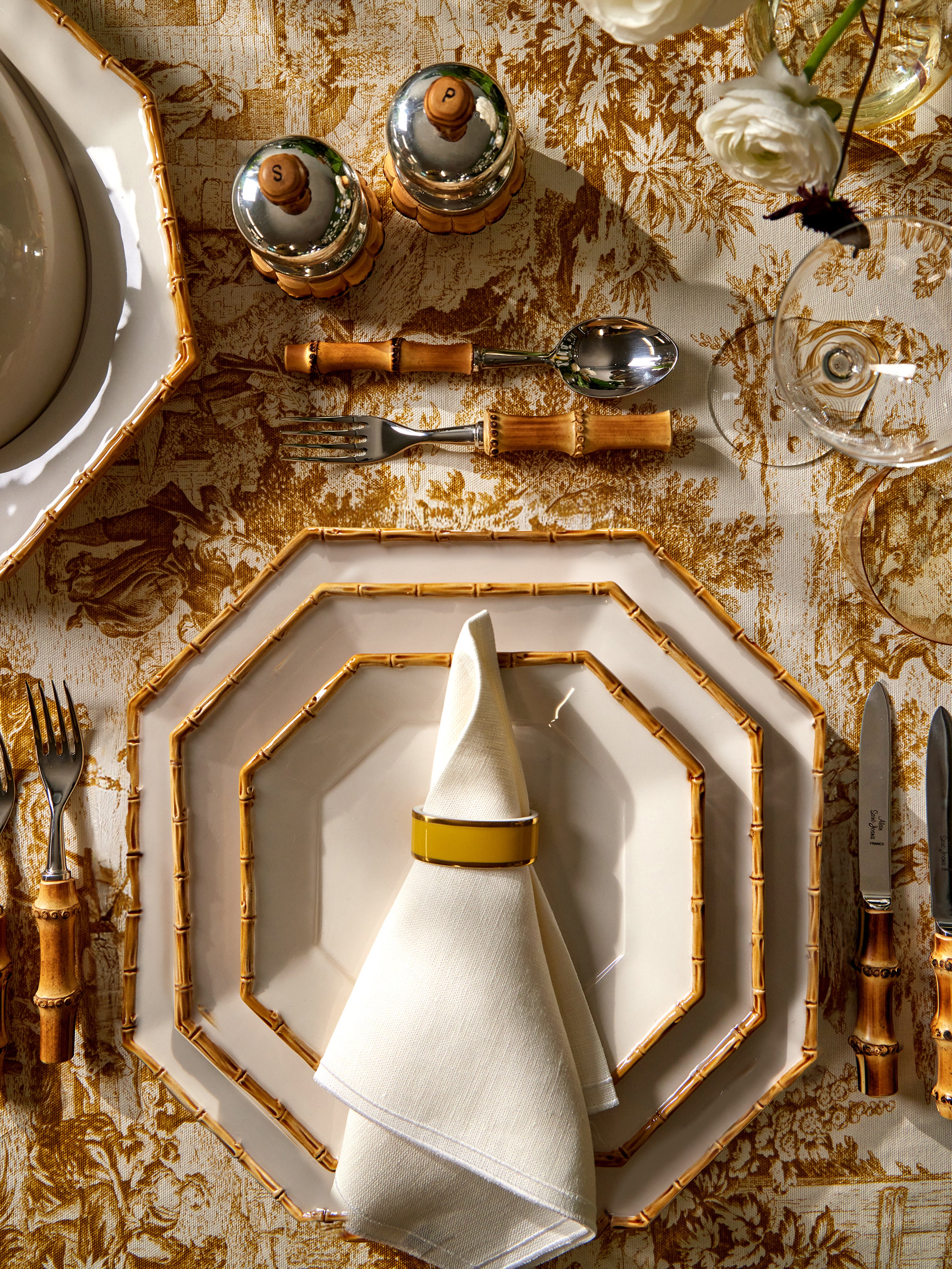 Bamboo Hand-Painted Ceramic Soup Plate (9.5in/24cm)4cm (h) x 24cm (w) x 24cm (l) / 1.6" (h) x 9.4" (w) x 9.4" (l)