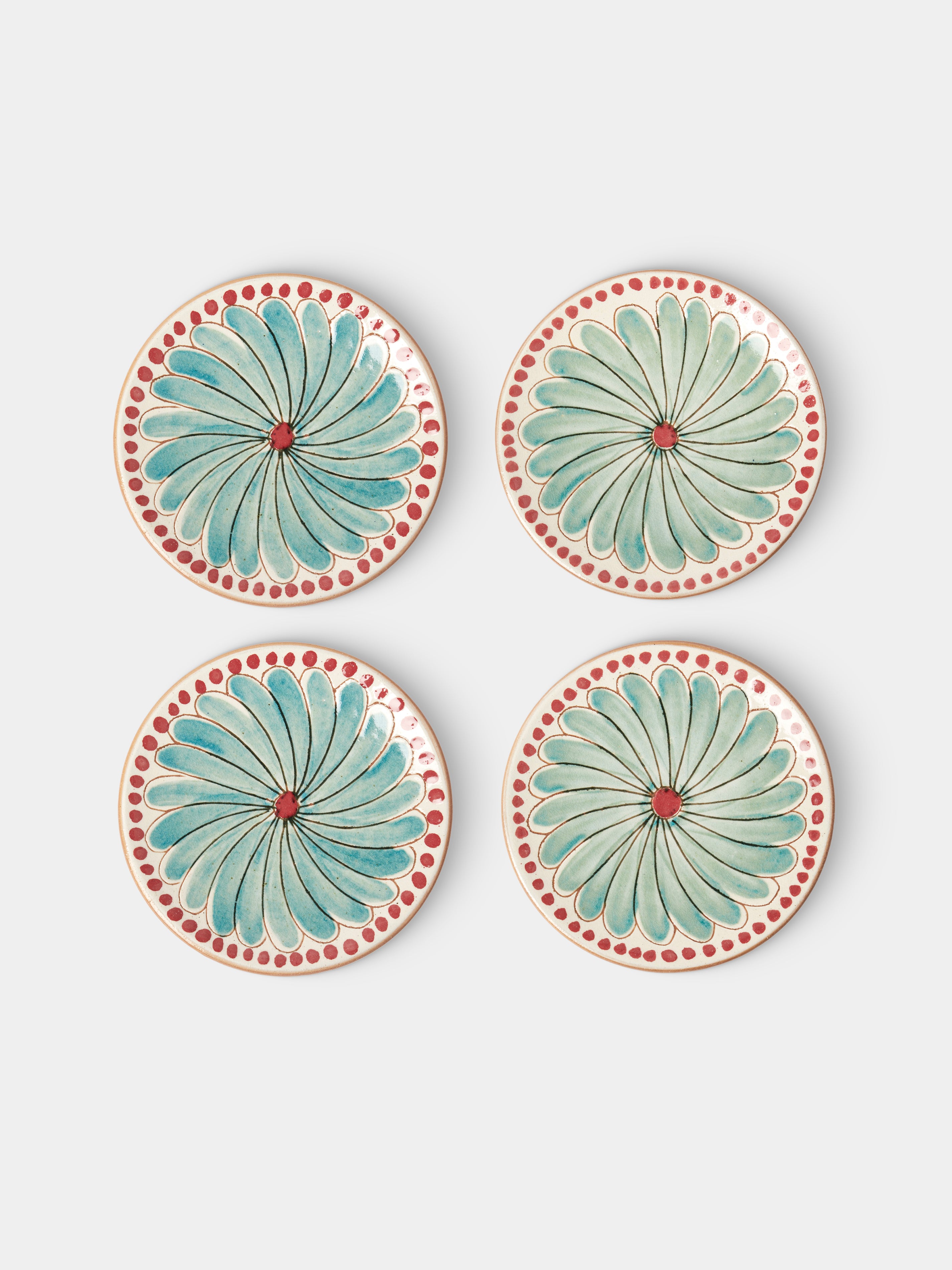 Anut Cairo Flower Hand-Painted Ceramic Salad / Dessert Plates – 7in/18cm (Set of 4)