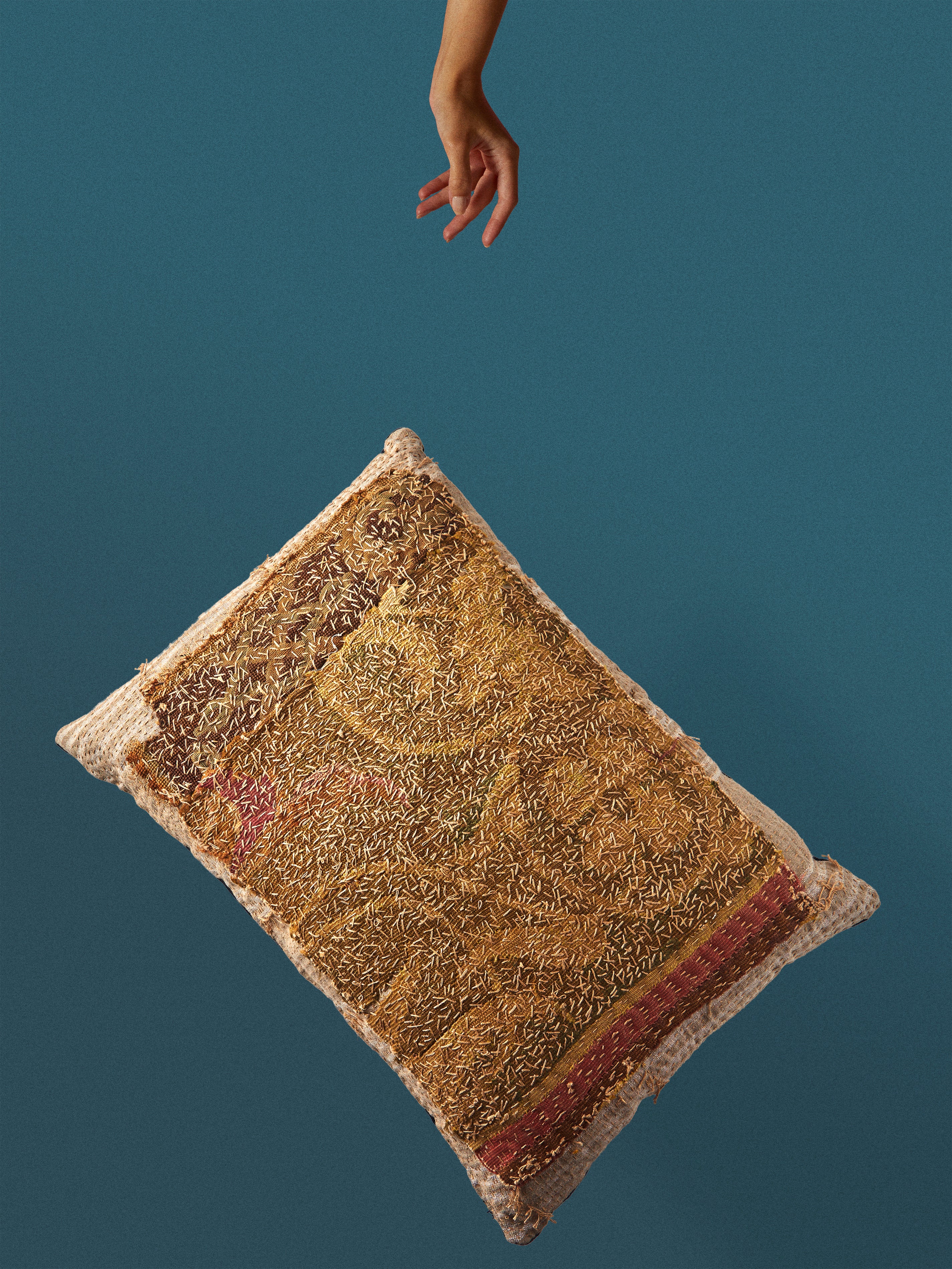 Transforming 18th century quilts and vintage treasures into wearable art and homewares, By Walid was founded by British-Iraqi designer, Walid Damirji. The zero-waste label repurposes all manner of vintage fabrics including Rococo silks and pastoral embroideries to dream up one-of-a-kind pieces that create big impact at home, but little-to-none on the planet – a win win.