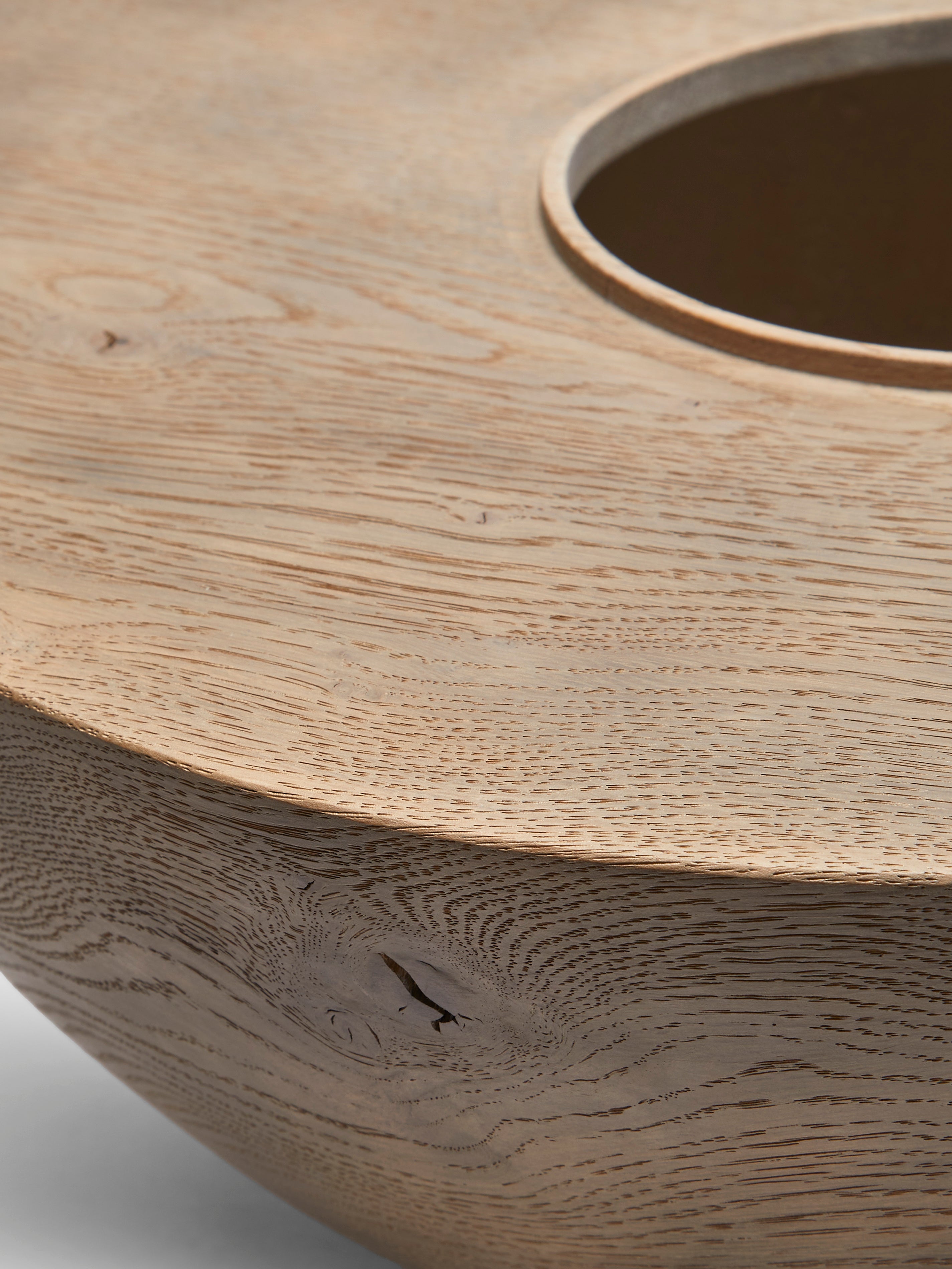 Hand-turned from freshly cut green wood, Felix Votteler’s creations emerge from the marriage of craft and nature. Sourced from locally and sustainably felled trees, each piece evolves as the wood breathes, dries and bends—allowing the material’s own quiet spirit to shape its form. Please note: This mineral-finish oak vase is not watertight and is intended for decorative use only. To display fresh flowers, we recommend placing a watertight vessel inside.