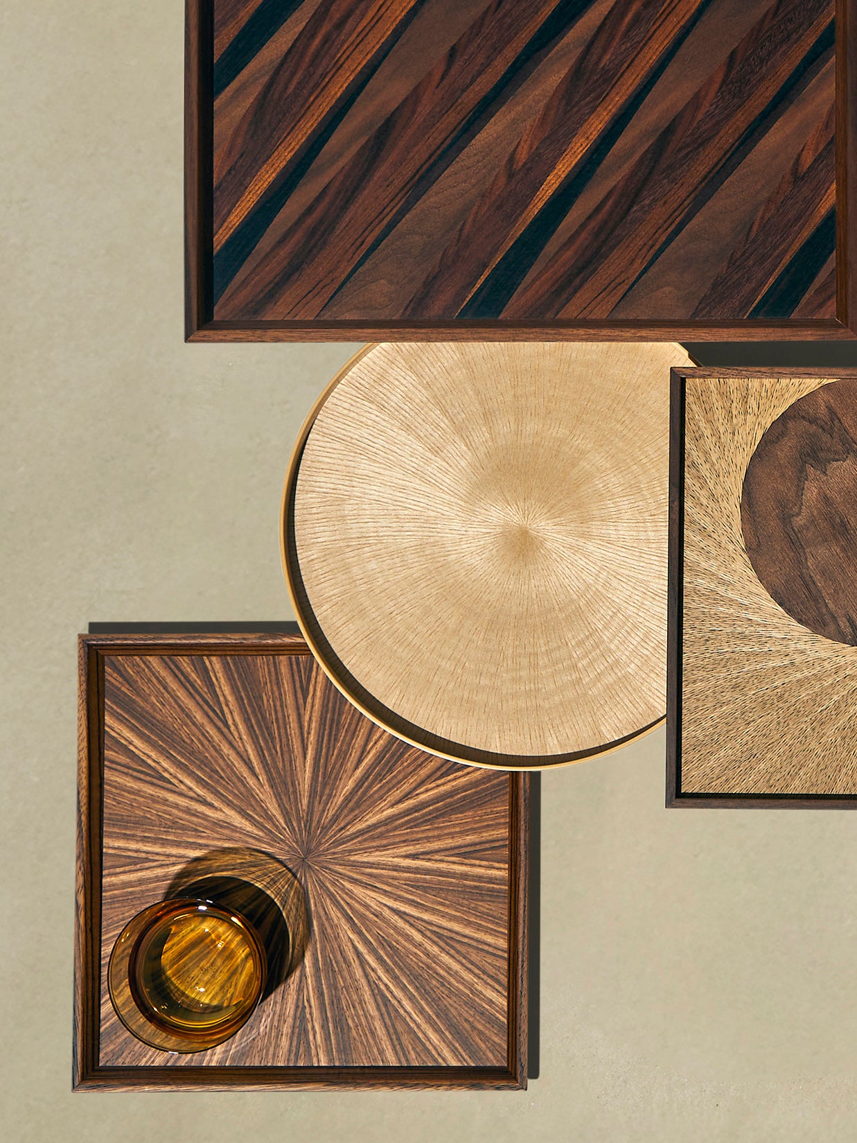 Since 1953, Tokushima-based Mori Kougei has been specialising in tsuki-ita, a highly complex technique in which paper-thin sheets of wood are sliced with sharp blades before being bonded together to form intricate surface patterns. This meticulous process has been refined and passed through the generations for more than 70 years. The result is a selection of functional trays highlighting the grain, colour and character of different wood species. Expect meticulously indigo-dyed pieces – a treasured Tokushima art – and subtle, contemporary scenes inspired by art, geometry and nature.