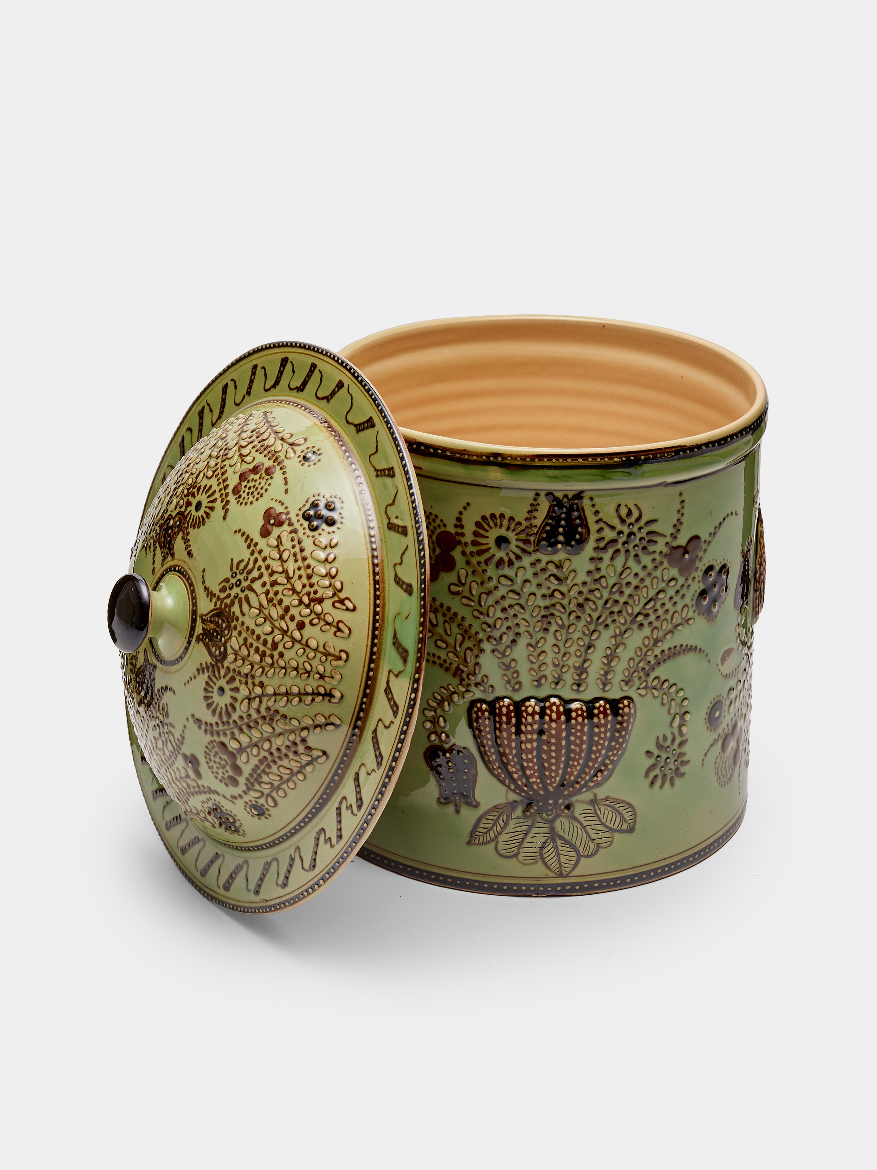 Poterie d’Évires Flowers Hand-Painted Ceramic Giant Lidded Pot