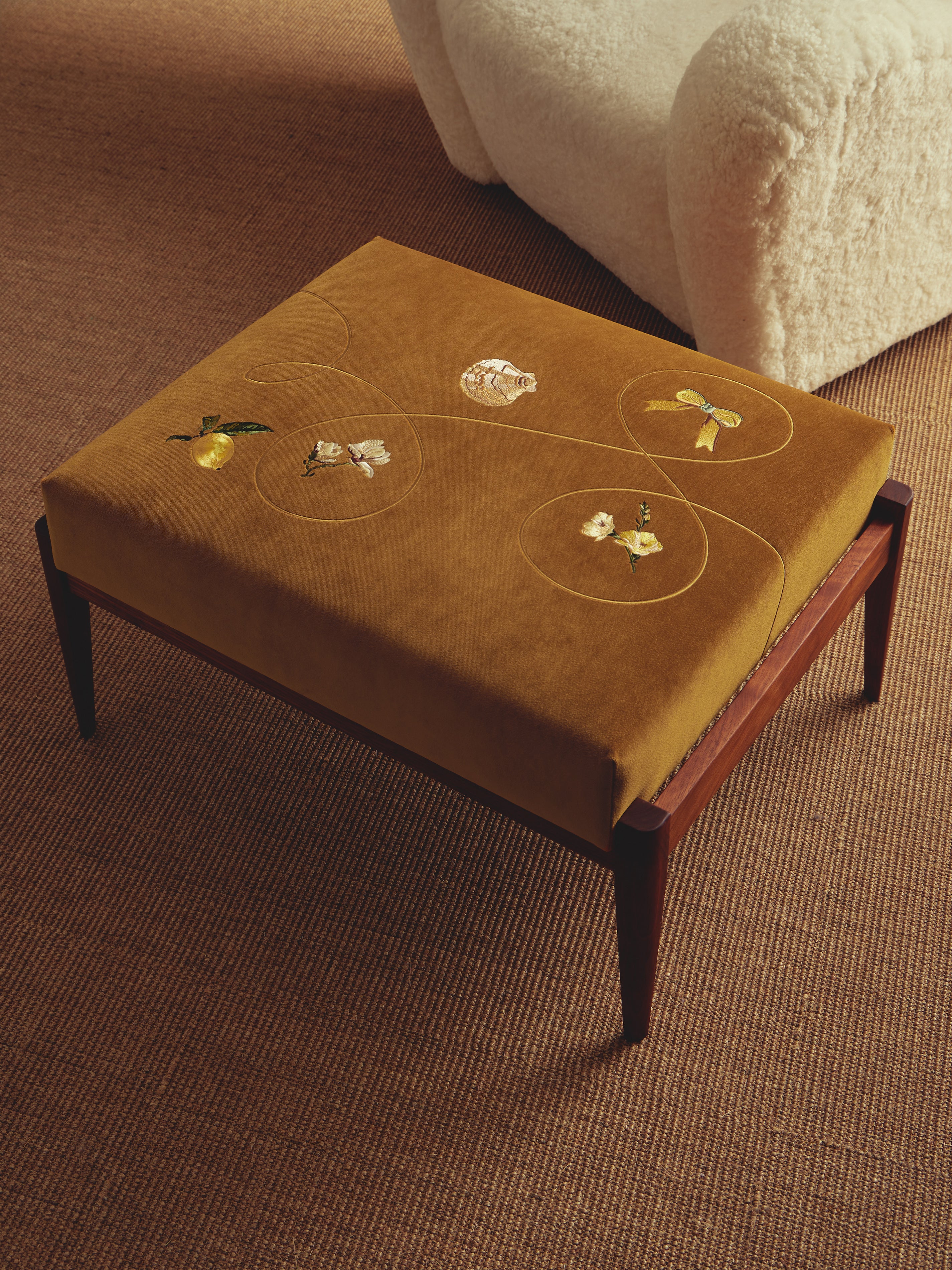 Uncommon Ancestor Golden Girl Embroidered Velvet Rectangular Footstool