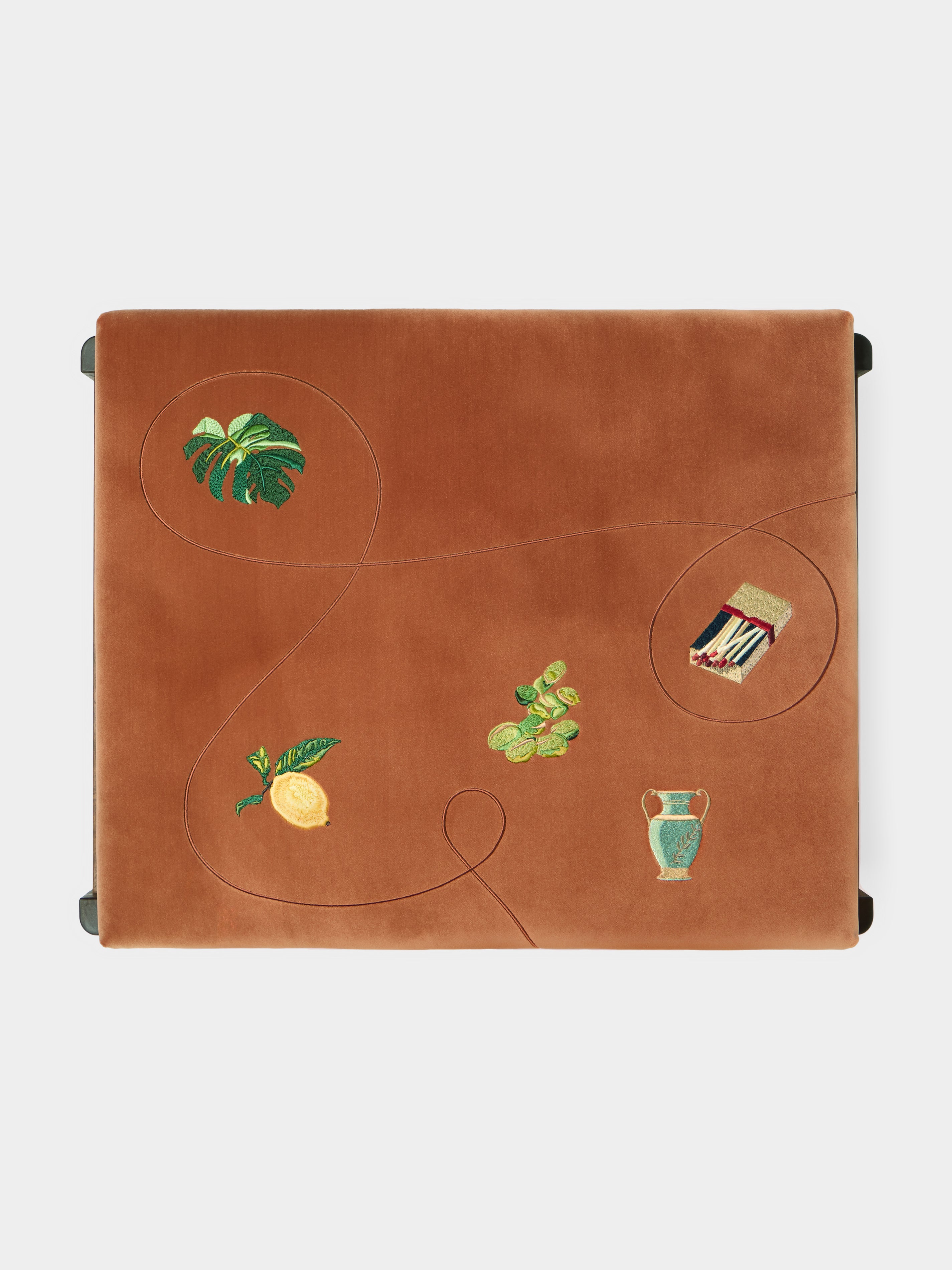 Uncommon Ancestor Odyssey Embroidered Velvet Rectangular Footstool