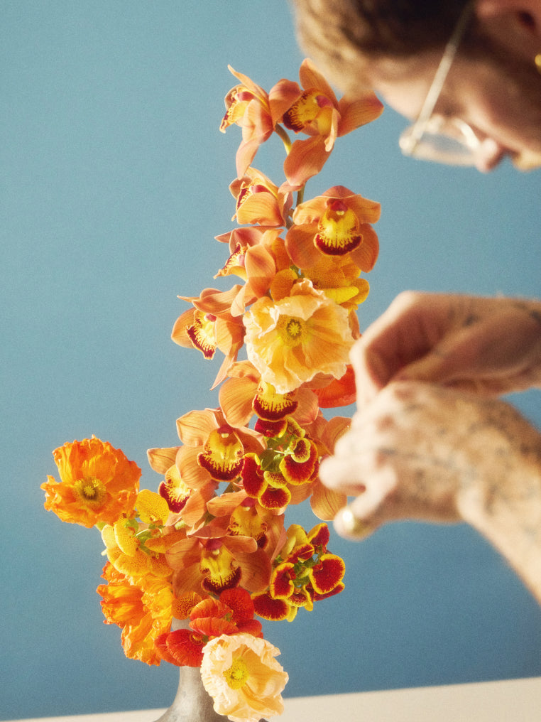 So, depending on what I wanted to evoke, that draws out the placement of my flower. Usually, I will start with a flower that will either signal the lowest, highest or widest point of the arrangement and that gives me the space in which I’m going to dance around. Generally, my arranging style is stem by stem and intuition. I never really plan that far ahead.”