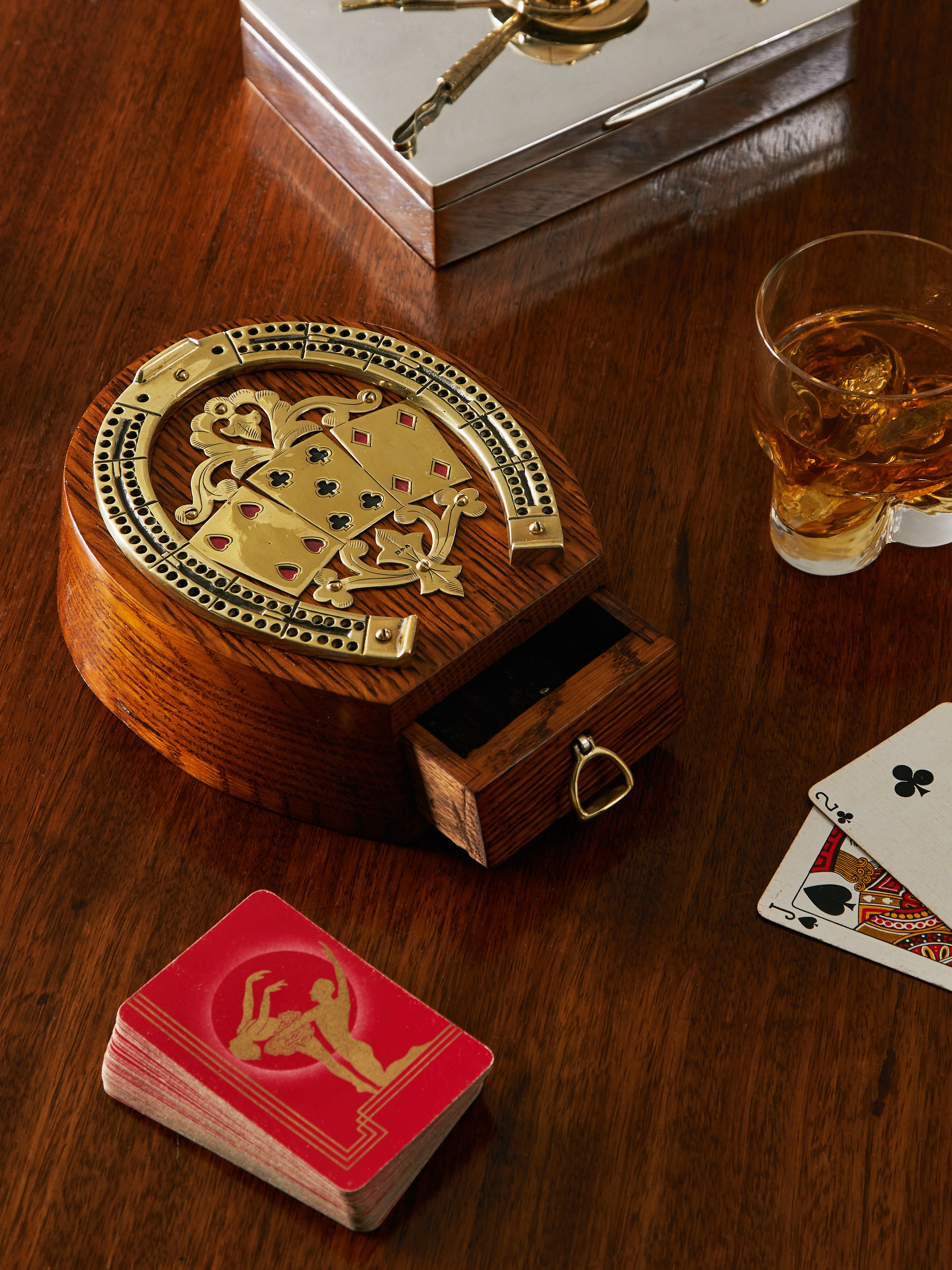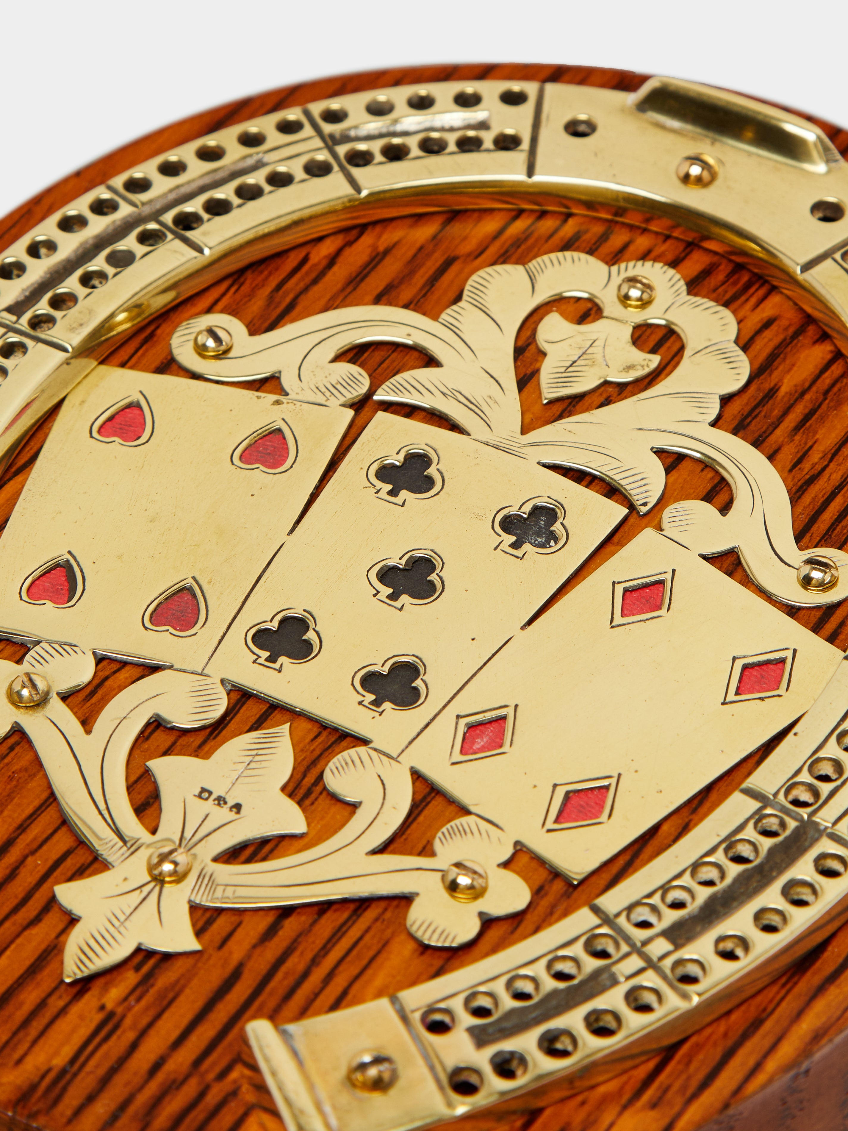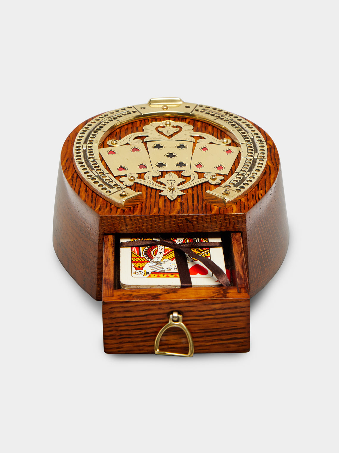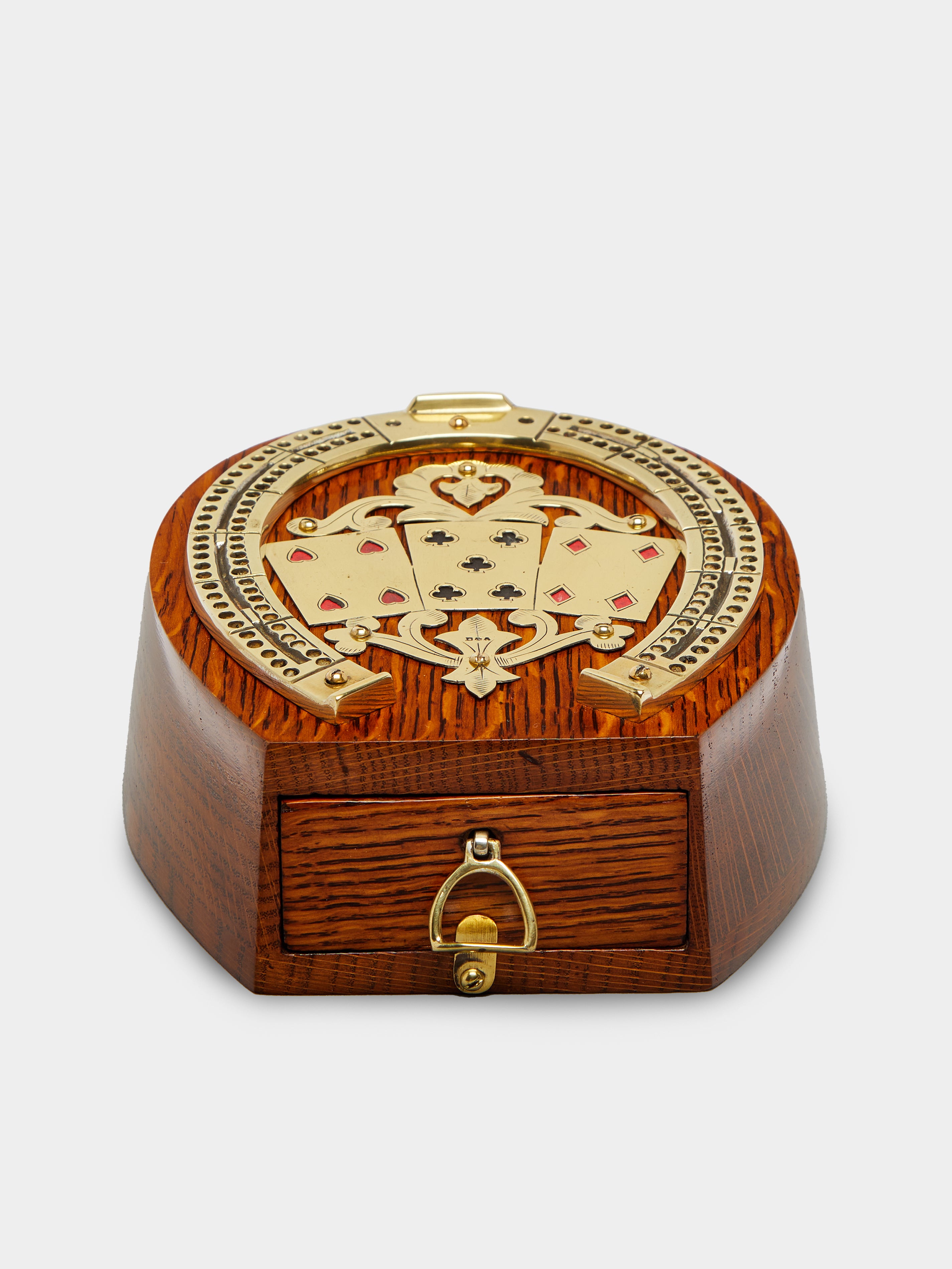 Antique and Vintage 1910s English Oak and Brass Cribbage & Cards Box