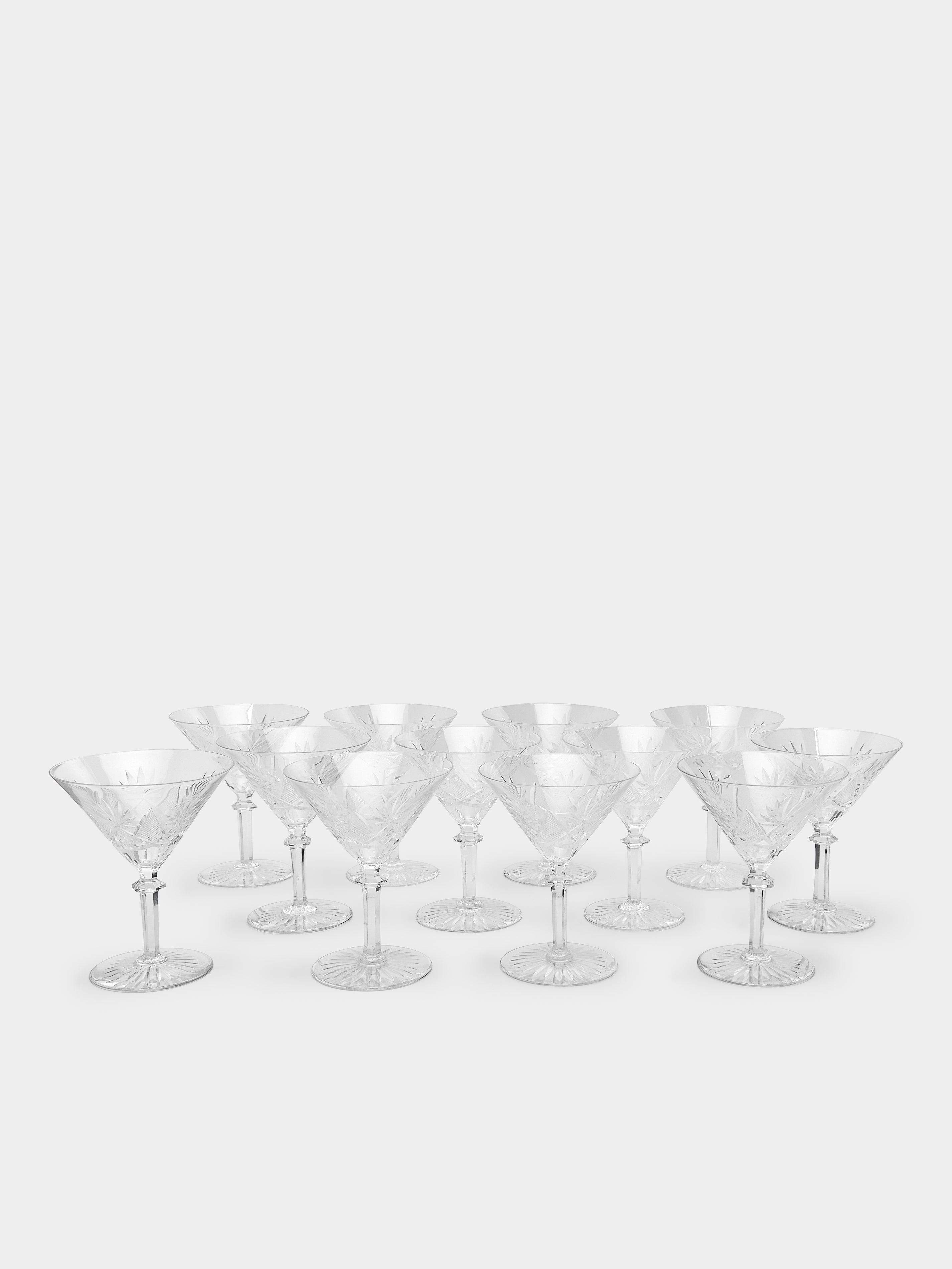 Antique and Vintage 1950s Val Saint Lambert Cut Crystal Cocktail Glasses (Set of 12)