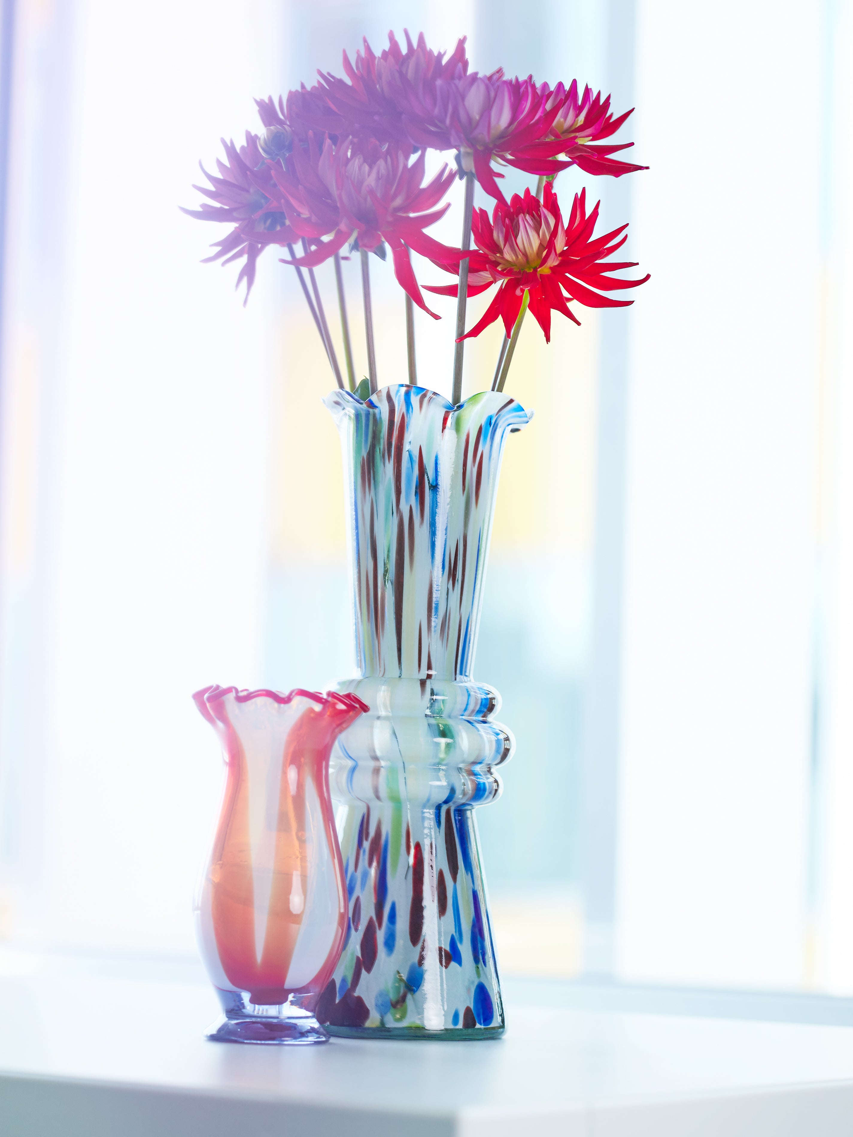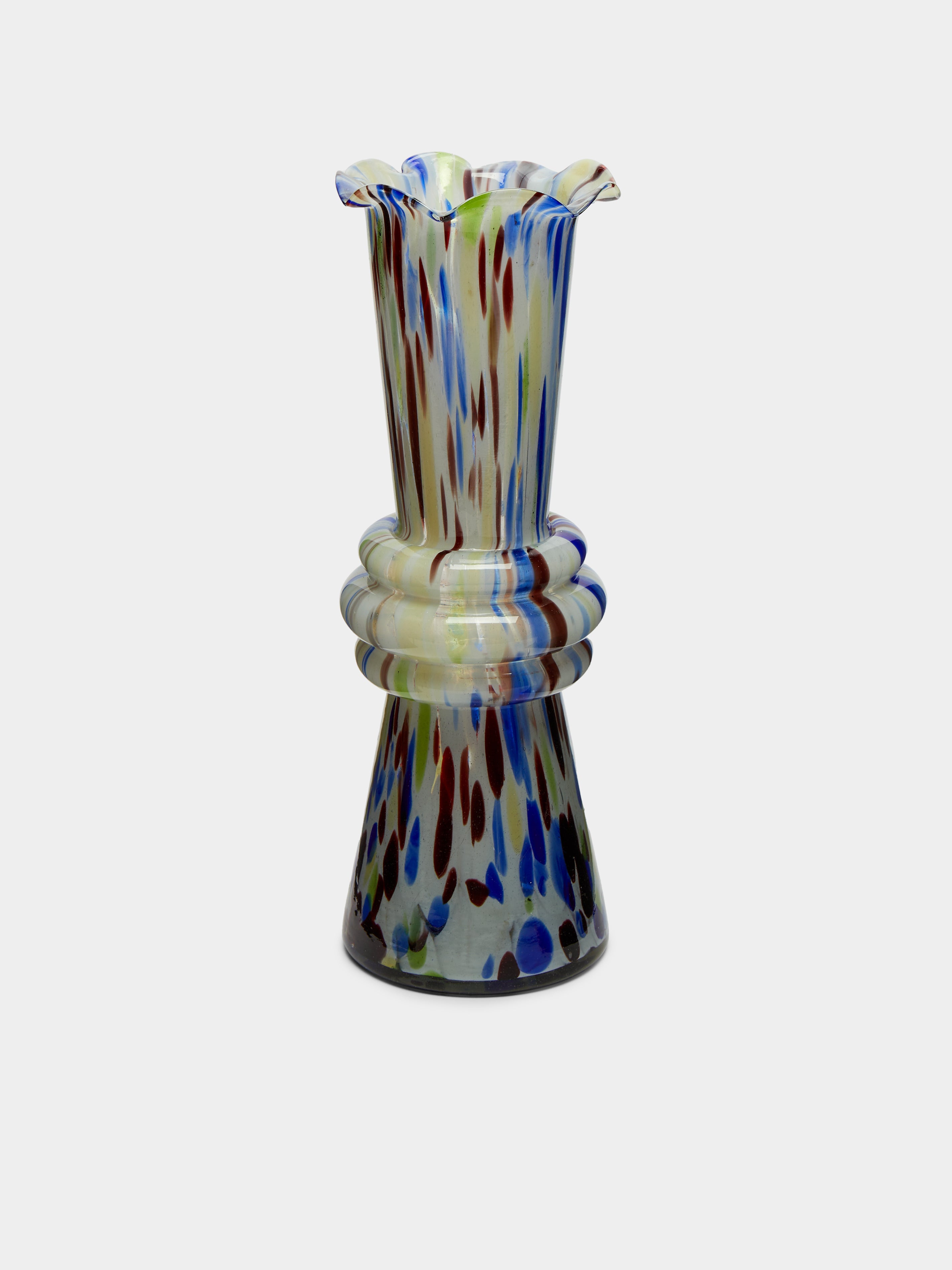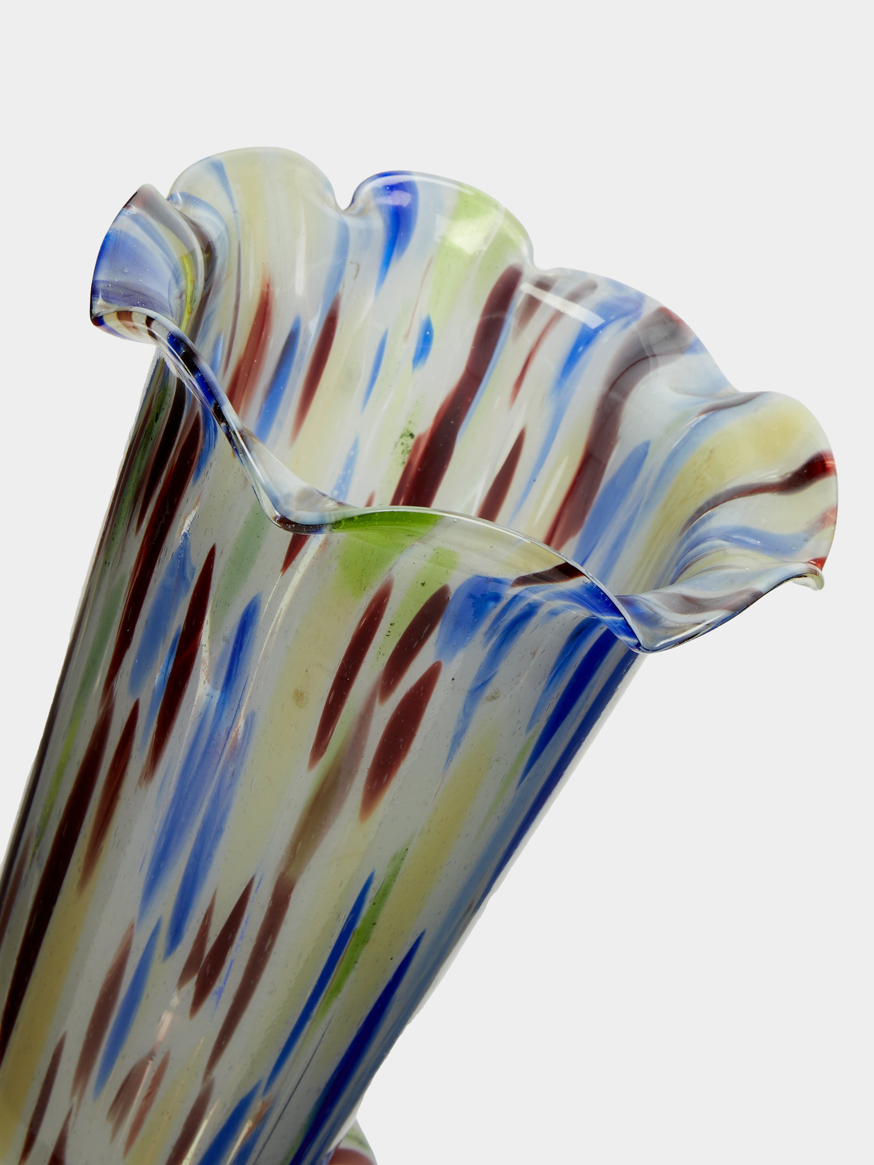 Antique and Vintage Mid-Century Rippled Glass Vase (14.5in/37cm)