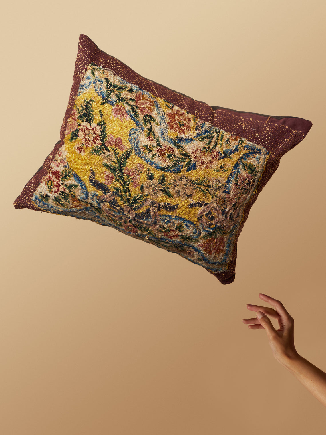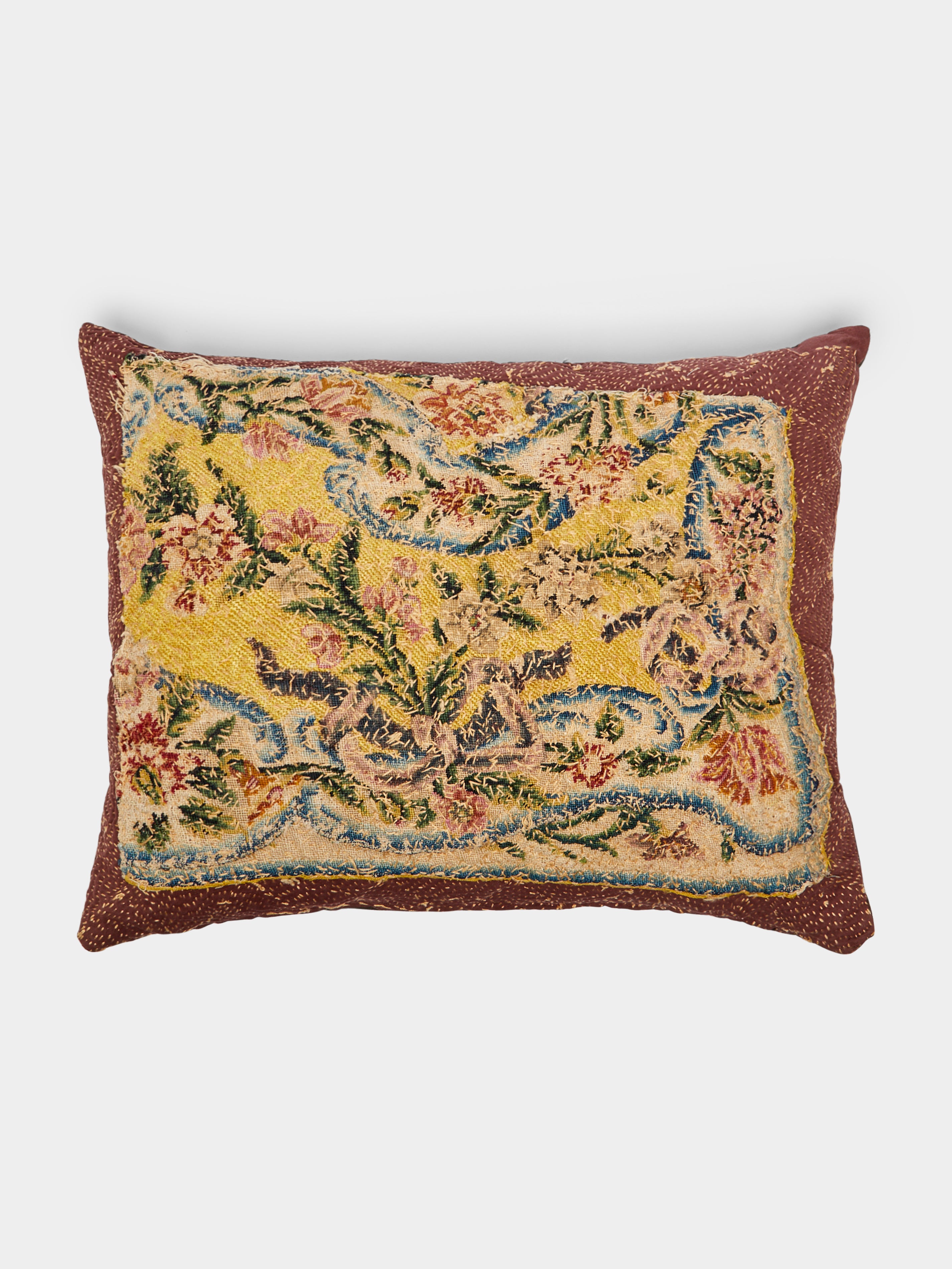 By Walid 18th-Century English Needlepoint Linen Cushion (25in/64cm)