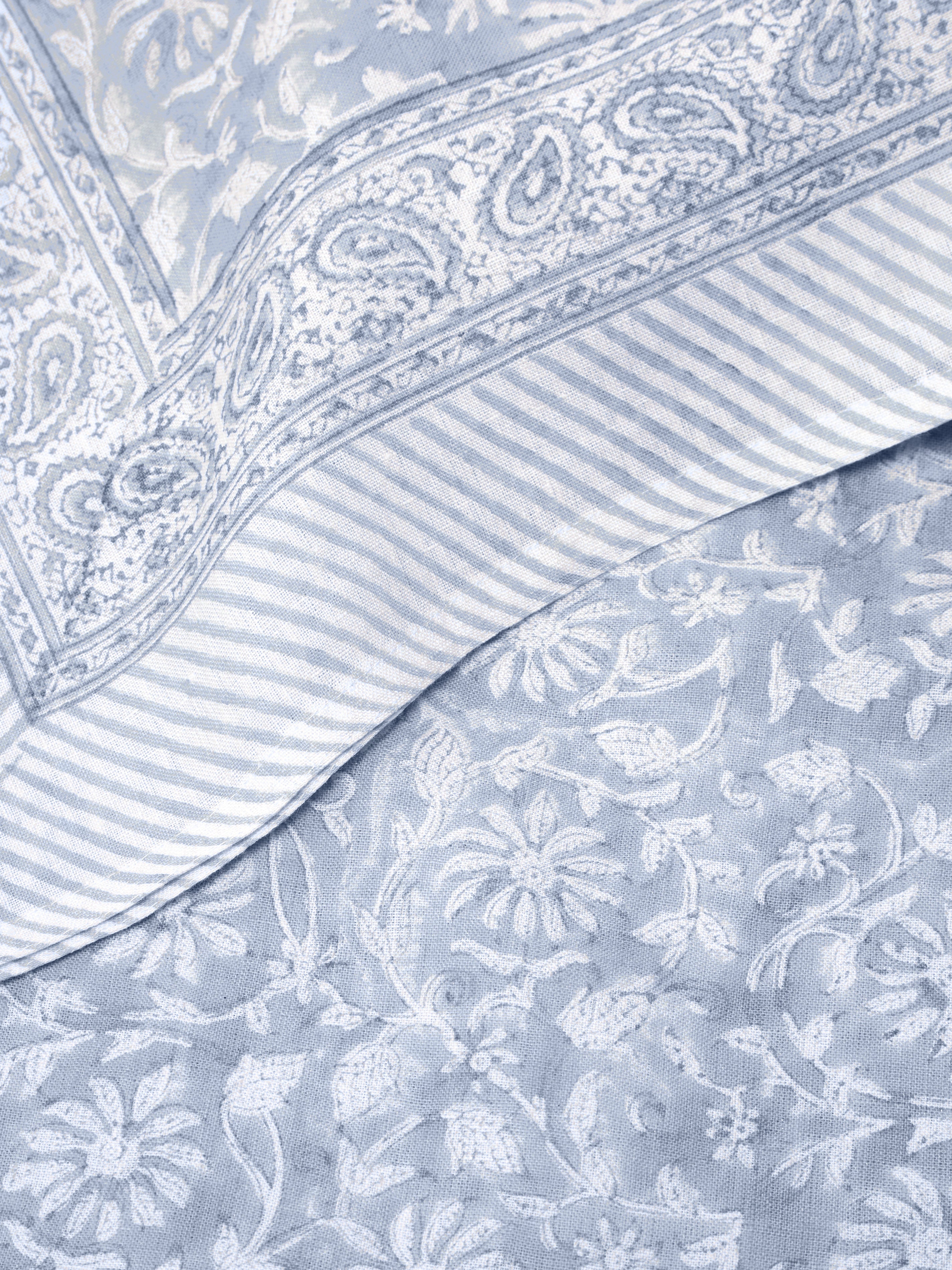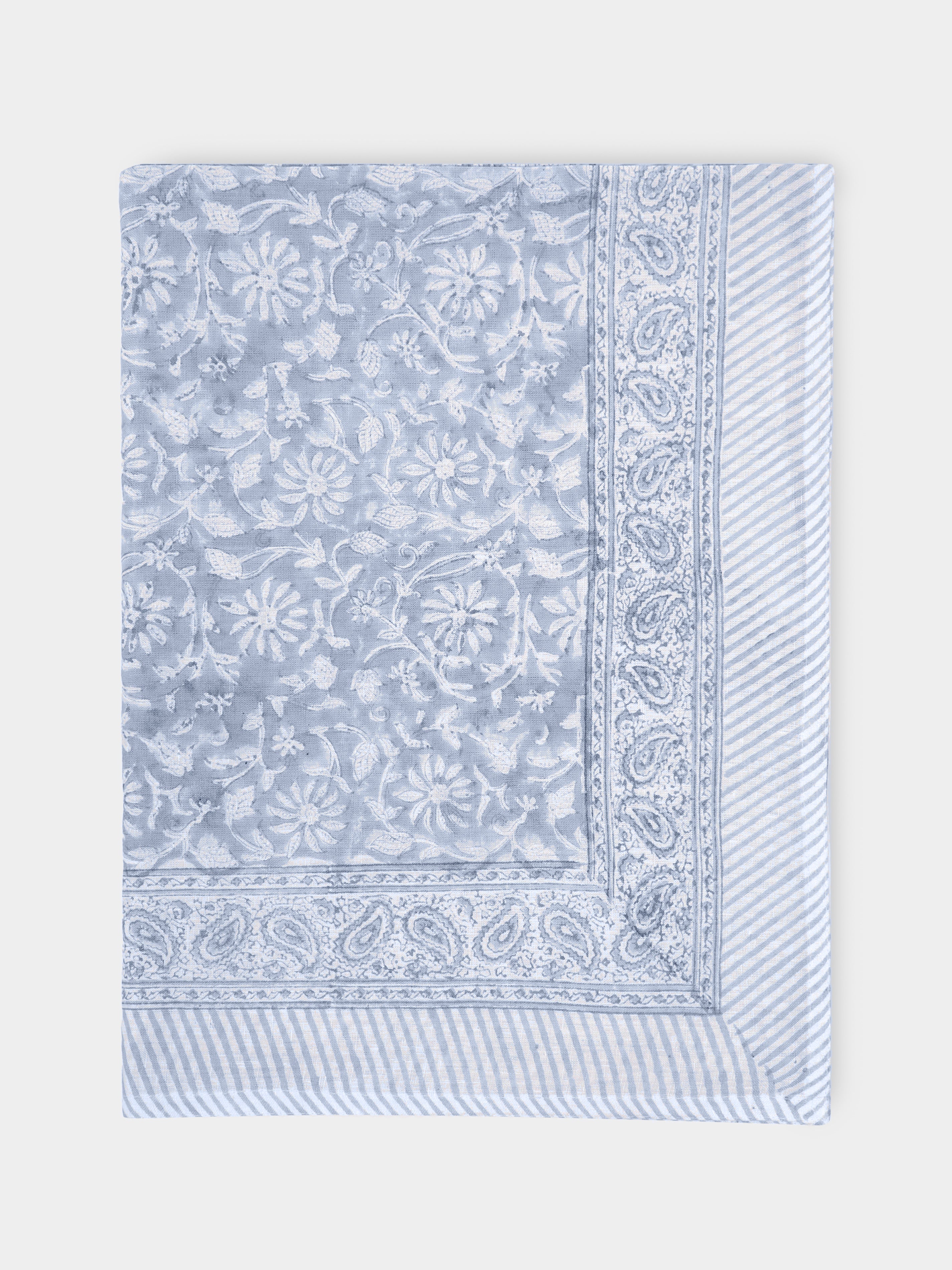 Chamois Margerita Block-Printed Linen Rectangular Tablecloth (106.5in/2.7m)