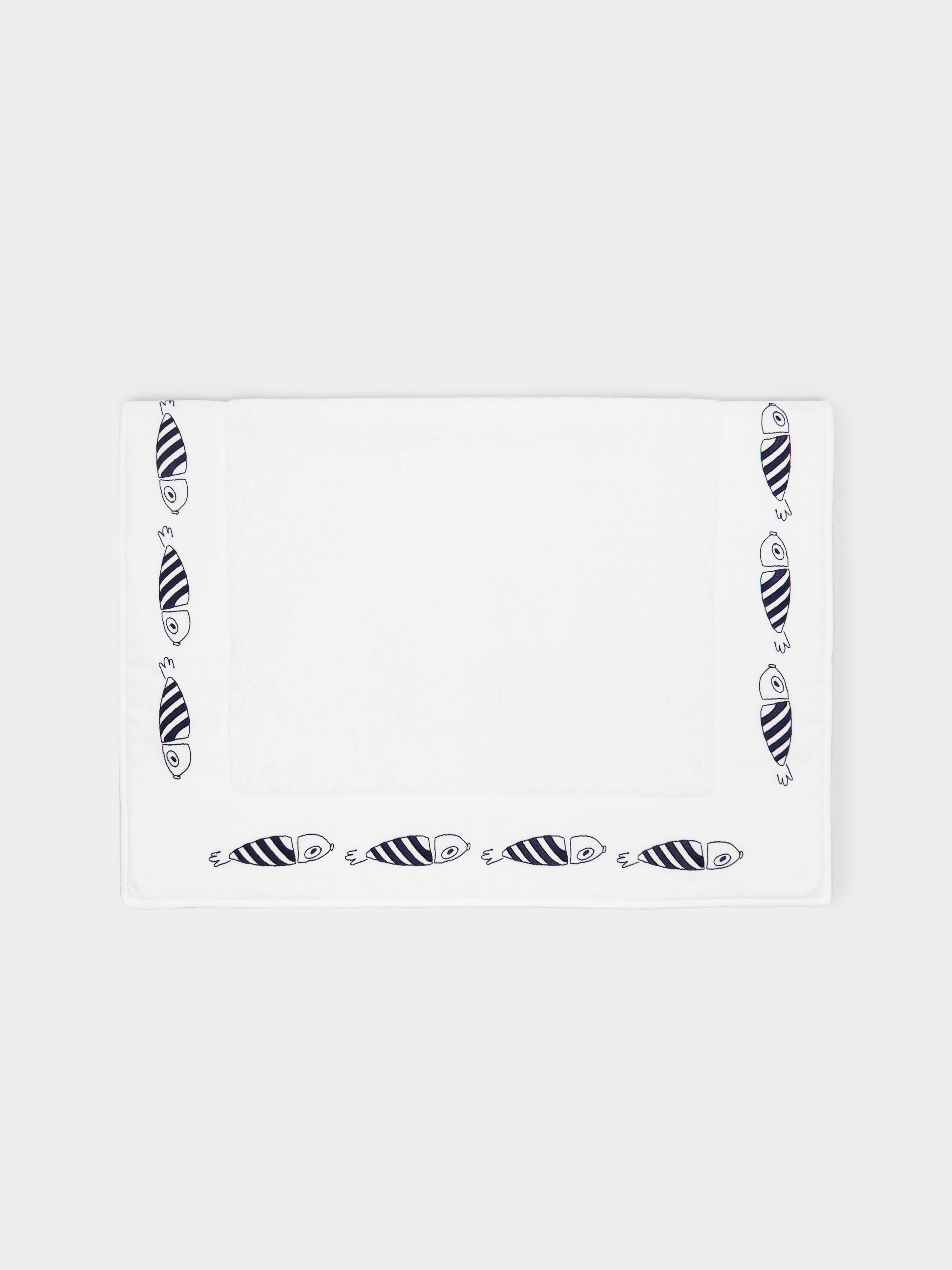 Striped Fish Hand-Embroidered Cotton Bath Mat51cm (l) x 76cm (w) / 19.9" (l) x 29.7" (w)