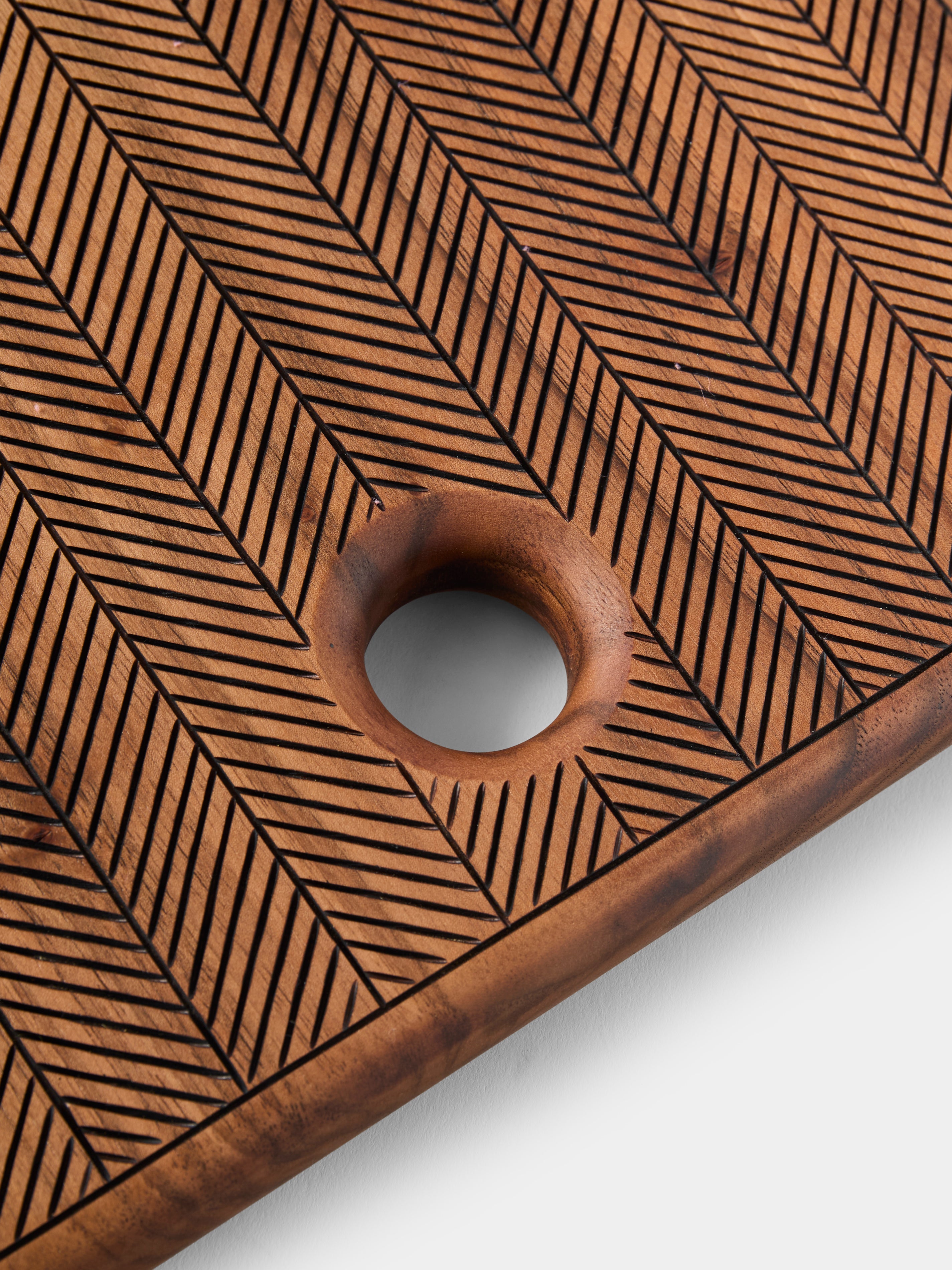 Interior designer and craftsman, Lucas Castex, is a self-taught woodworker who carves up unique, rustic creations - including our exclusive oiled walnut serving boards - from his forest-lined Les Landes studio in France. His sculptural, soul-led collections are characterised by repetitive patterns and original burnt wooden textures which contribute to his playful and modern design aesthetic.