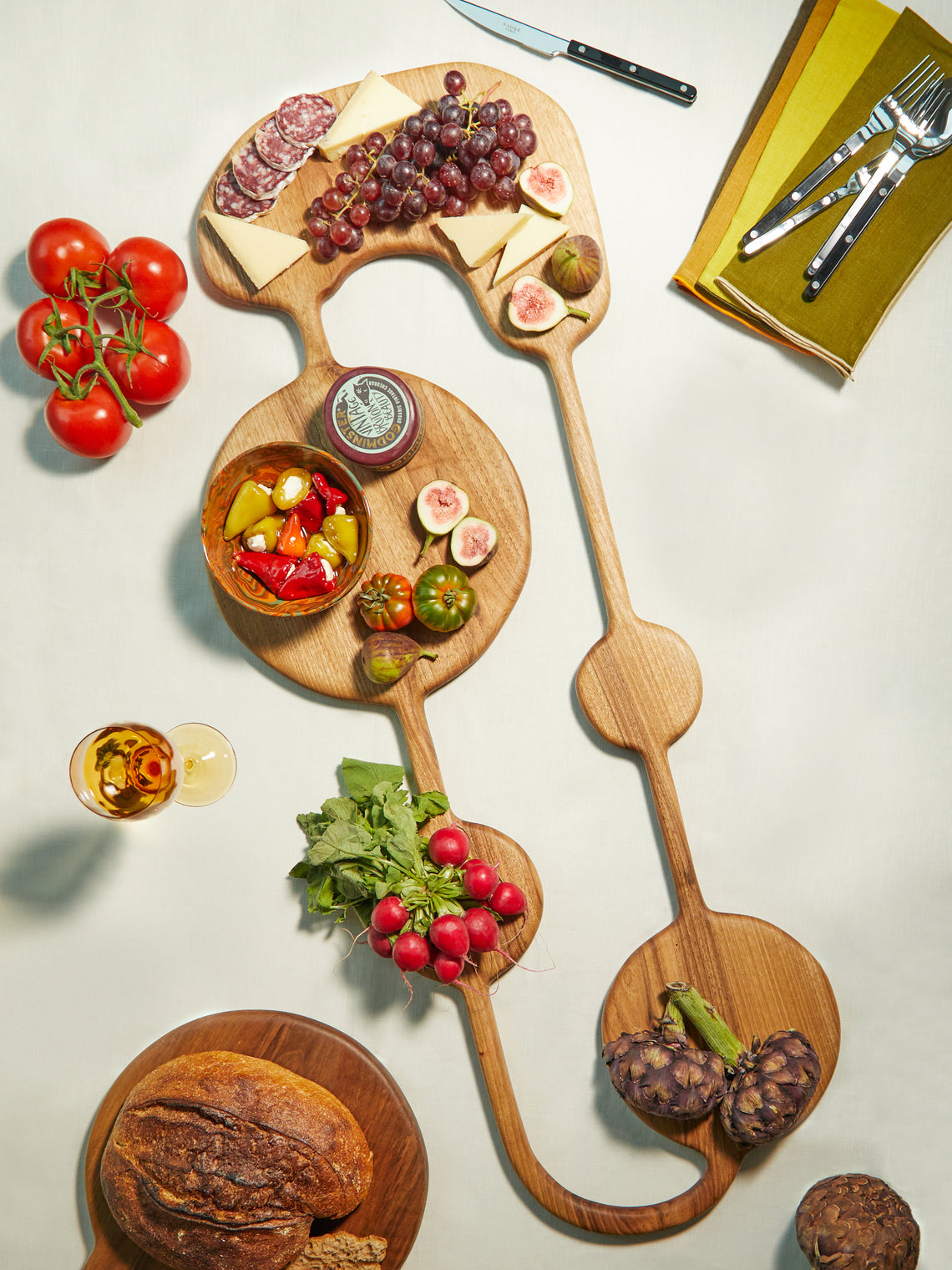 Interior designer and craftsman, Lucas Castex, is a self-taught woodworker who carves up unique, rustic creations - including our exclusive oiled walnut serving boards - from his forest-lined Les Landes studio in France. His sculptural, soul-led collections are characterised by repetitive patterns and original burnt wooden textures which contribute to his playful and modern design aesthetic.