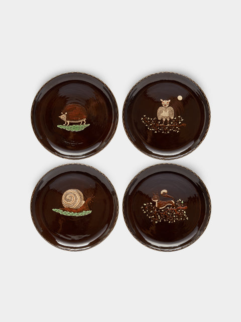 Poterie d’Évires Animals Hand-Painted Ceramic Dinner Plates – 9.5in/24cm (Set of 4)