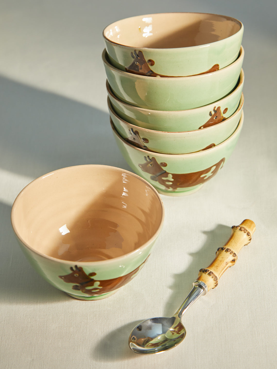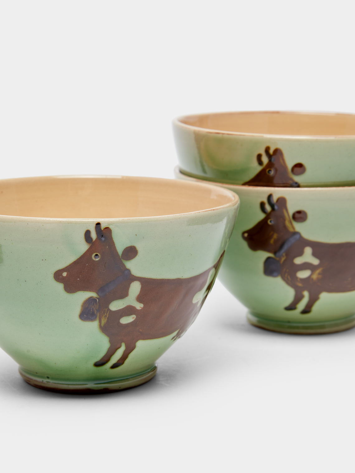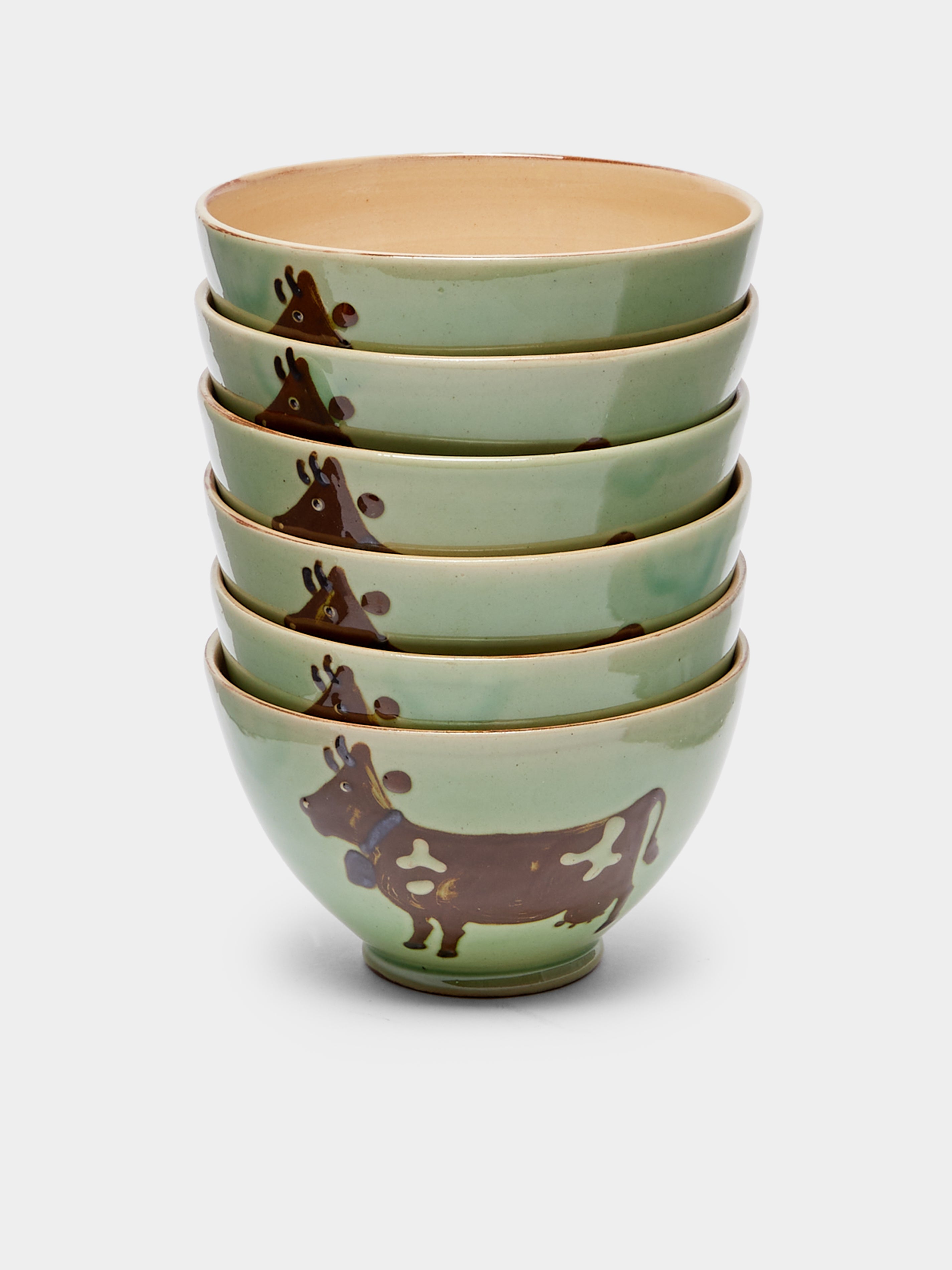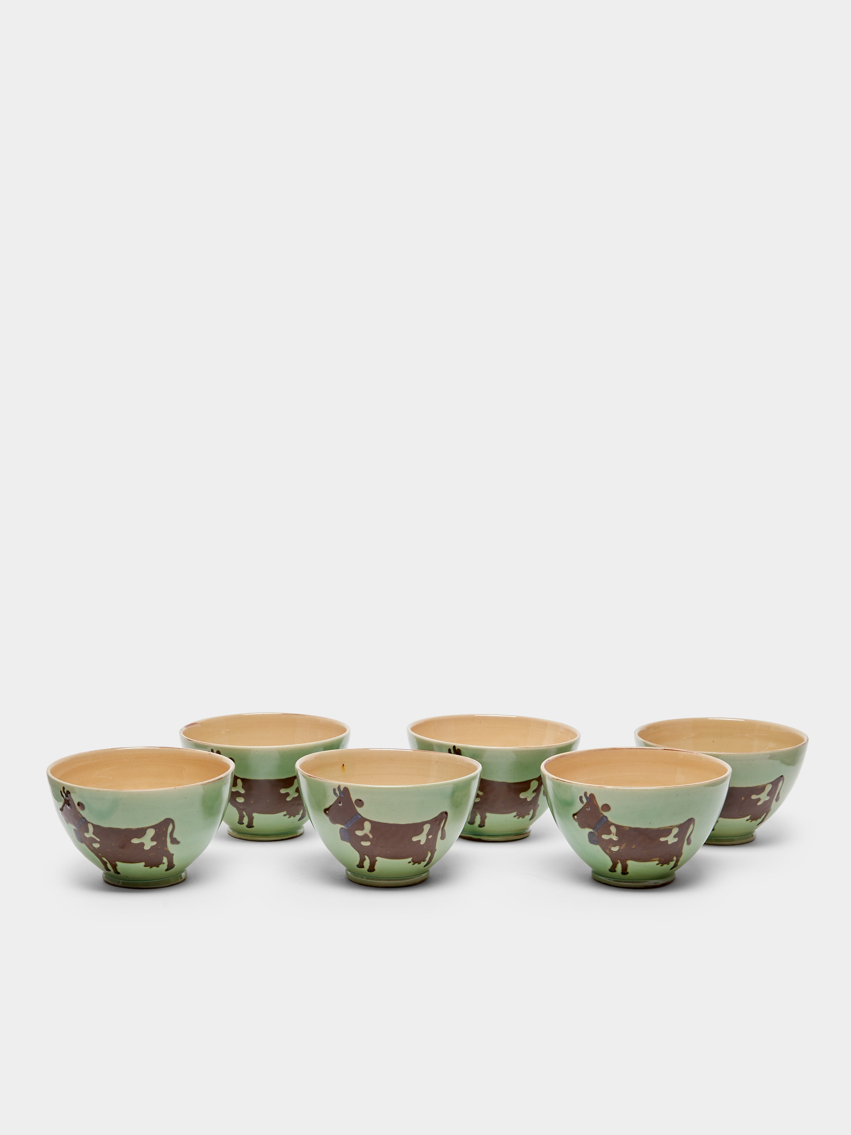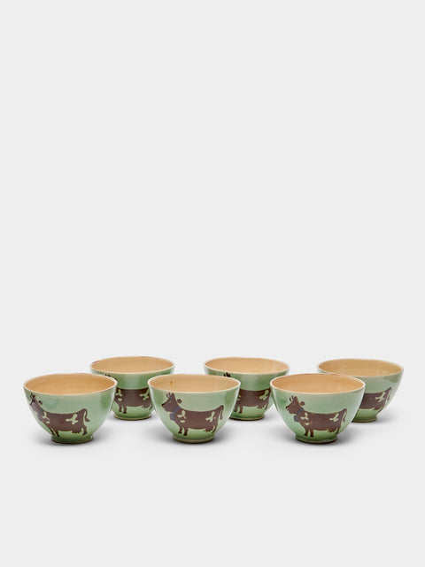 Poterie d’Évires Cows Hand-Painted Ceramic Cereal Bowls (Set of 6)
