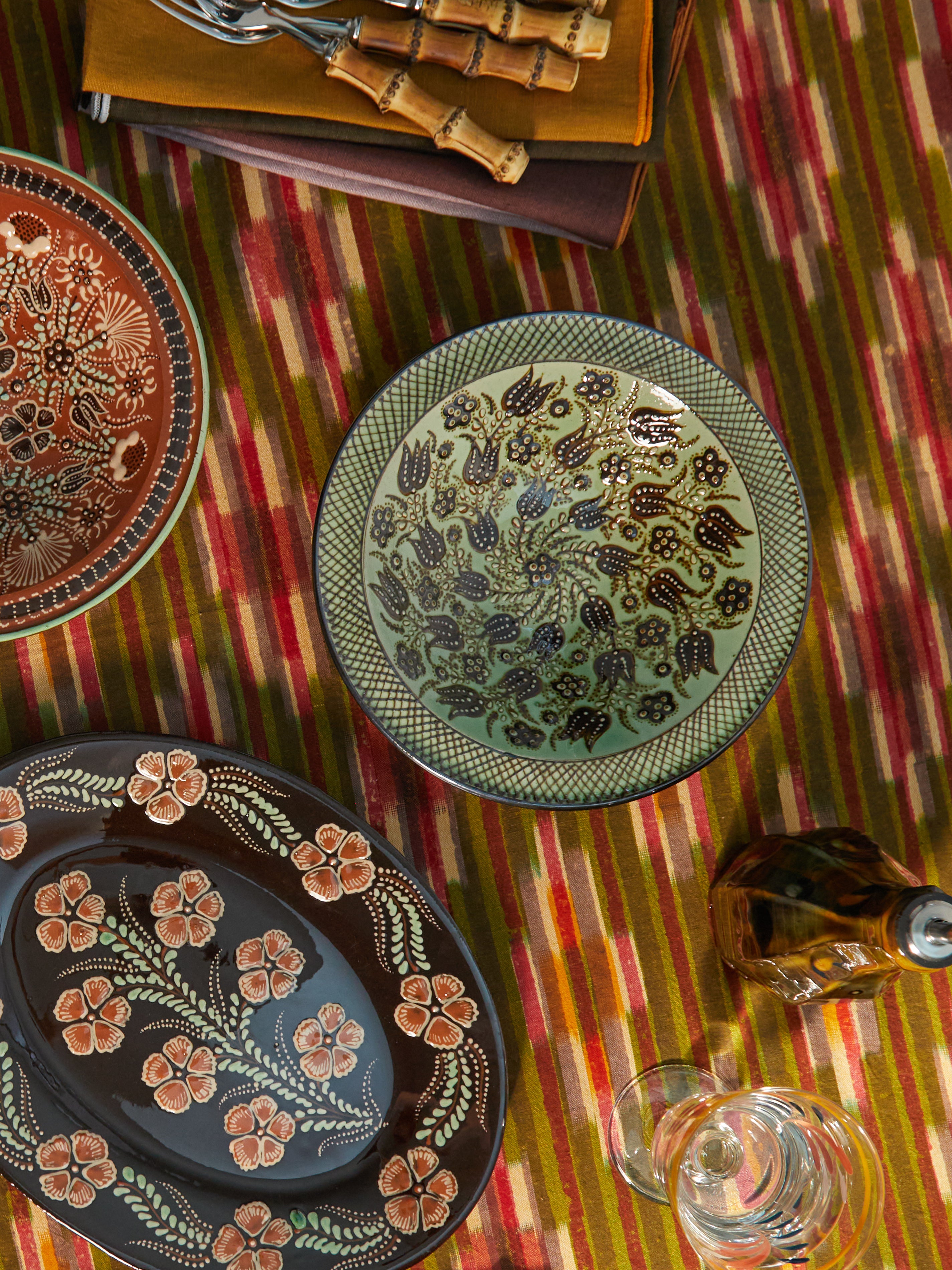 Jean-Christophe Hermann grew up near Lake Annecy in France, and recalls visiting an old pottery at just five years old that inspired him to pursue ceramics – a moment that led to the opening of Poterie d’Évires in 1971. Influenced by the landscape of their Haute-Savoie home, the Hermann family – Jean-Christophe and David, the father and son duo – hand-paint local delights onto their light, earthy and decorative clay; alpine flowers like tiny crocuses and soldanellas often feature, as well as native creatures such as Chamois and Ibex. ABASK made a special road-trip to the French Alps to hand-pick a curation from their exquisite collection. In 1981, after exploring his region’s brocante for many years, Jean-Christophe opened a museum dedicated to the pottery and folk art of Savoie. It’s the largest and most comprehensive collection in the world and displays pieces that date as far back as the 12th century.