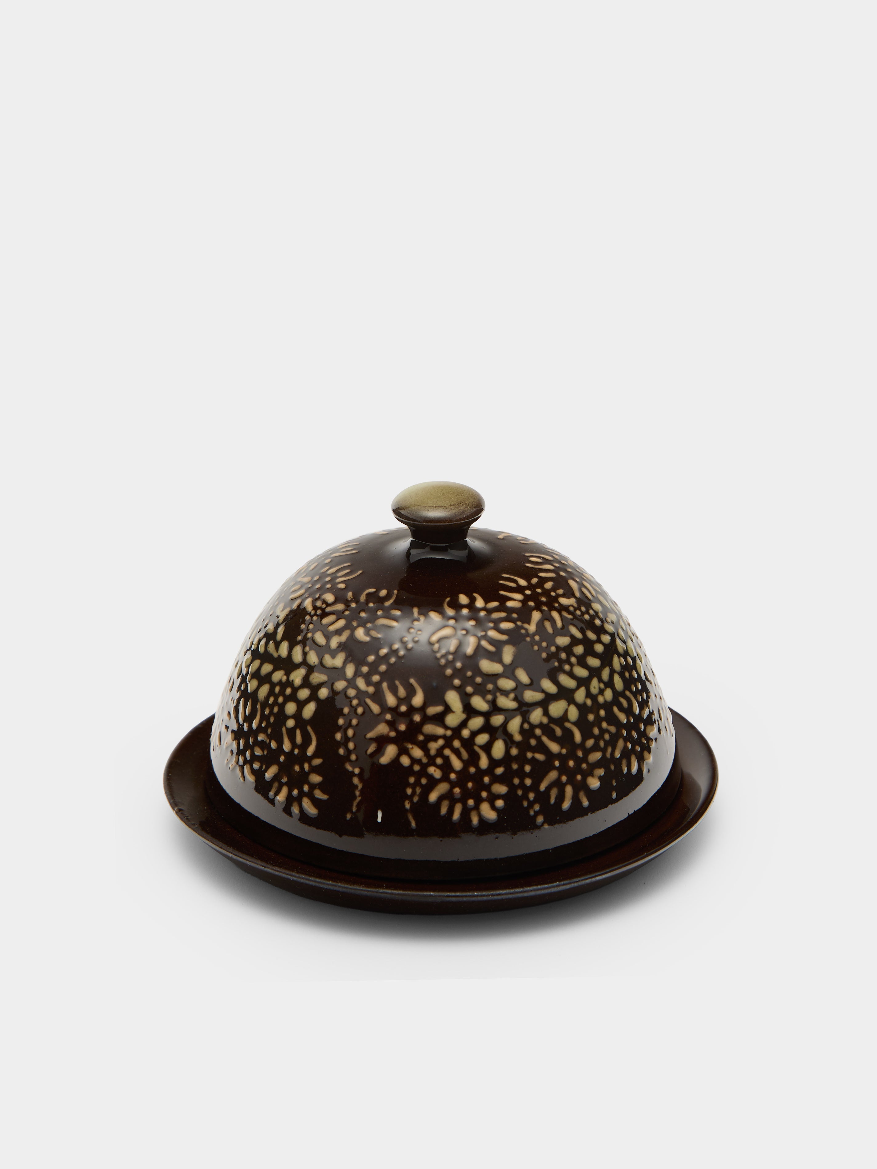 Poterie d’Évires Flowers Hand-Painted Ceramic Small Lidded Butter Dish