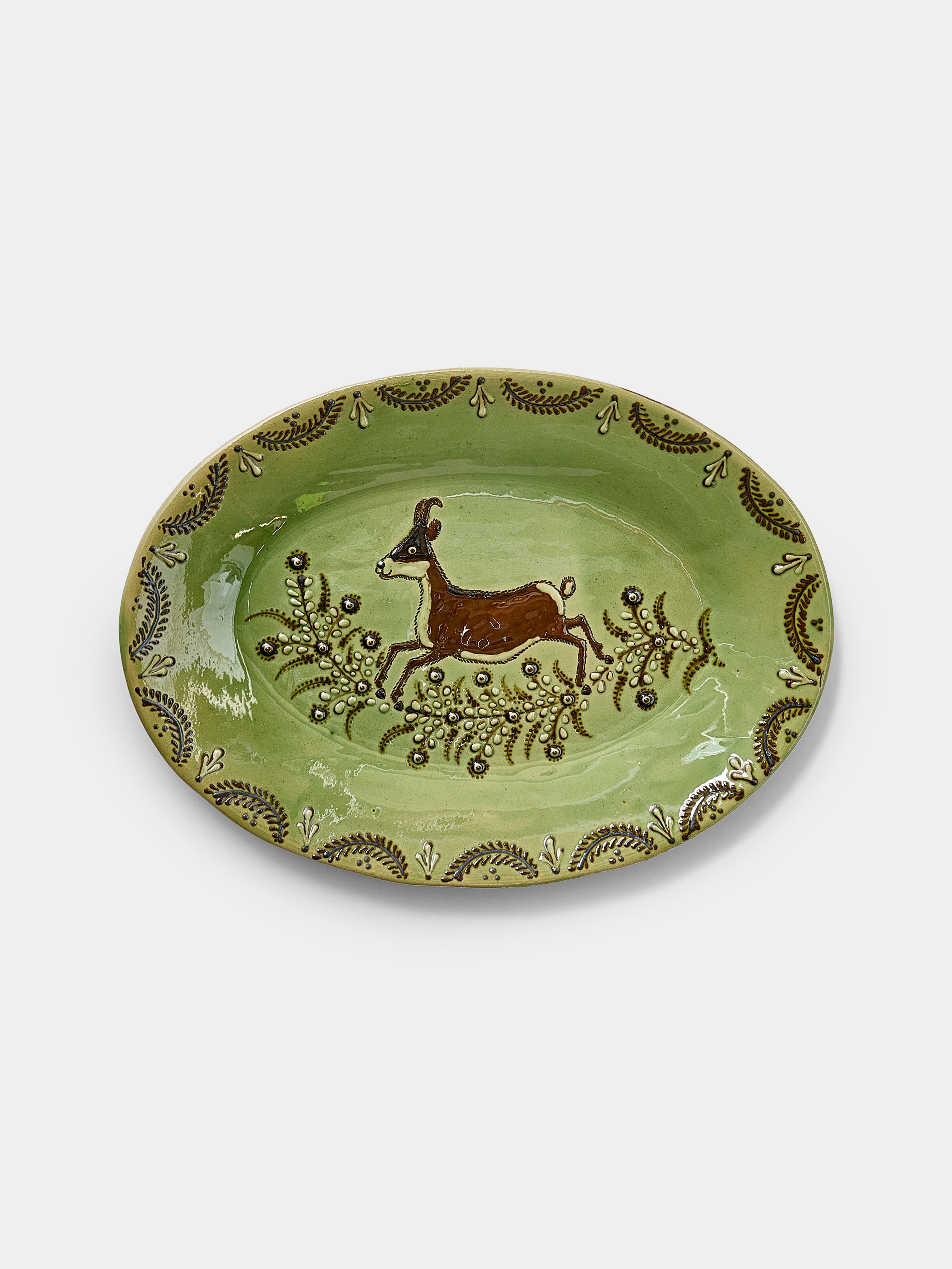 Poterie d’Évires Rams Hand-Painted Ceramic Oval Platter