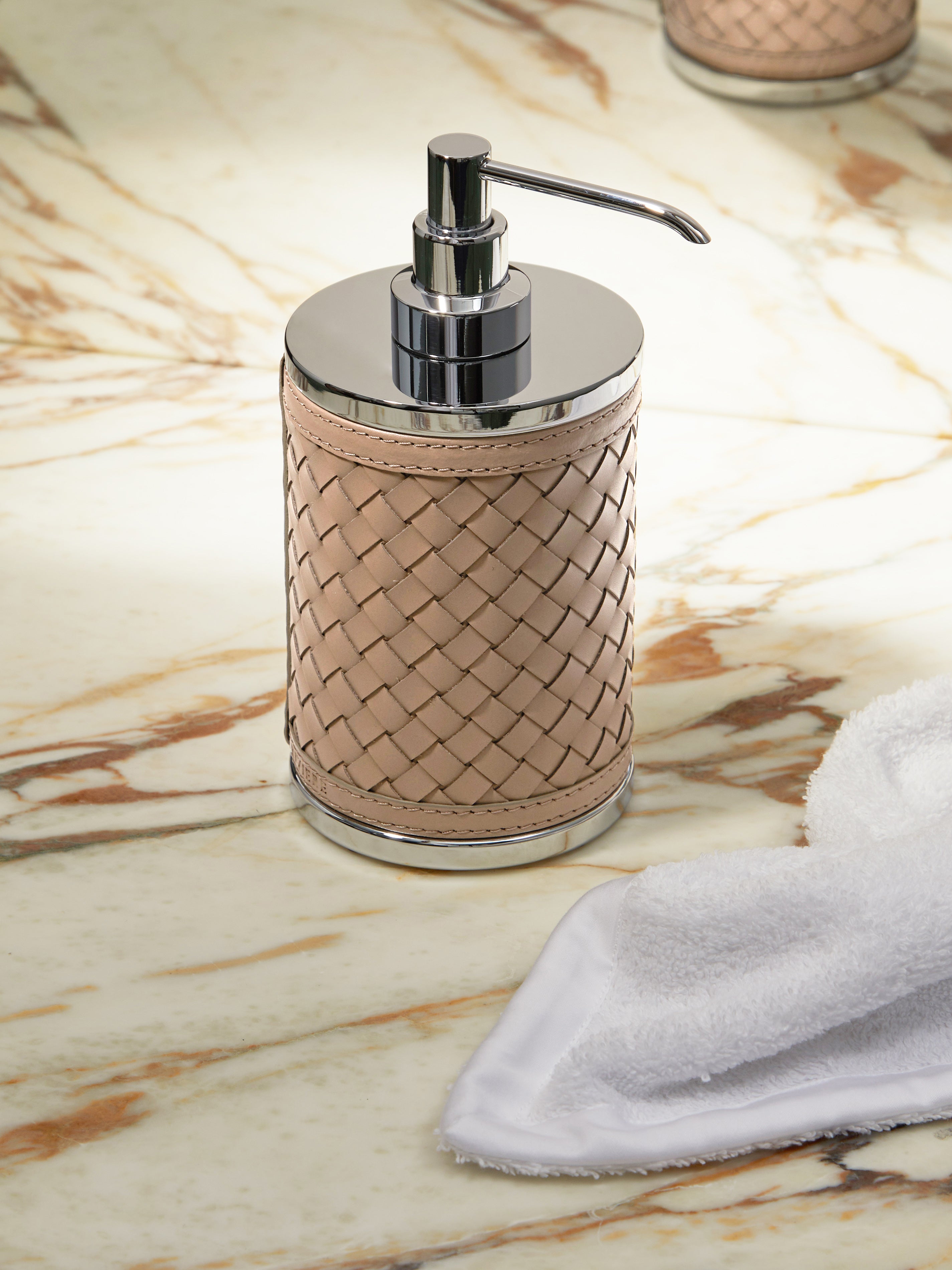 Woven Leather Soap Dispenser18cm (l) x 9cm (d) / 7.0" (l) x 3.5" (d)