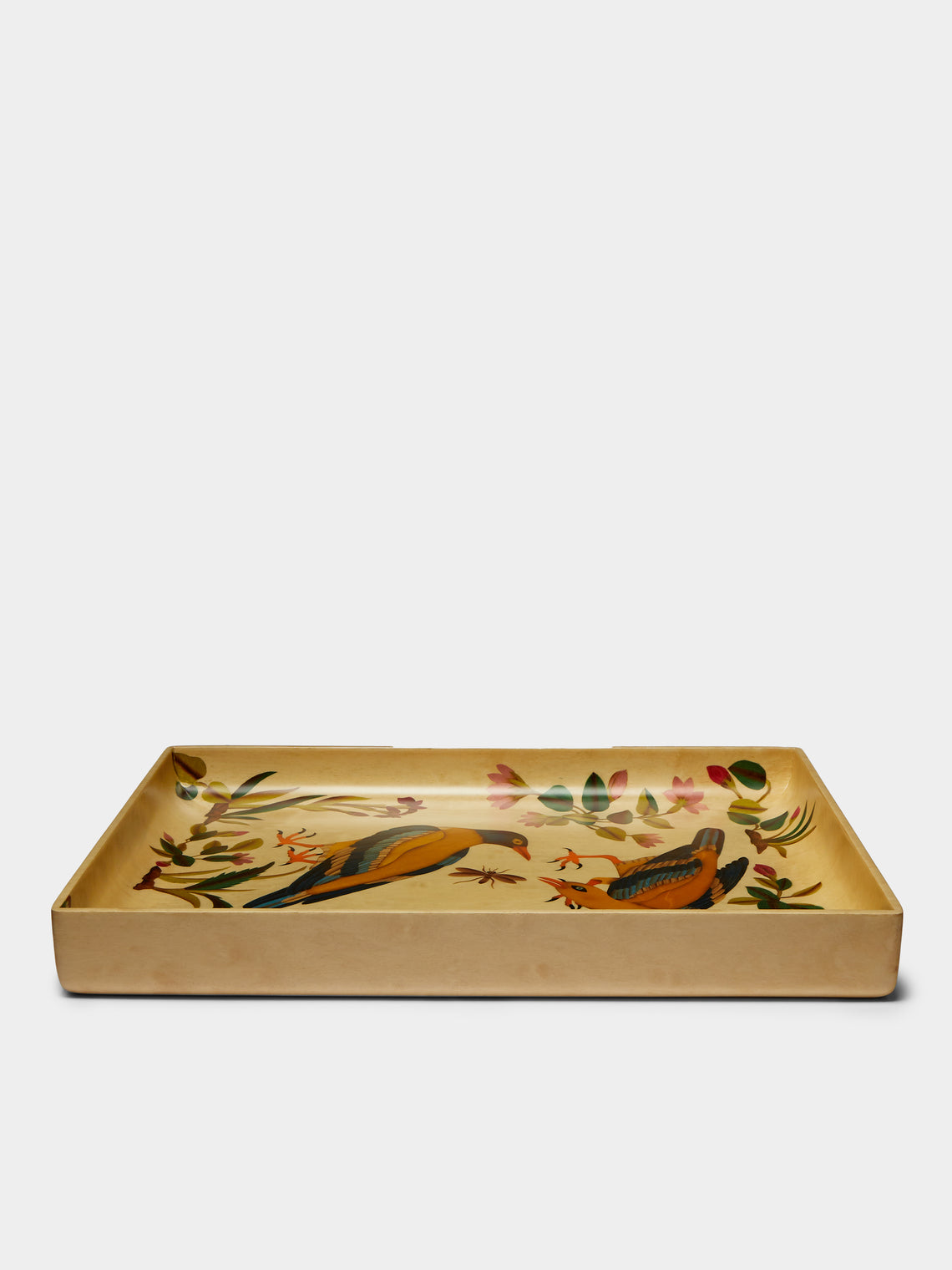 Silvia Furmanovich Birds Marquetry Wood Tray (16in/41cm)