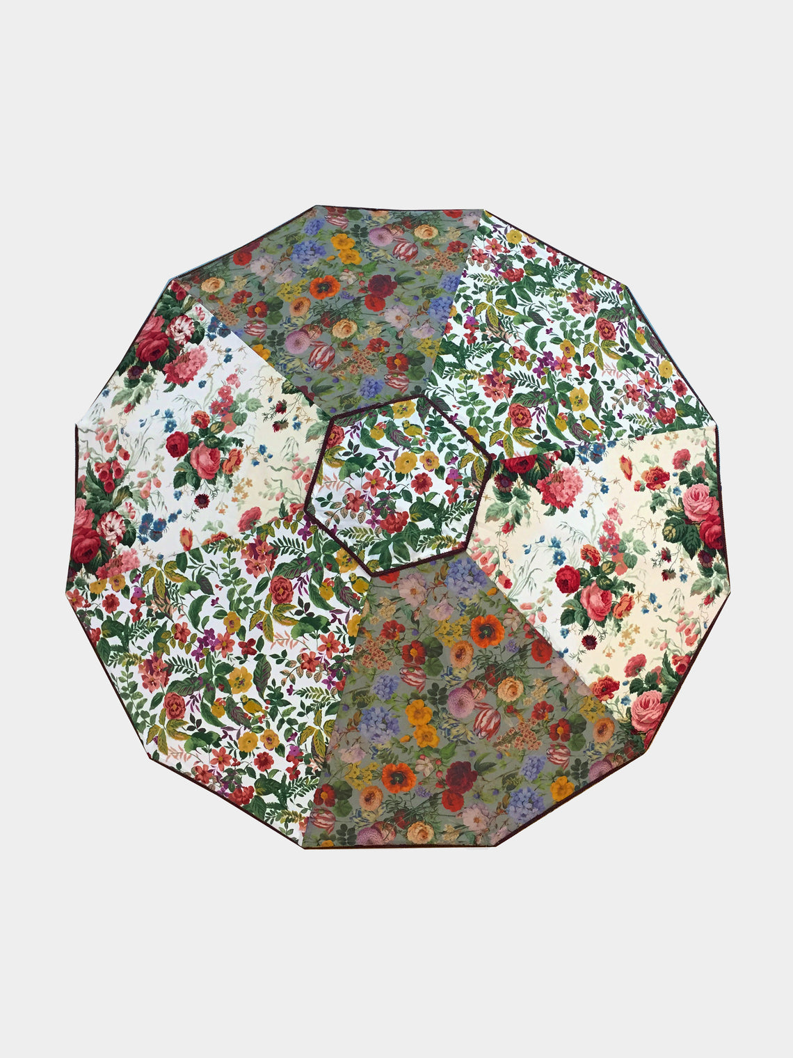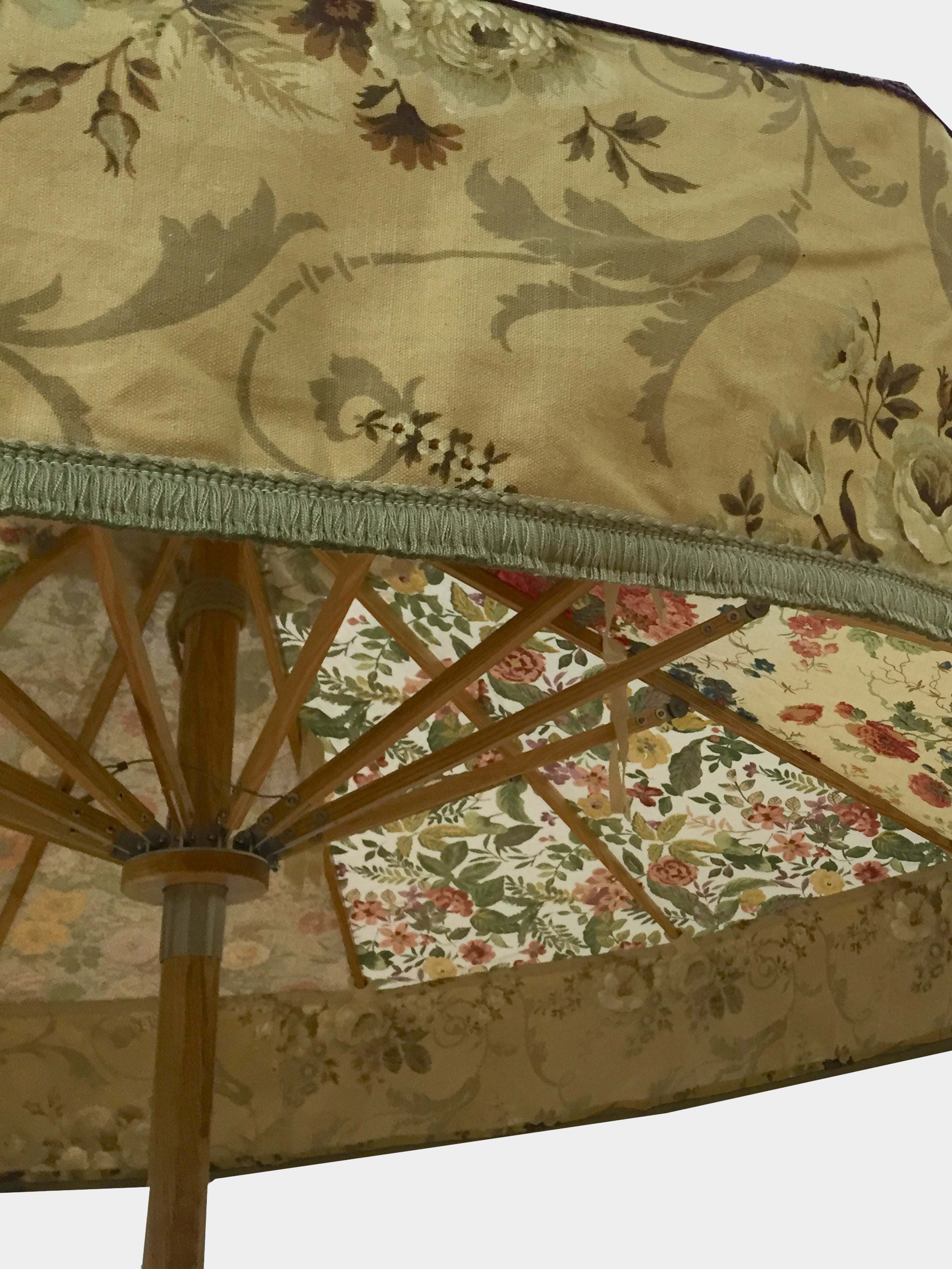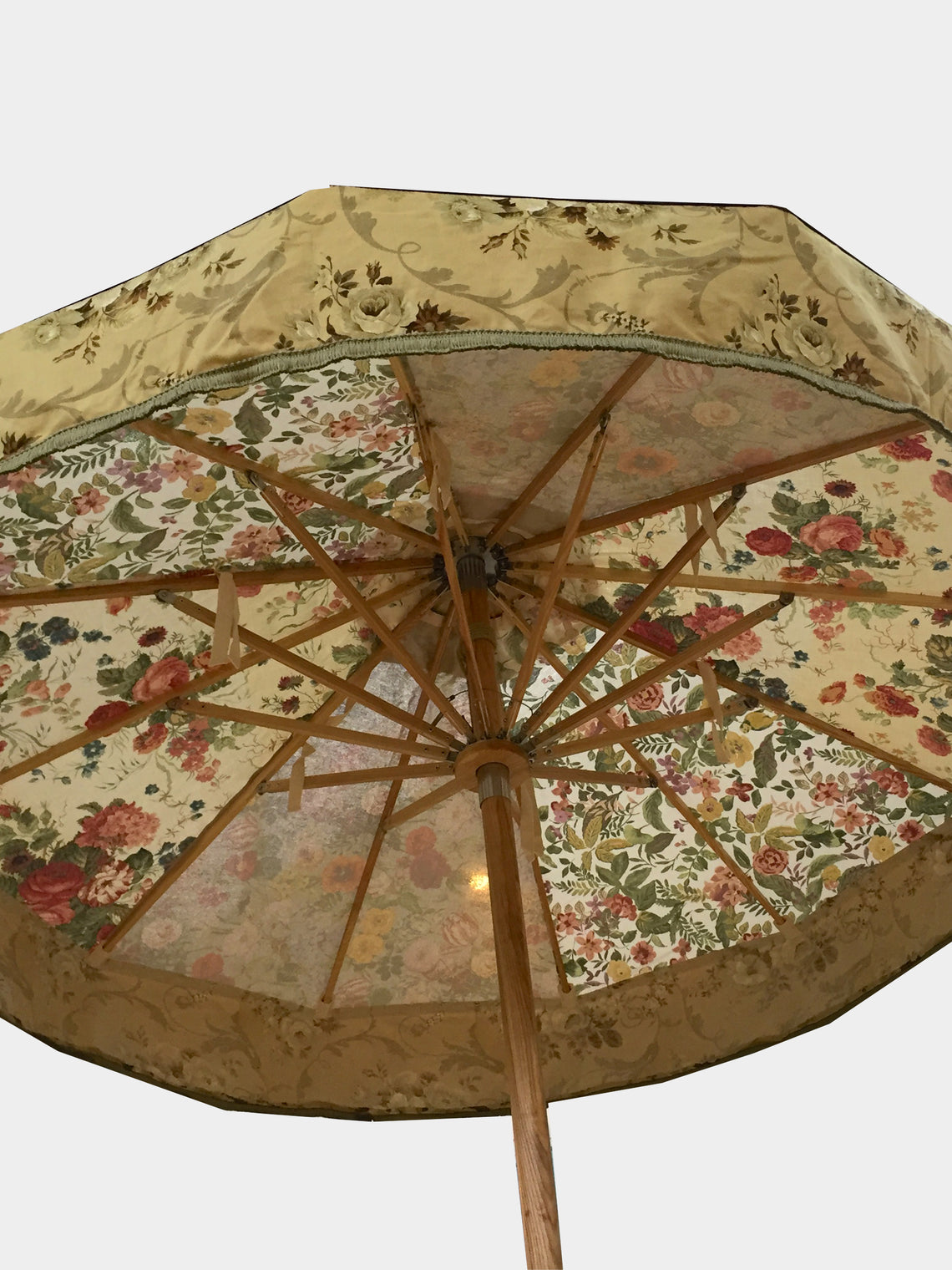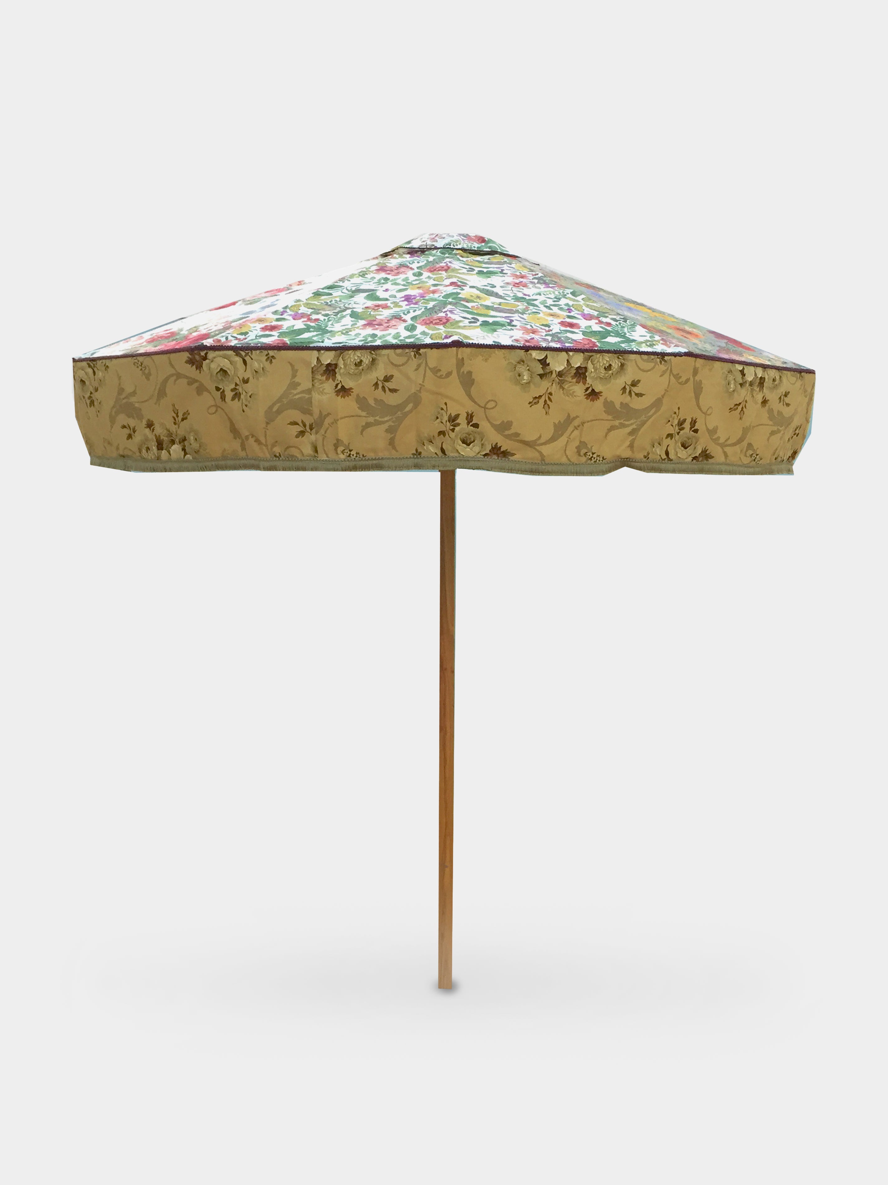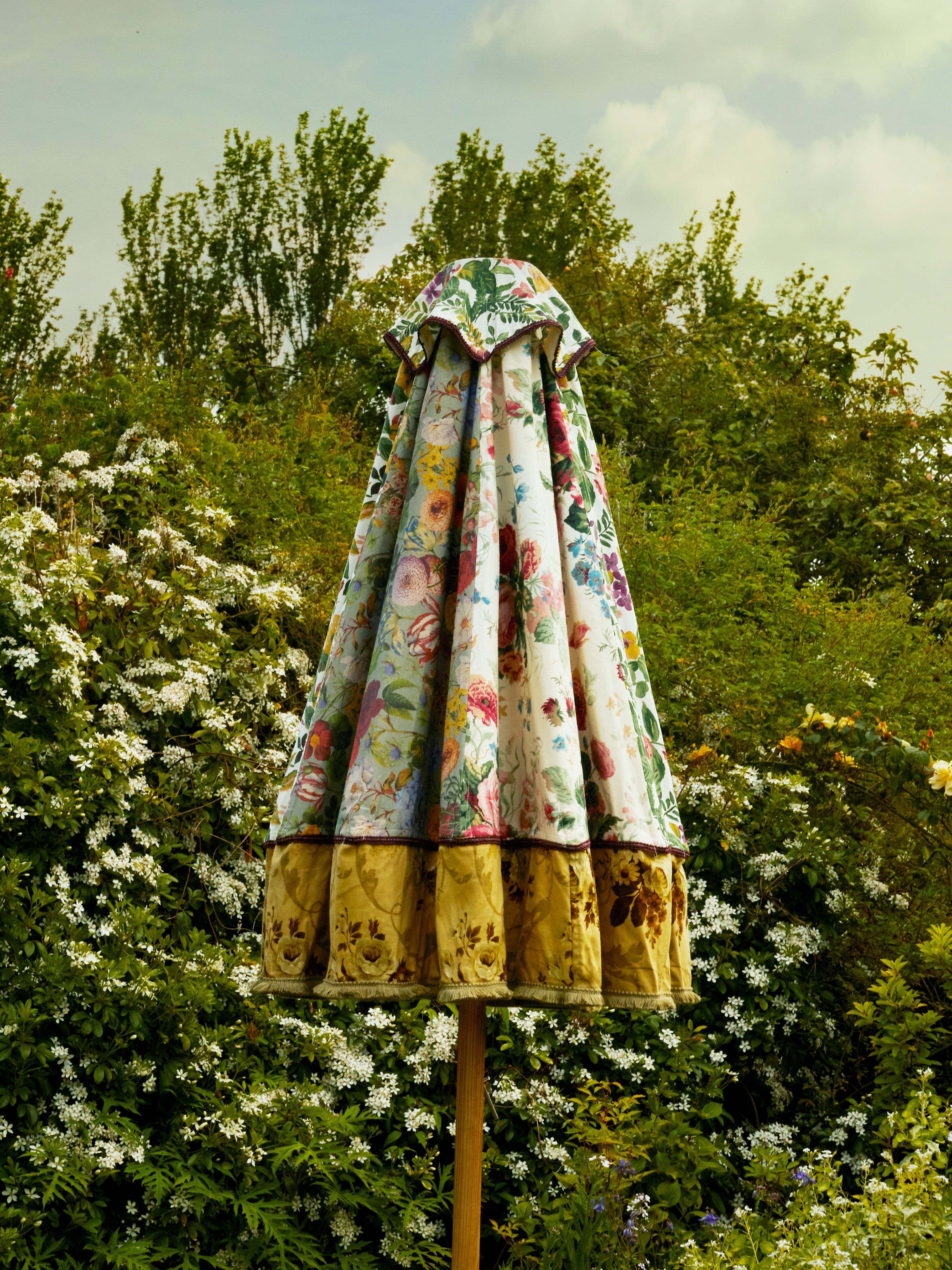 In 2011, Katy and Charlie Napier – artists and founders of Sunbeam Jackie – unveiled their first limited edition collection at Glastonbury, UK. Since, they’ve become the first port of call for exuberant outdoor parasols. Each creation is a one-of-a-kind piece of art, pulling together hand-oiled ash timber frames and vintage, antique and designer fabrics that have been sourced by Katy from all over the British Isles. They work alongside a local marine welder in Falmouth who welds and polishes their stainless steel before the assembly takes place at their studio, a 12th-century grain store located in Cornwall’s UNESCO world heritage site.
