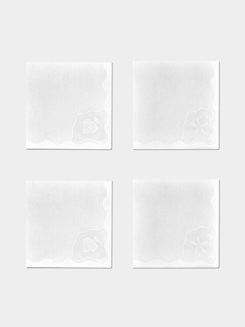 Taf Firenze Sea Life Hand-Embroidered Linen Napkins (Set of 6)