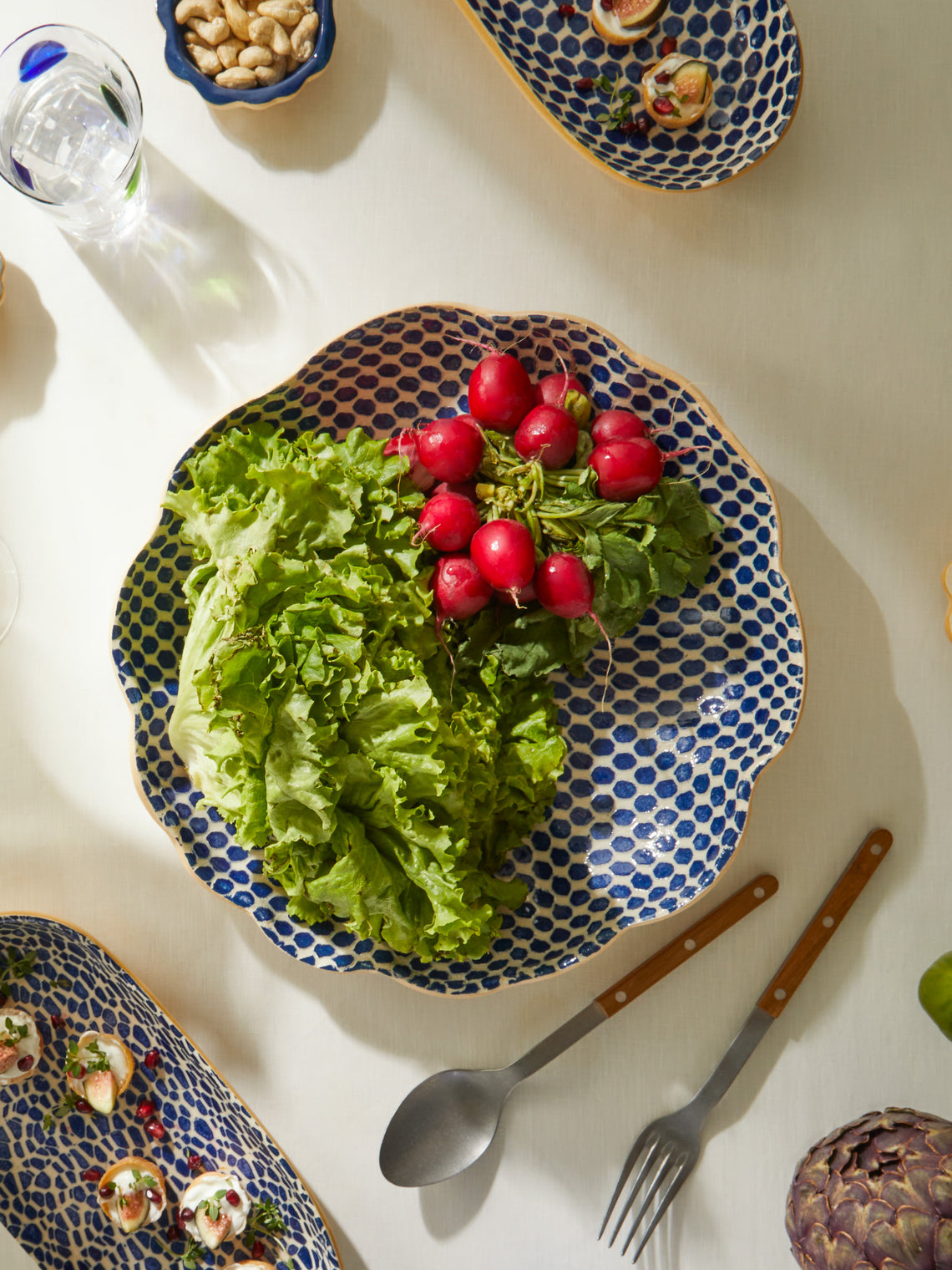 Terrafirma Ceramics’ collections advocate for mix-and-match tablescapes through pieces that harmonise in colour and pattern. This large scalloped bowl is perfect for laid-back banquets, designed with an intricate aesthetic achieved by painting through textile stencils such as lace. Each design is hand-thrown, kiln-fired, signed and dated at founder Ellen Evans’ New York studio.