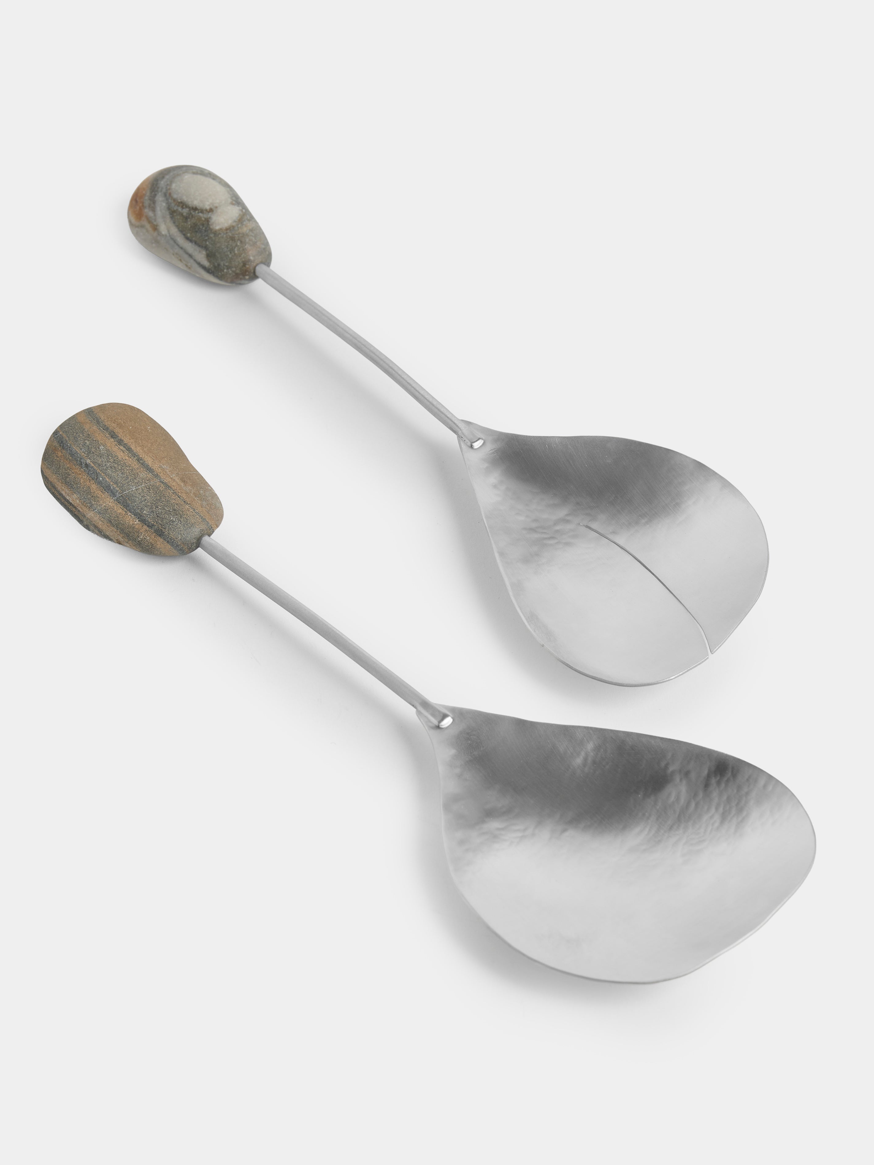 Thalia Maria Silver Sterling Silver and Pebble Salad Servers (Set of 2 Pieces)