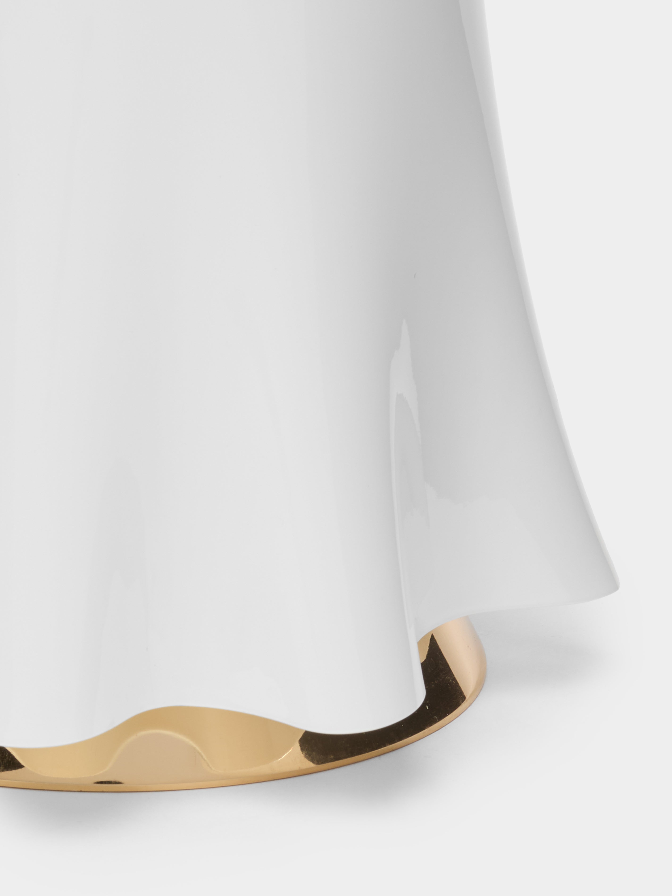 Venini is one of the oldest Venetian glass masters, established in 1921 by Paolo Venini who yearned for something original. From new layered glass techniques, to reimagining the 16th-century mezza filigrana, the brand redefined glassblowing aesthetics; embracing the avant-garde, while nodding to past traditions. For our exclusive collaboration, we reworked Venini’s most-celebrated Fazzoletto vase, originally made in 1948.