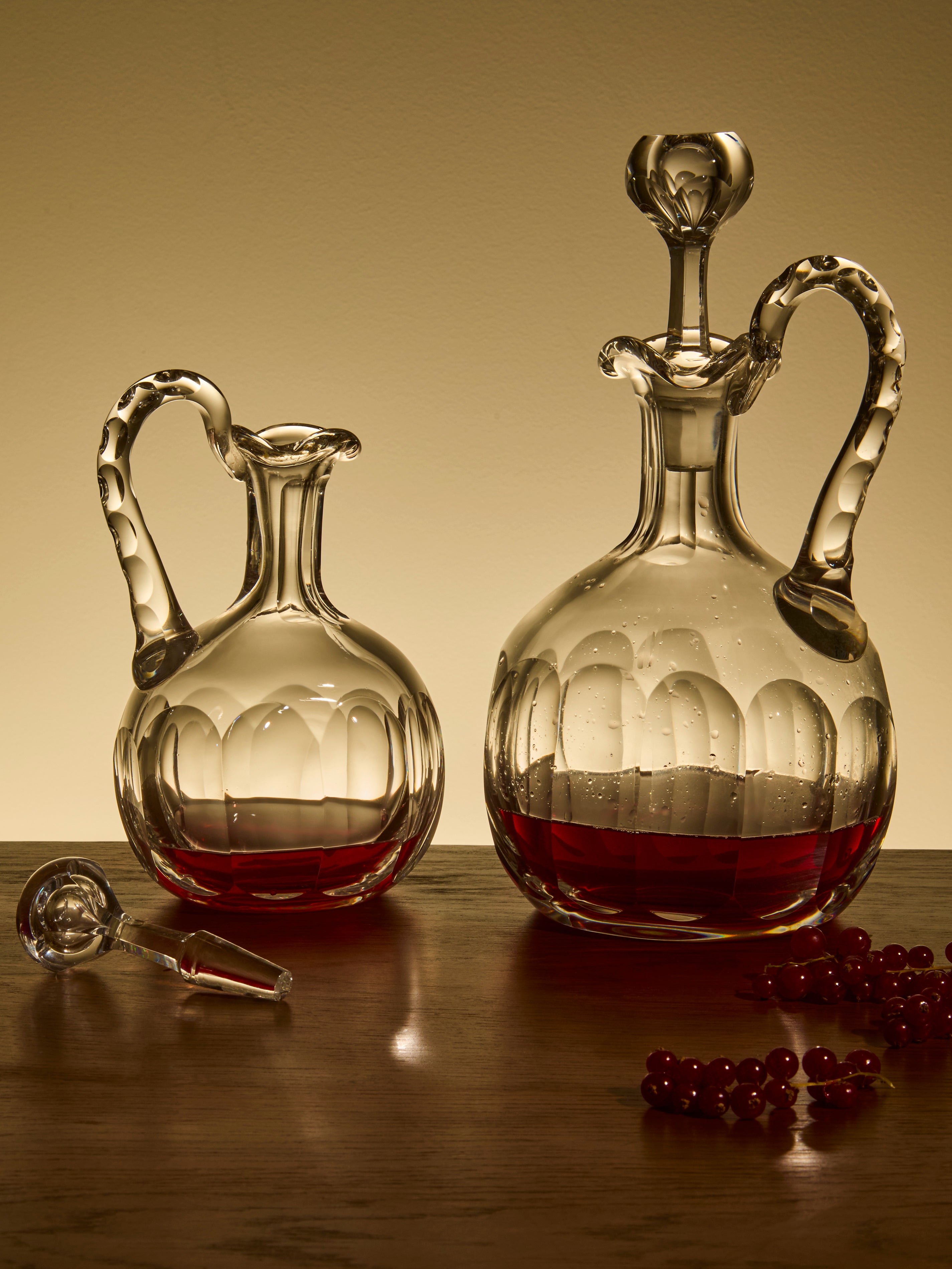 - Set includes: Larger Decanter: 31cm (h) x 18cm (d); Smaller Decanter 25cm (h) x 14cm (d)