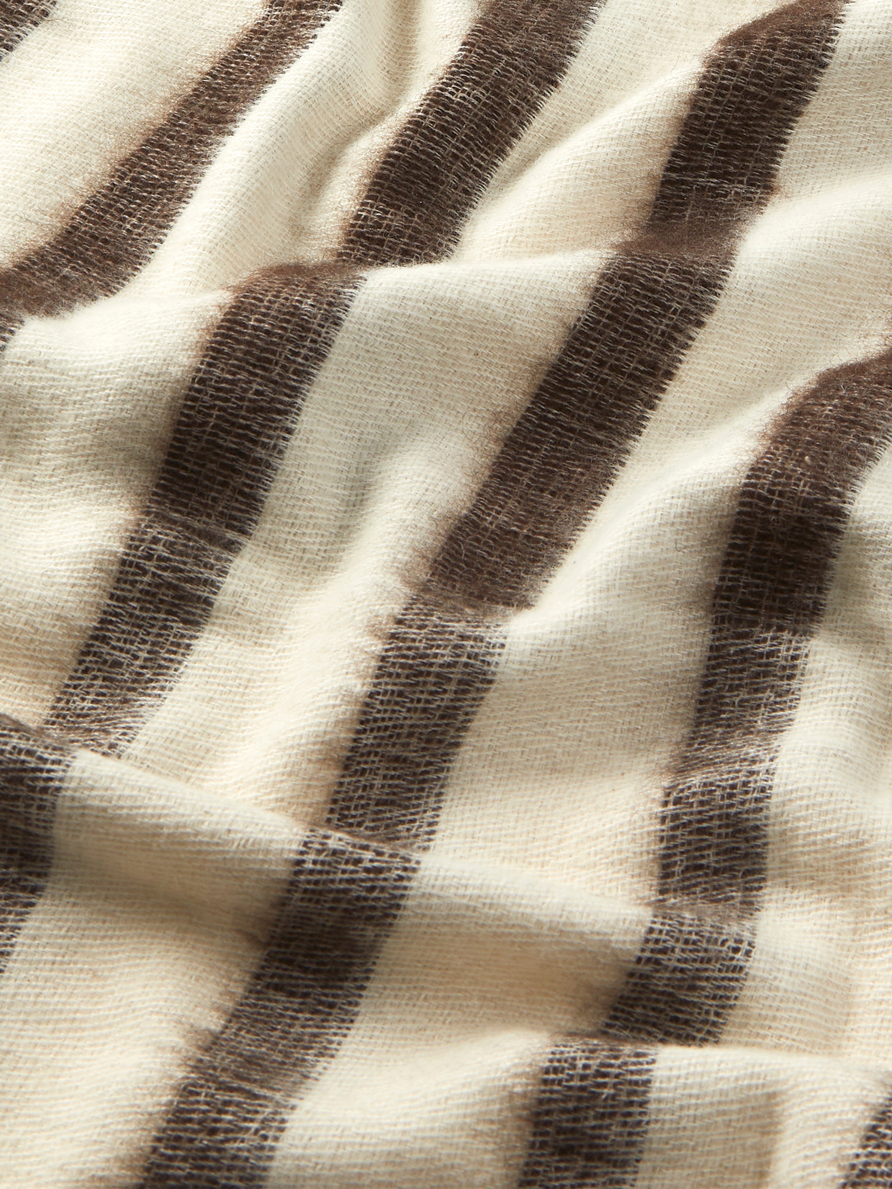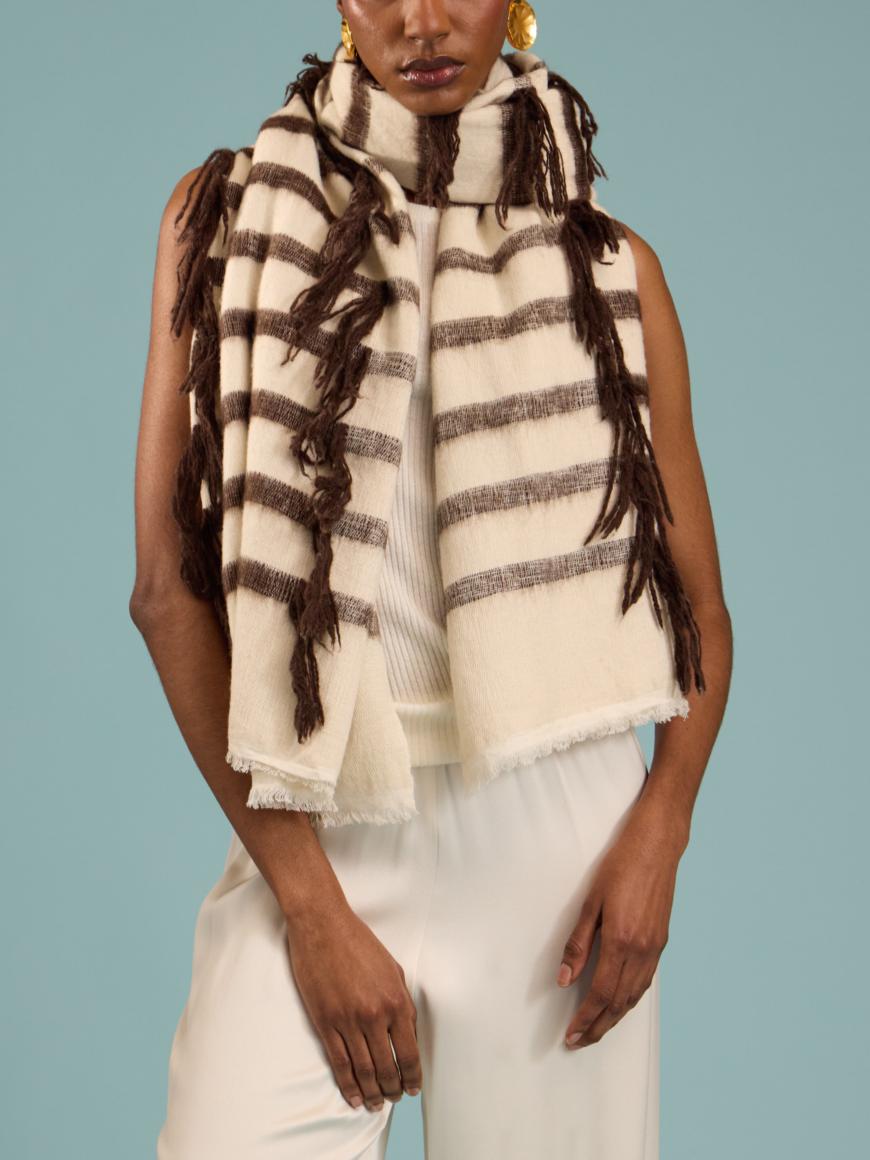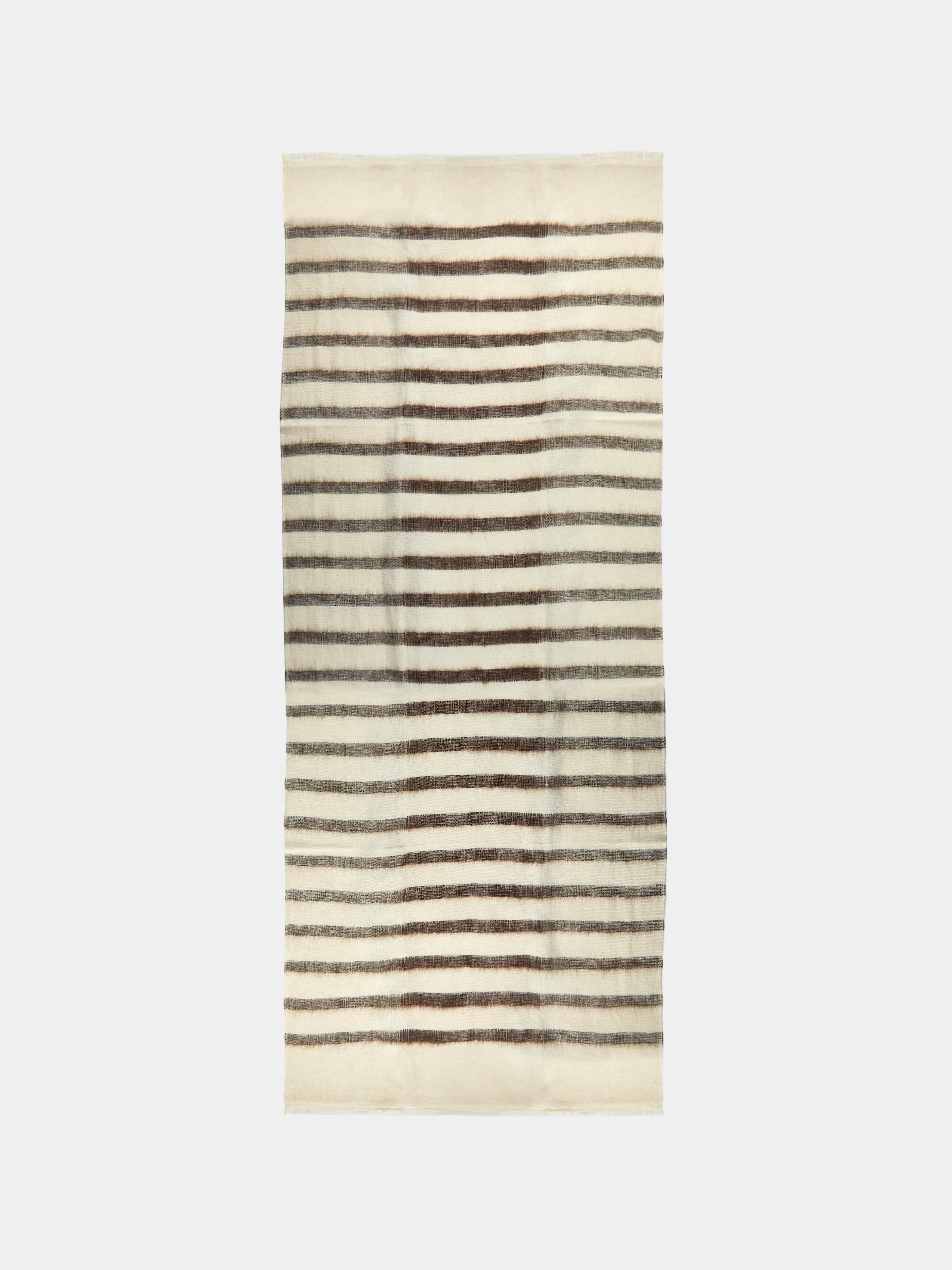 It was while working on a collection of rugs that Los Angeles-based Denis Colomb was exposed to the artistry of Nepalese craft, which led to the founding of his eponymous collections. Working with small, family-owned workshops across Kathmandu, he creates forever pieces that are made entirely by hand, utilizing techniques such as looming, weaving, spinning and dyeing. The Hokkaido Tawa scarf is handwoven in a yak and cotton blend.