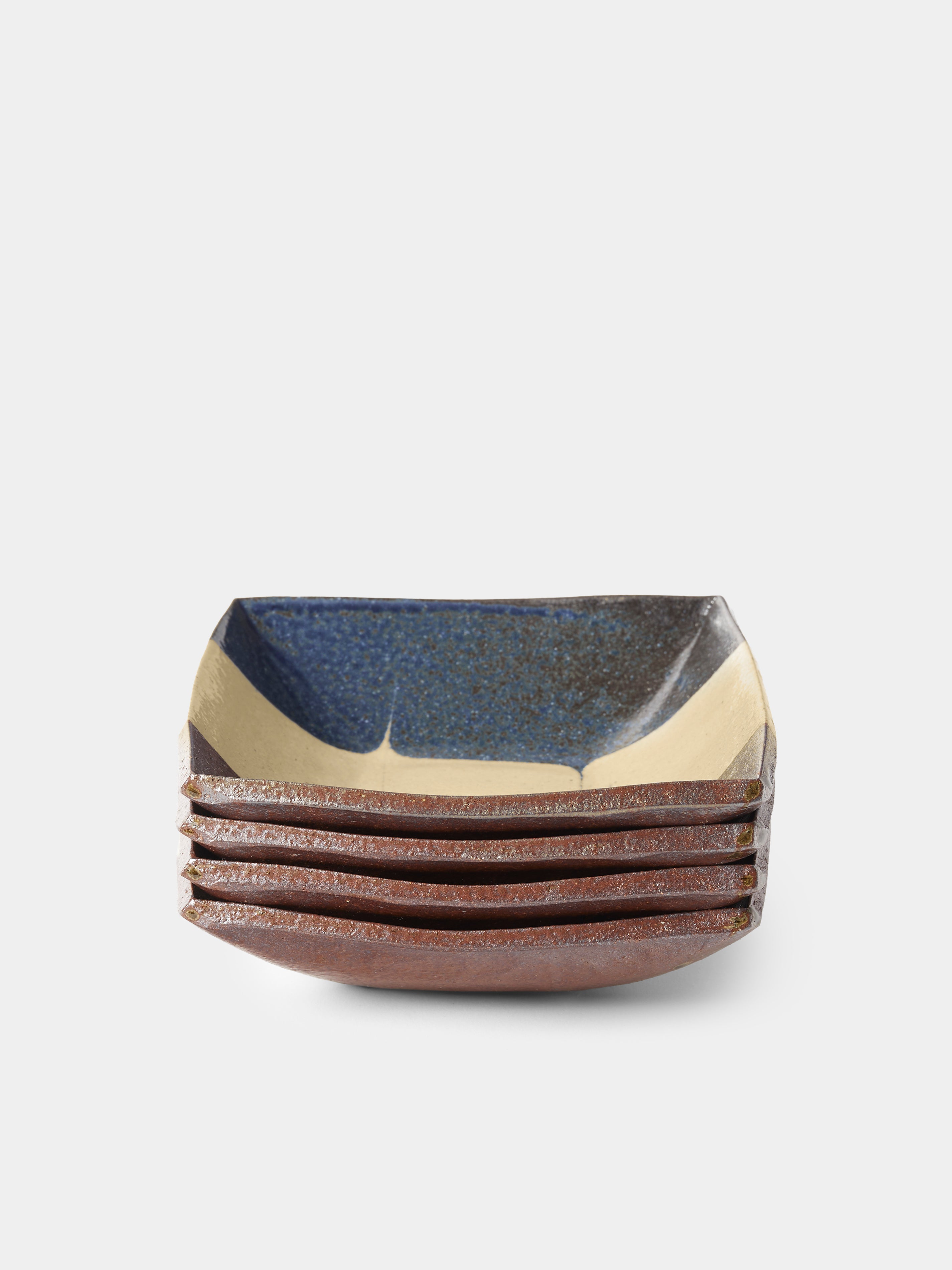 Makidani-gama No. 1 Nerikomi Ceramic Square Bowls (Set of 4)