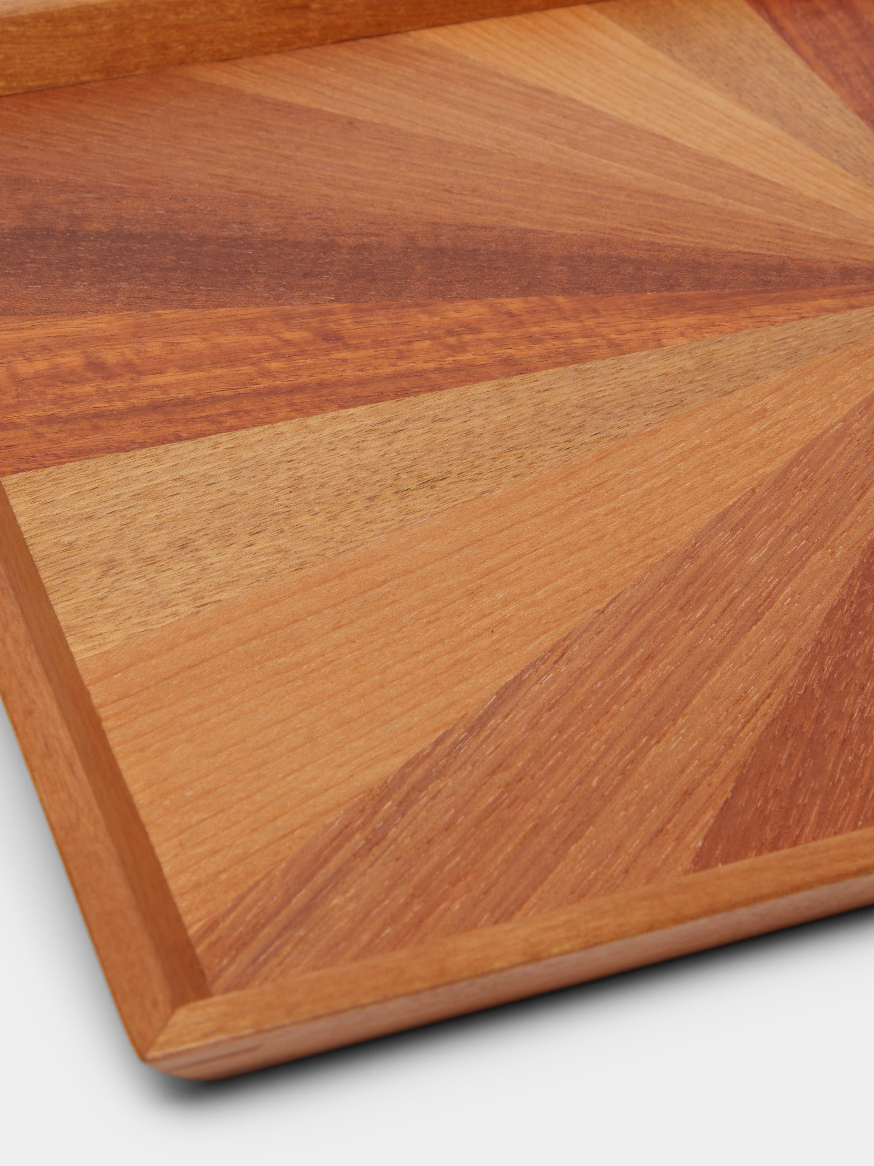 Since 1953, Tokushima-based Mori Kougei has been specialising in tsuki-ita, a highly complex technique in which paper-thin sheets of wood are sliced with sharp blades before being bonded together to form intricate surface patterns. This meticulous process has been refined and passed through the generations for more than 70 years. The result is a selection of functional trays highlighting the grain, colour and character of different wood species. Expect meticulously indigo-dyed pieces – a treasured Tokushima art – and subtle, contemporary scenes inspired by art, geometry and nature.