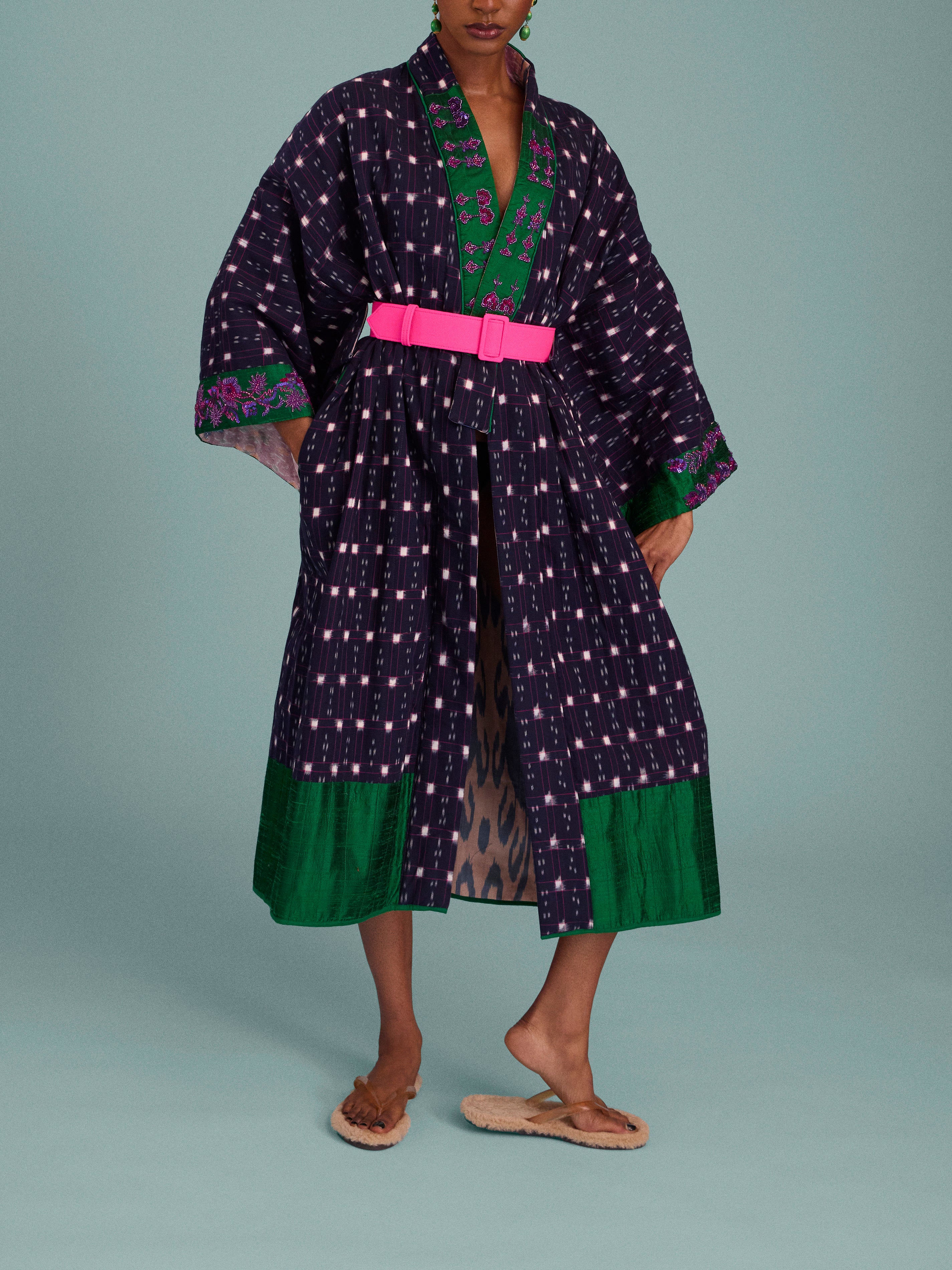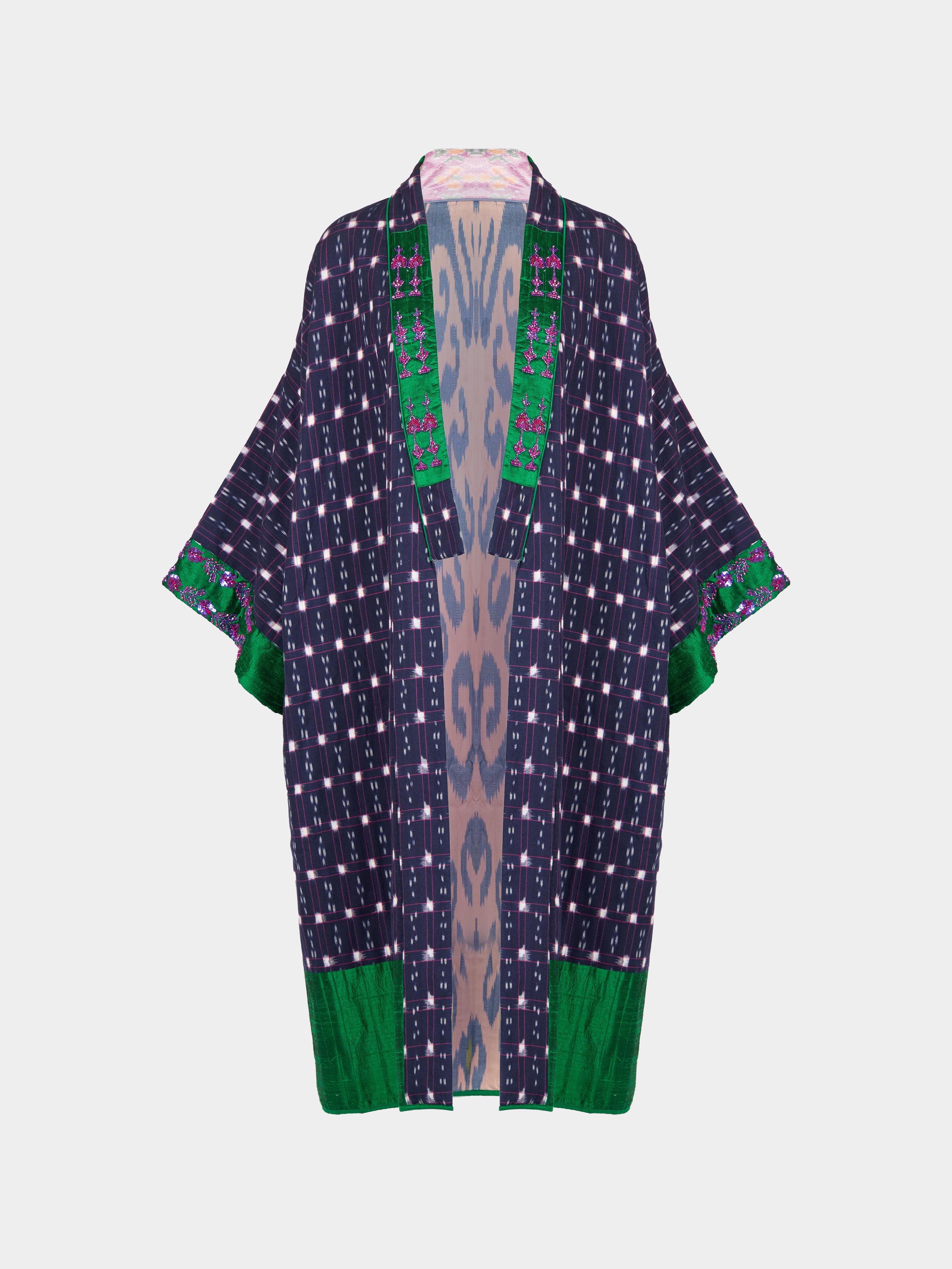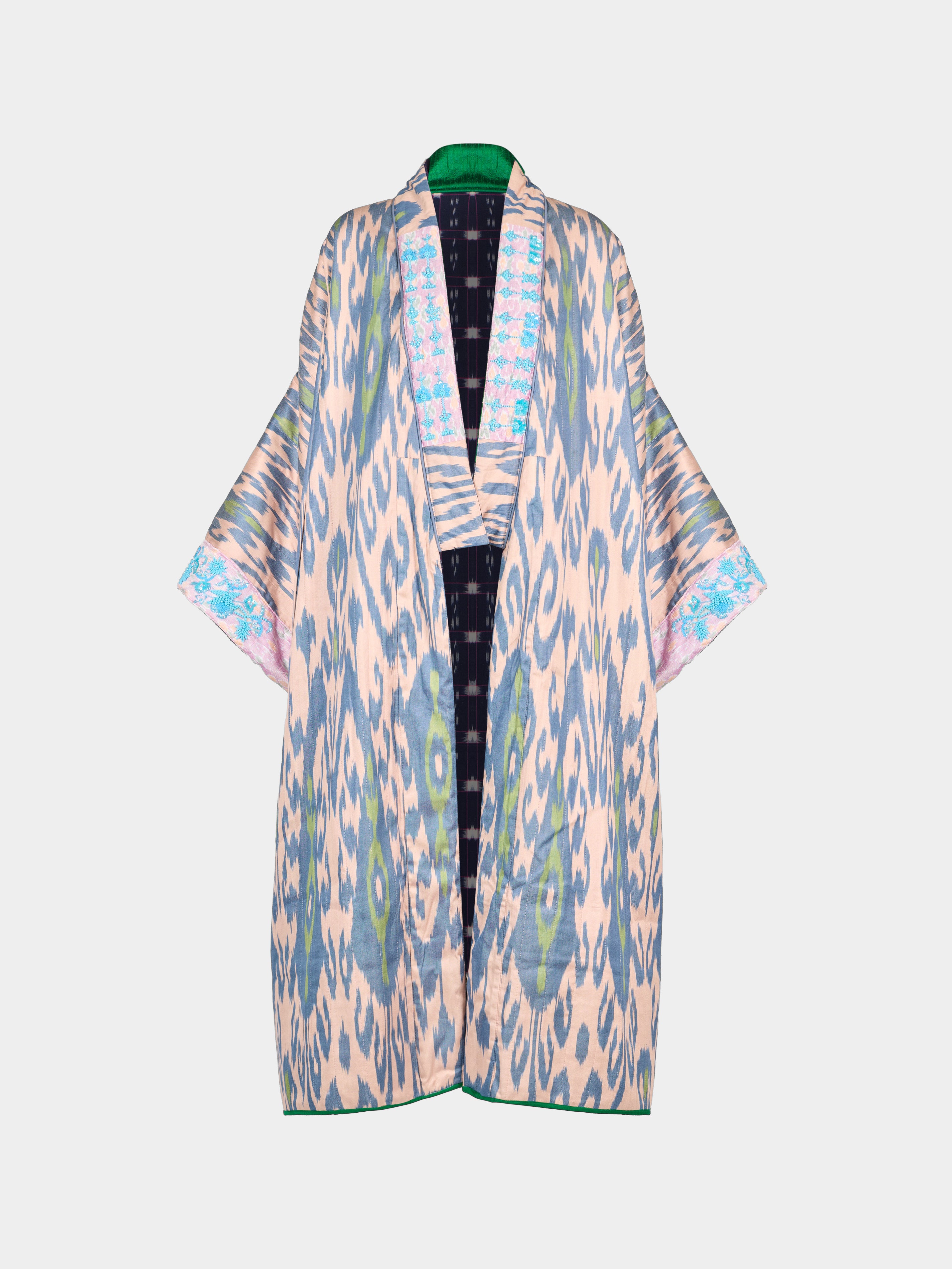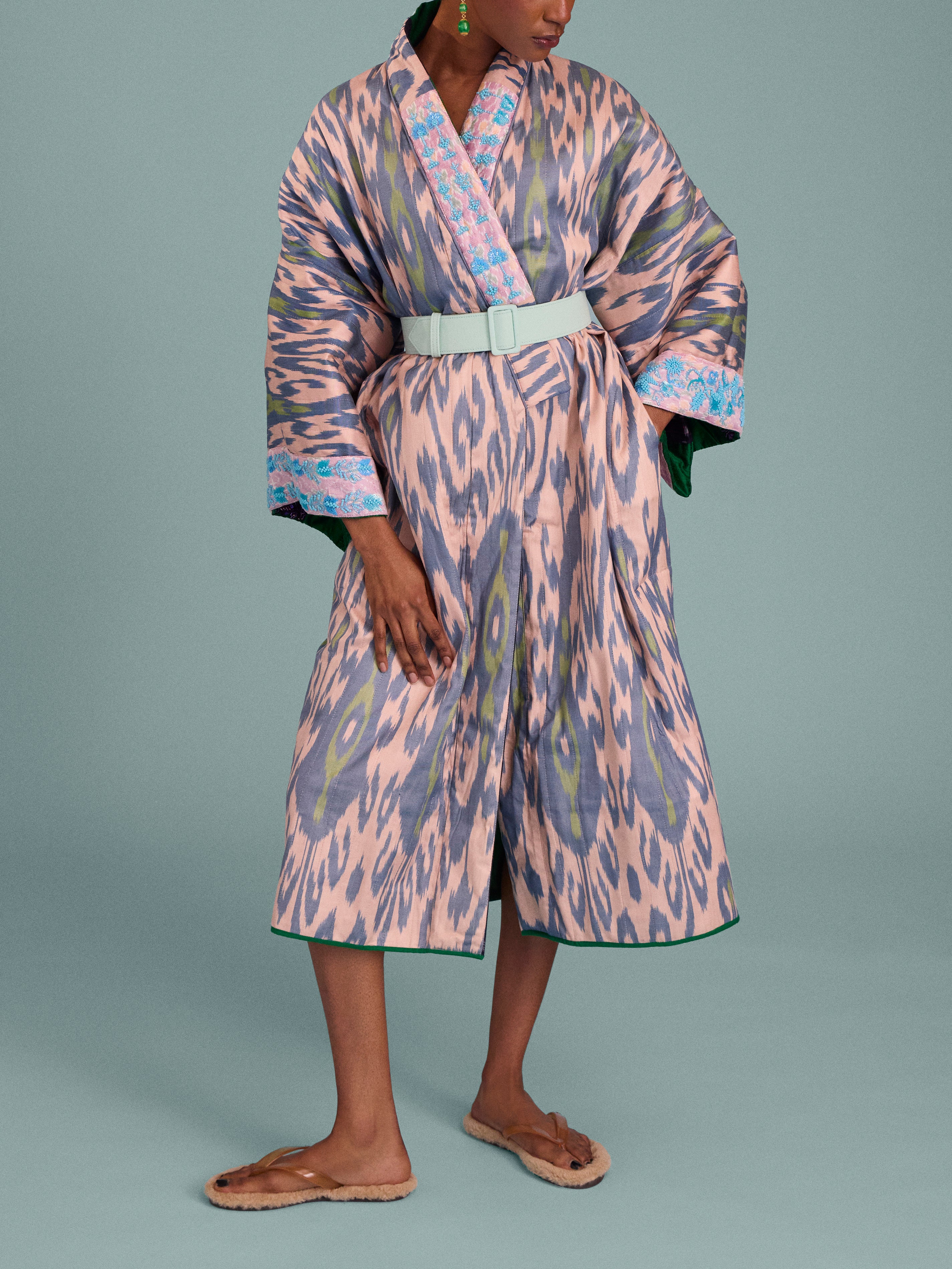 Nazzy Beglari Hand-Loomed Ikat Cotton Reversible Chapan-Style Robe | One Size