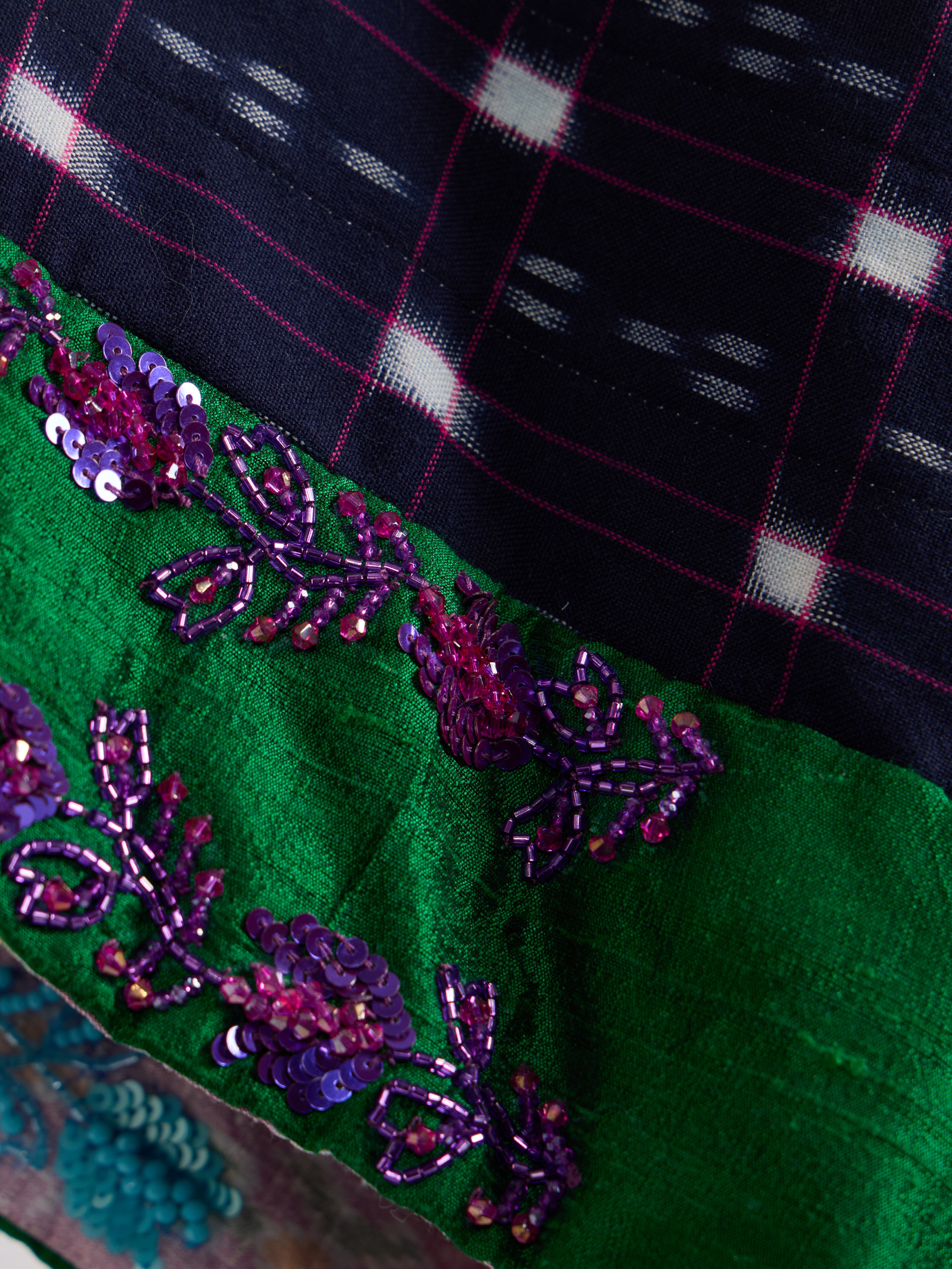 Nazzy Beglari has been enamoured by the ever-evolving art of ikat for as long as she can remember, and she spent years delving into its rich history – a form of investigative work she credits to her journalistic background. While studying double ikat, she learned of the Salvi family in Ahmedabad, India, who have been mastering the technique since the 11th century. To further her understanding, she visited them, and was blown away by their museum, workshop and heritage. This isn’t the only example, as she also works closely with 1853-founded Chikusen in Tokyo, which is widely regarded as one of the finest fabric houses in Japan. Her dedication to the finest make is underpinned by her strict zero-waste philosophy, as all cut-offs are used on collars, cuffs or to make lavender-scented pouches that she tucks away inside her reusable cotton packaging.