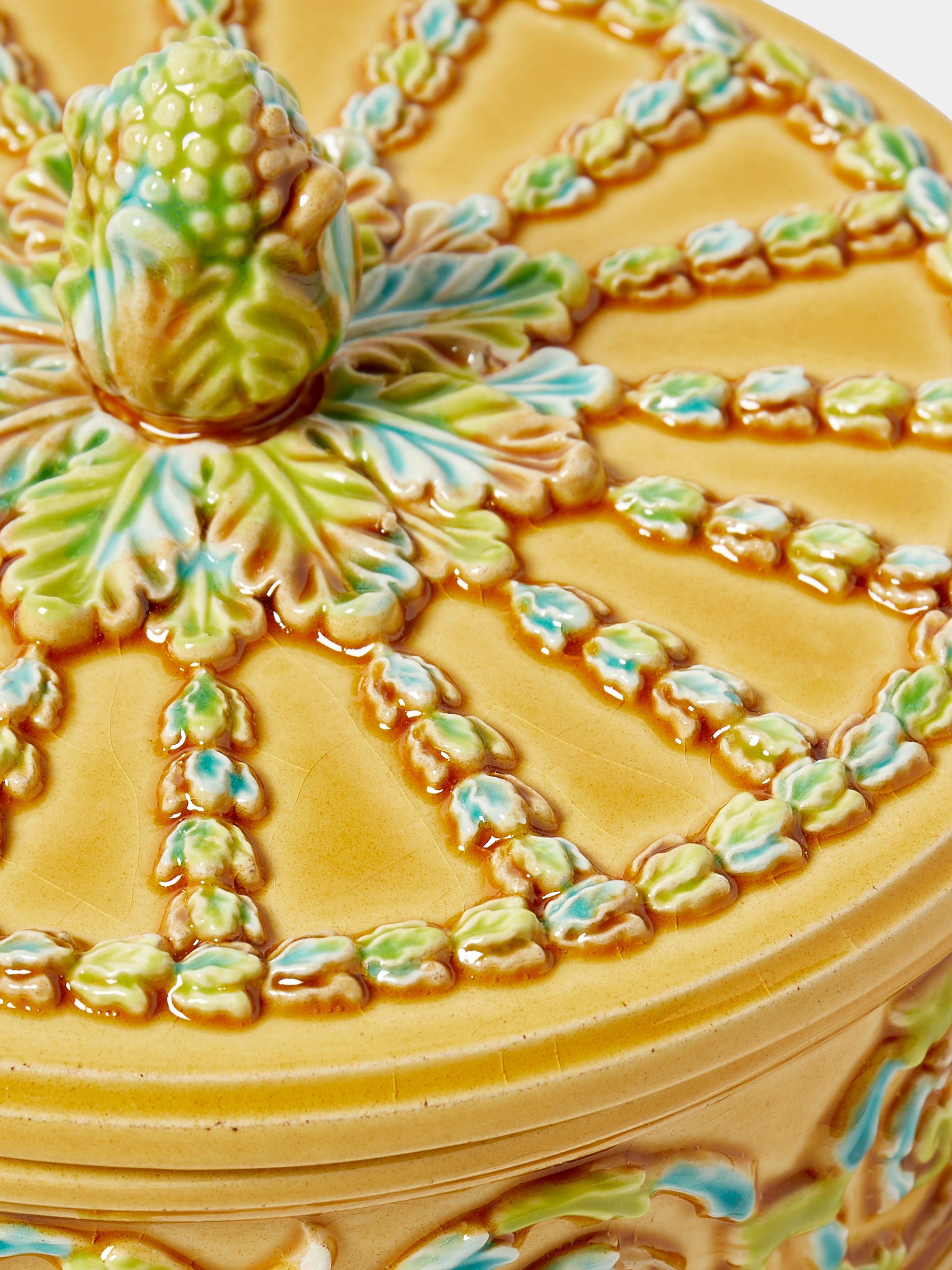 Verdolini Foliage Hand-Painted Majolica Ceramic Bonbonnière