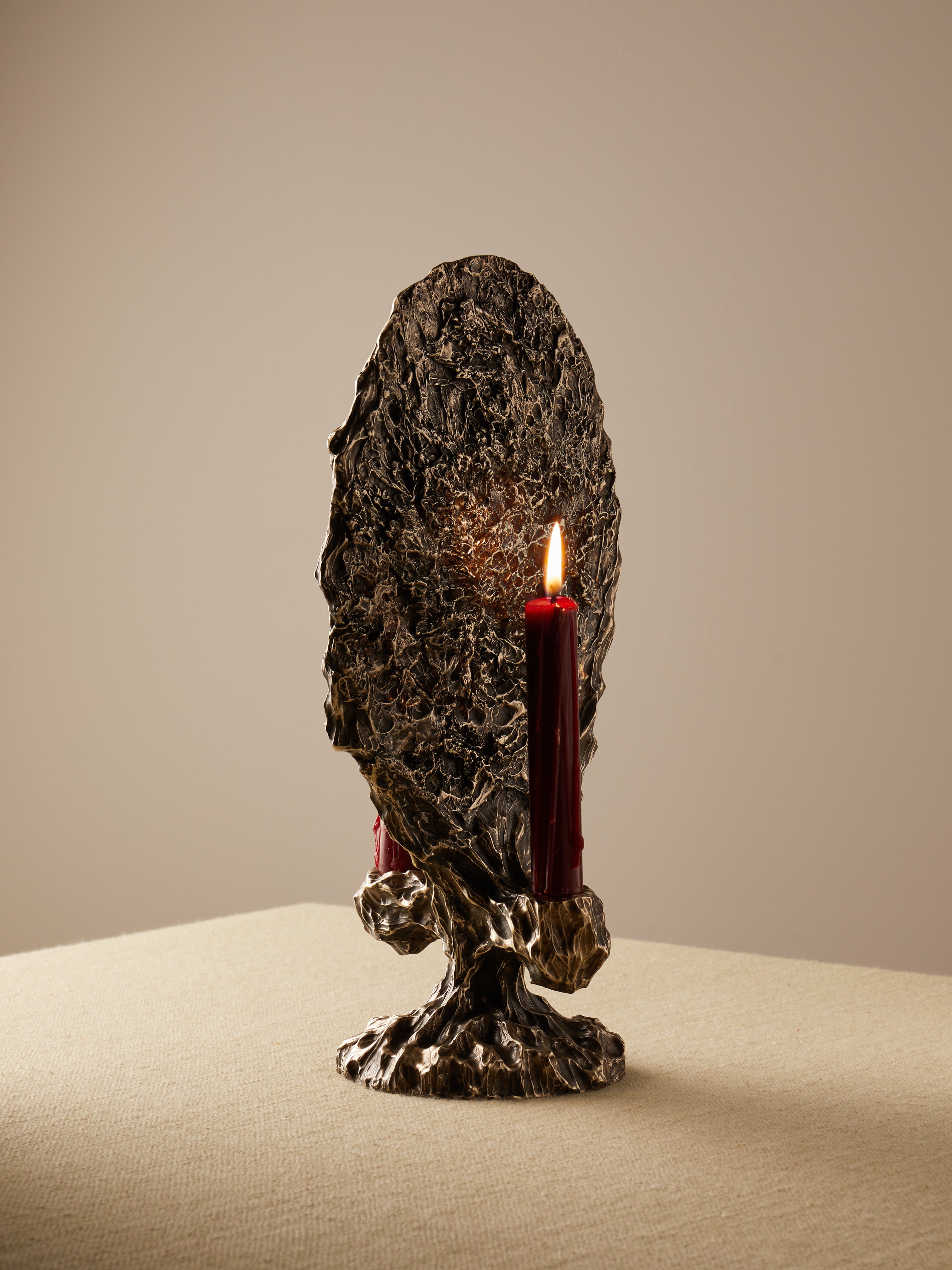 William Guillon Omnia Vanitas Hand-Sculpted Bronze Candle Holder