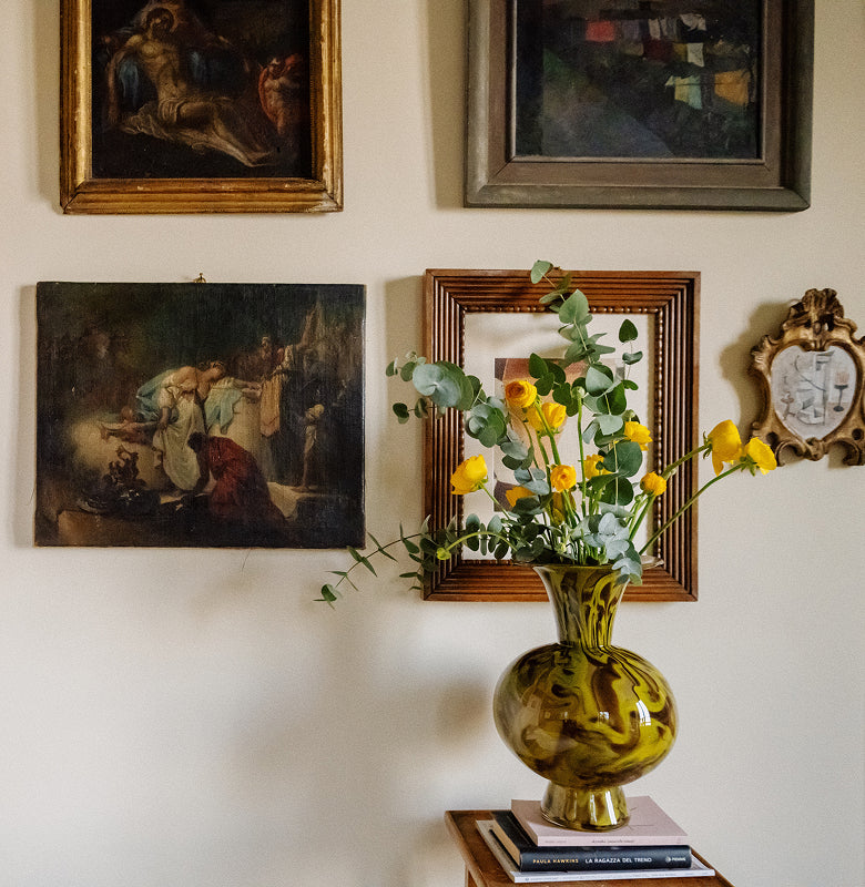 Flowers are, above all else, a constant in the couple’s home. Surrounded by a garden that Federico, a footwear designer, has lovingly nurtured for nearly 20 years, this is a space where the indoors and outdoors are celebrated in synchronicity with seasonal foliage and flowers in constant rotation around the house bringing the outside in.