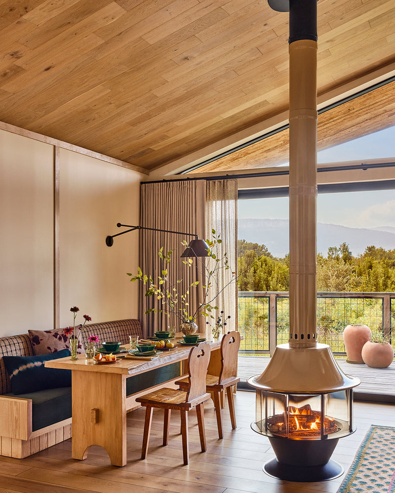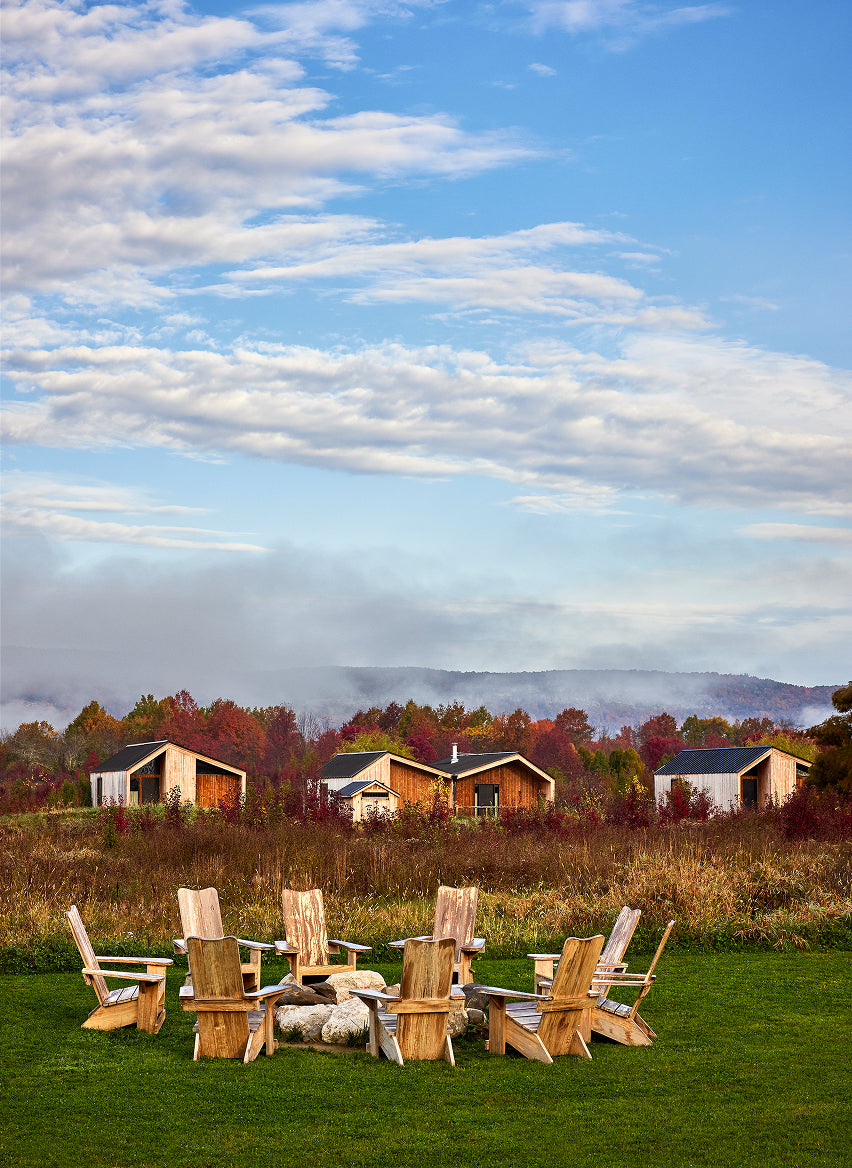 This philosophy guided the creation of Wildflower Farms’ 65 contemporary cabins and suites, where bespoke furnishings mingle with curated antiques, each piece reflecting the region’s distinctive character. It’s all in the details: Ward even photographed the landscapes across the resort’s 140 secluded acres to replicate their hues in custom-woven rugs, ensuring that even the textiles mirror the serene surroundings.