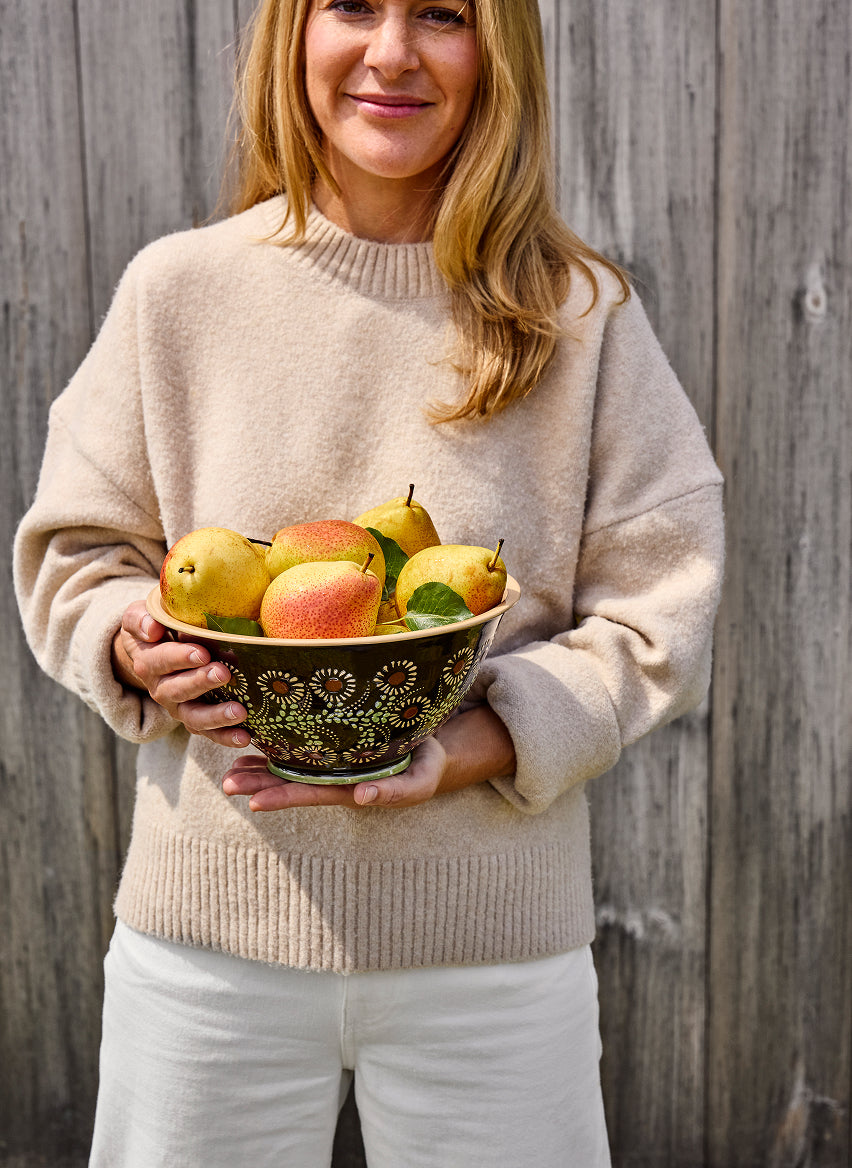 Poterie d’Évires - Flowers Hand-Painted Ceramic Petite Salad Bowl - Dark brown - ABASK -