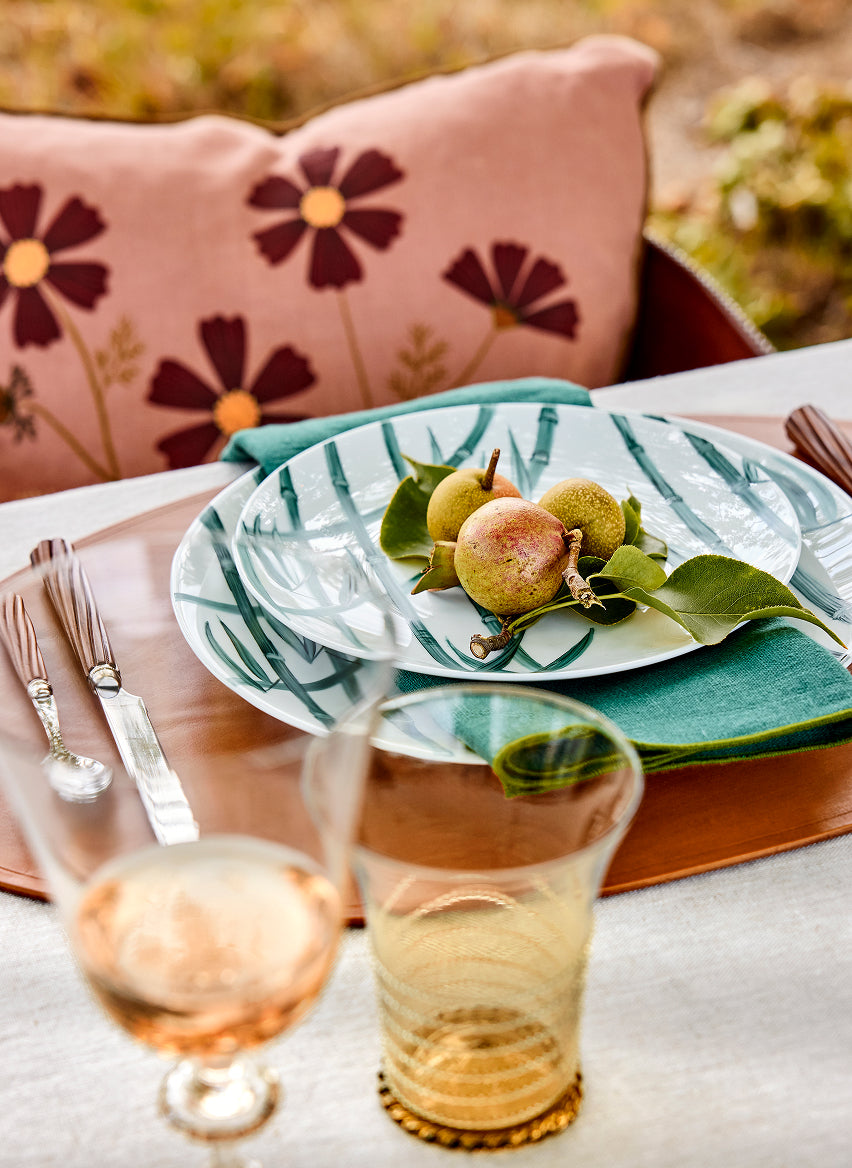 Interior designer Staver Gray, who along with Christie Ward at their firm Ward + Gray, conceived the interiors for Wildflower Farms, Auberge Collection, is putting the final touches on a tablescape filled with artisanal ceramics, glassware, and linens, along with her own Venetian glass table lamp. It’s a celebration of nature and artisanship—two things found in abundance at the Hudson Valley resort.